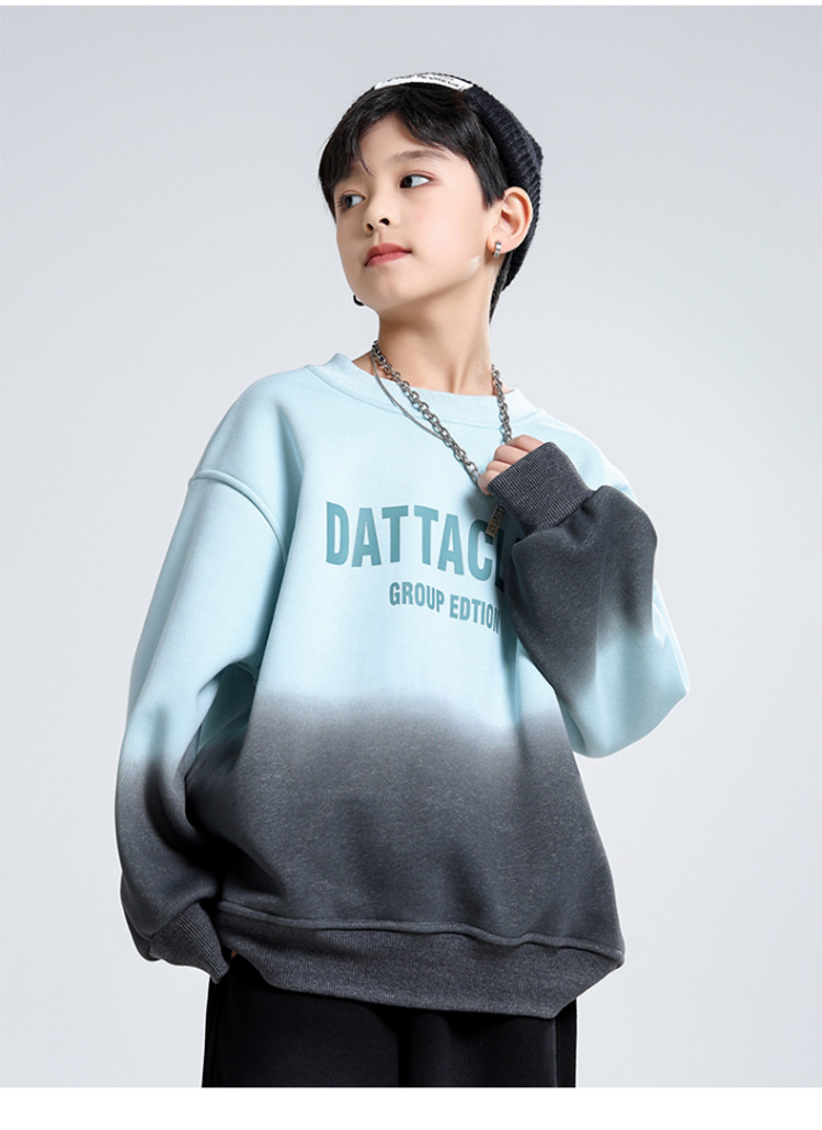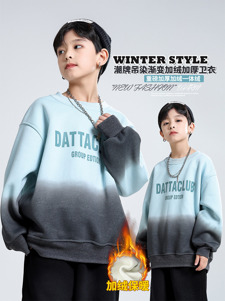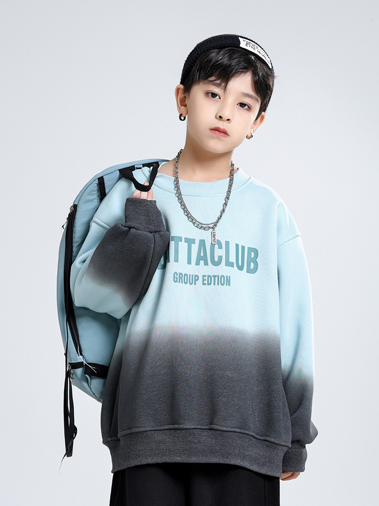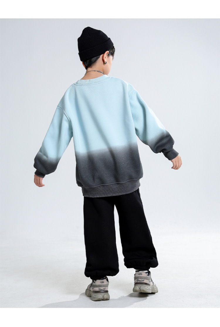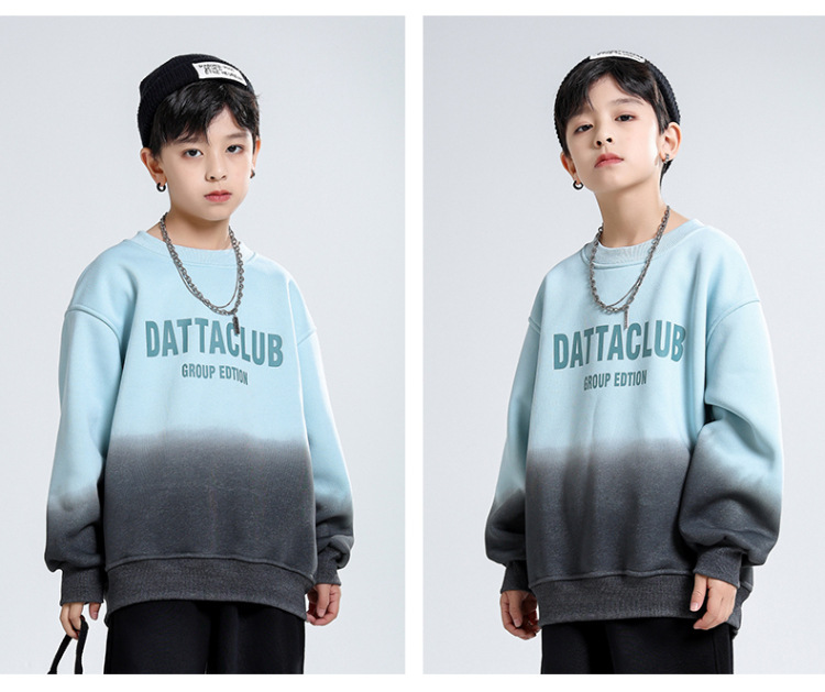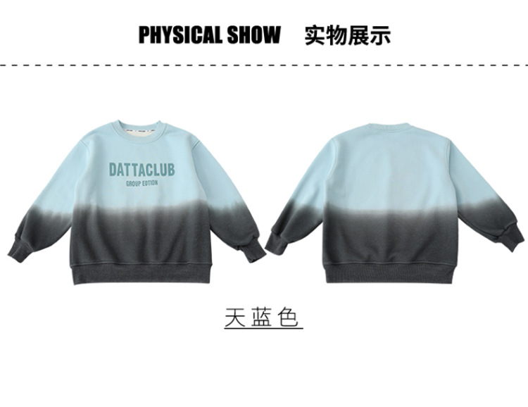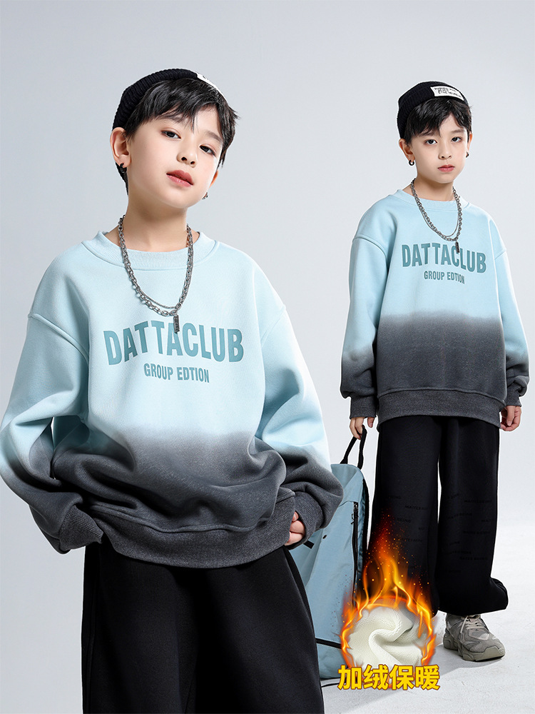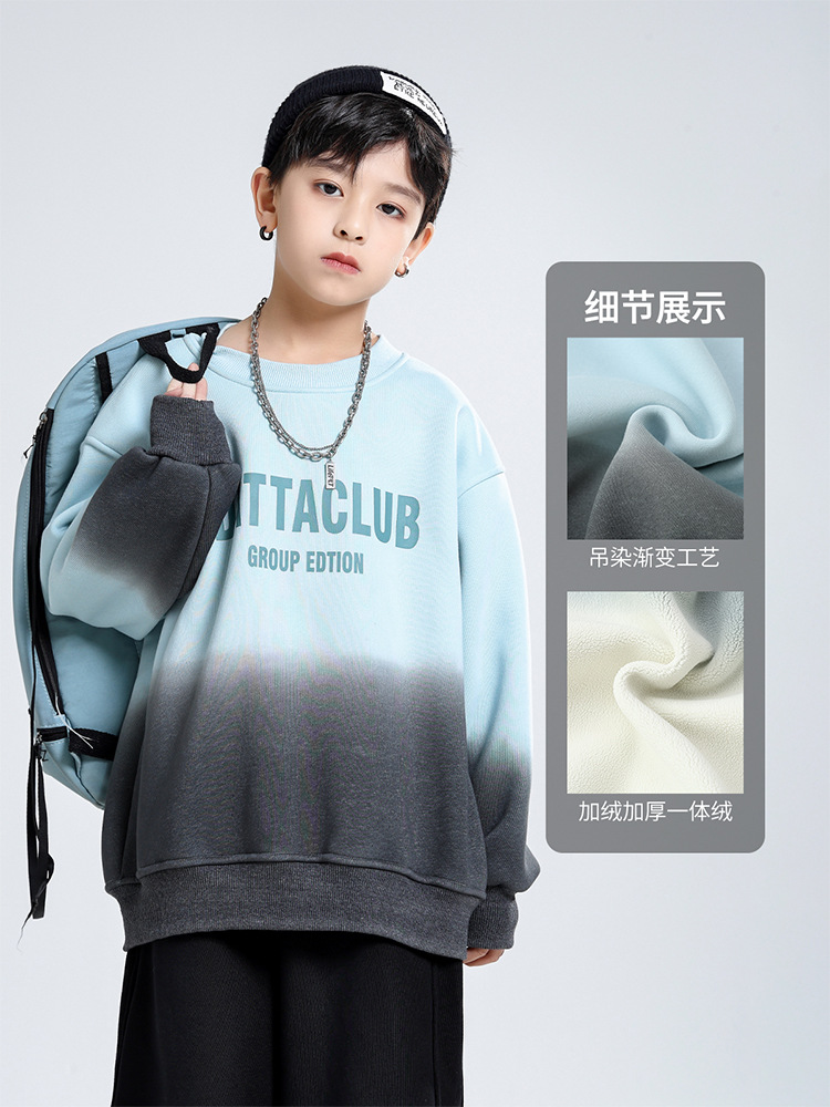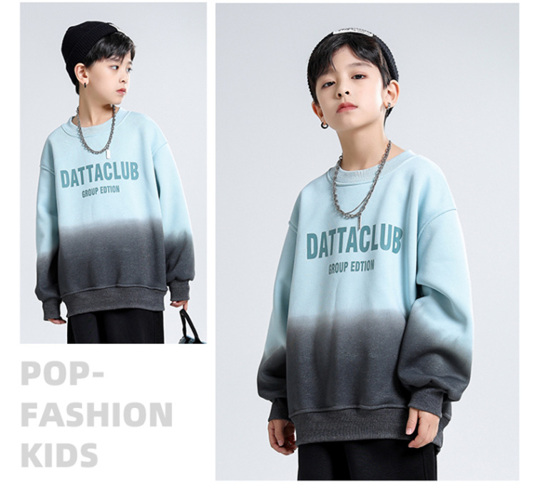 어린이 가을과 겨울 새로운 트렌디 브랜드 소년 '매달린 염료 그라디언트 기모 중대형 어린이 느슨한 둥근 목 땀 어린이 의류스토어 가기