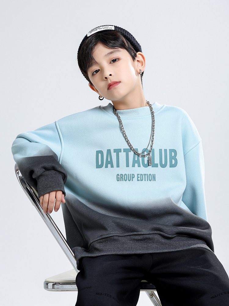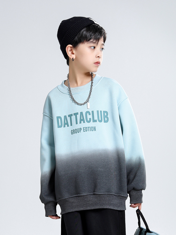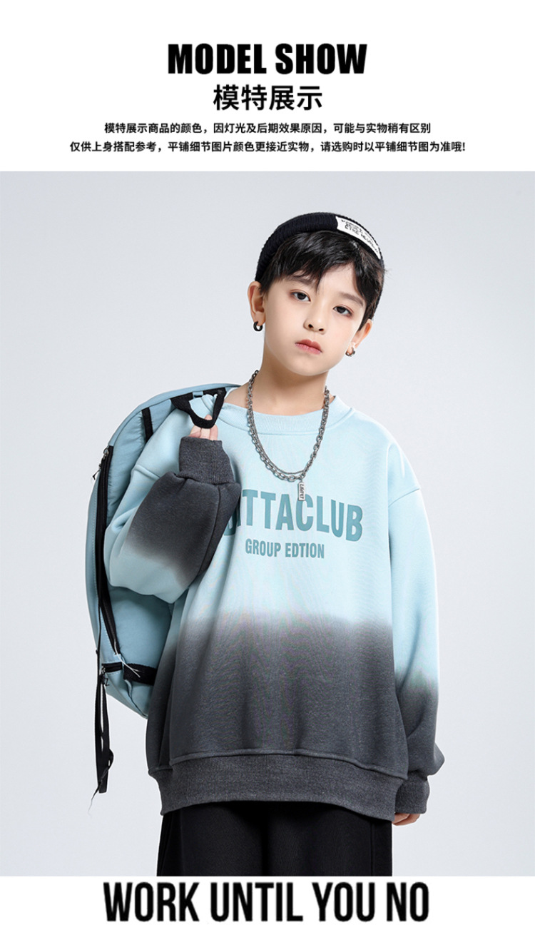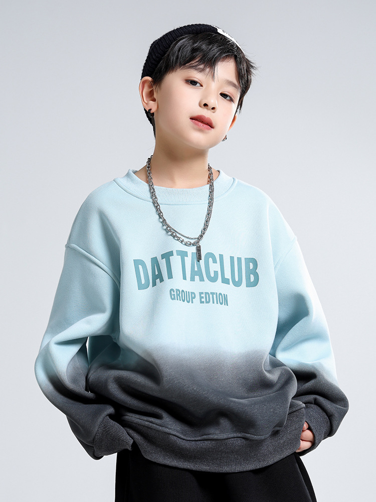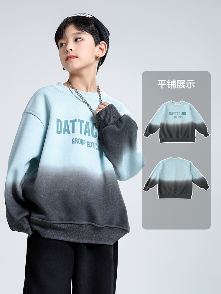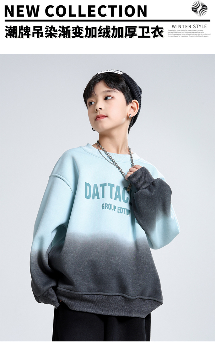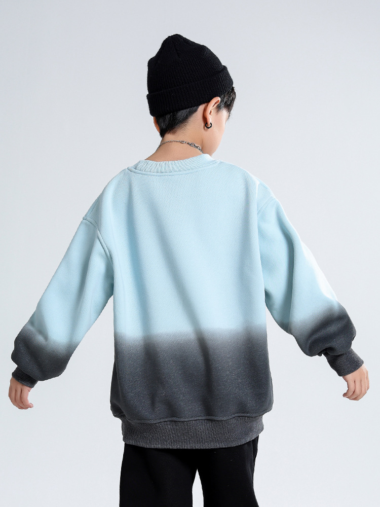 어린이 가을과 겨울 새로운 트렌디 브랜드 소년 '매달린 염료 그라디언트 기모 중대형 어린이 느슨한 둥근 목 땀 어린이 의류스토어 가기