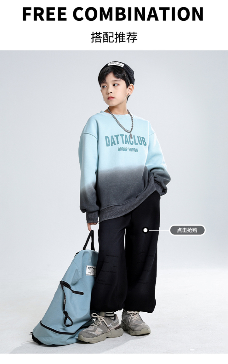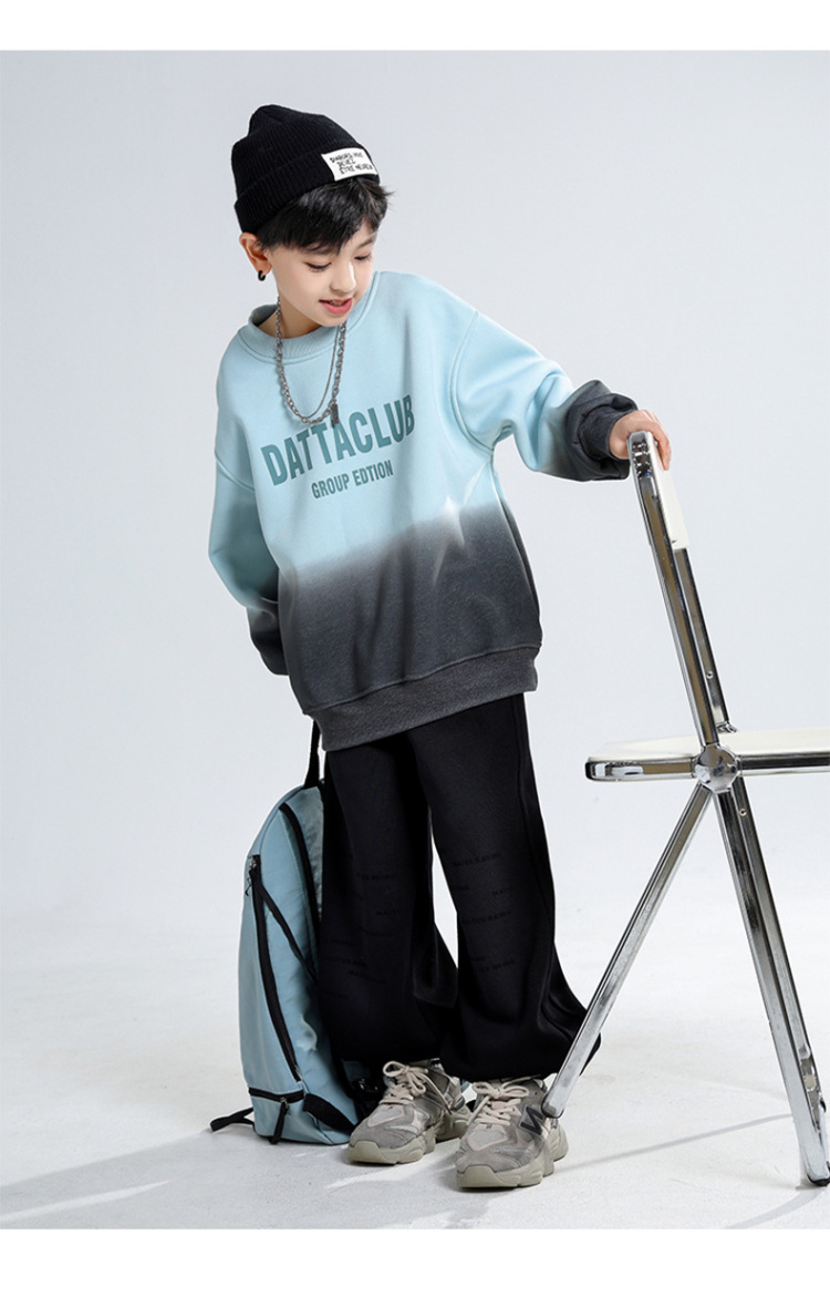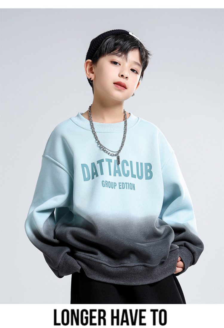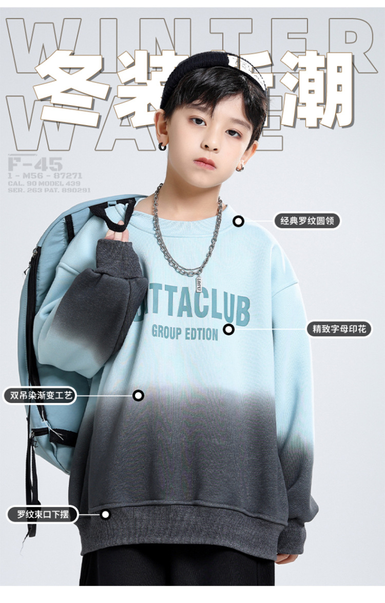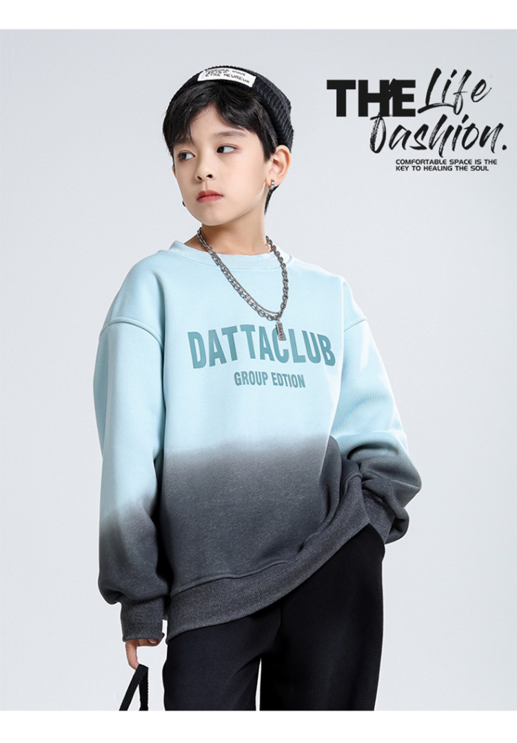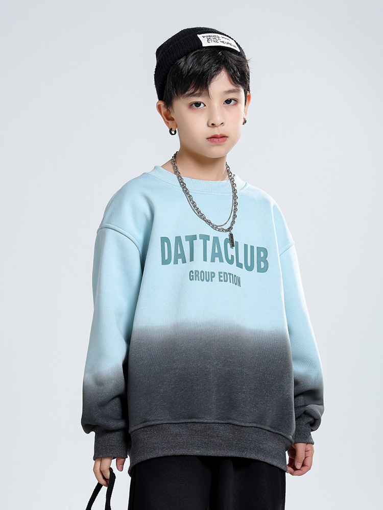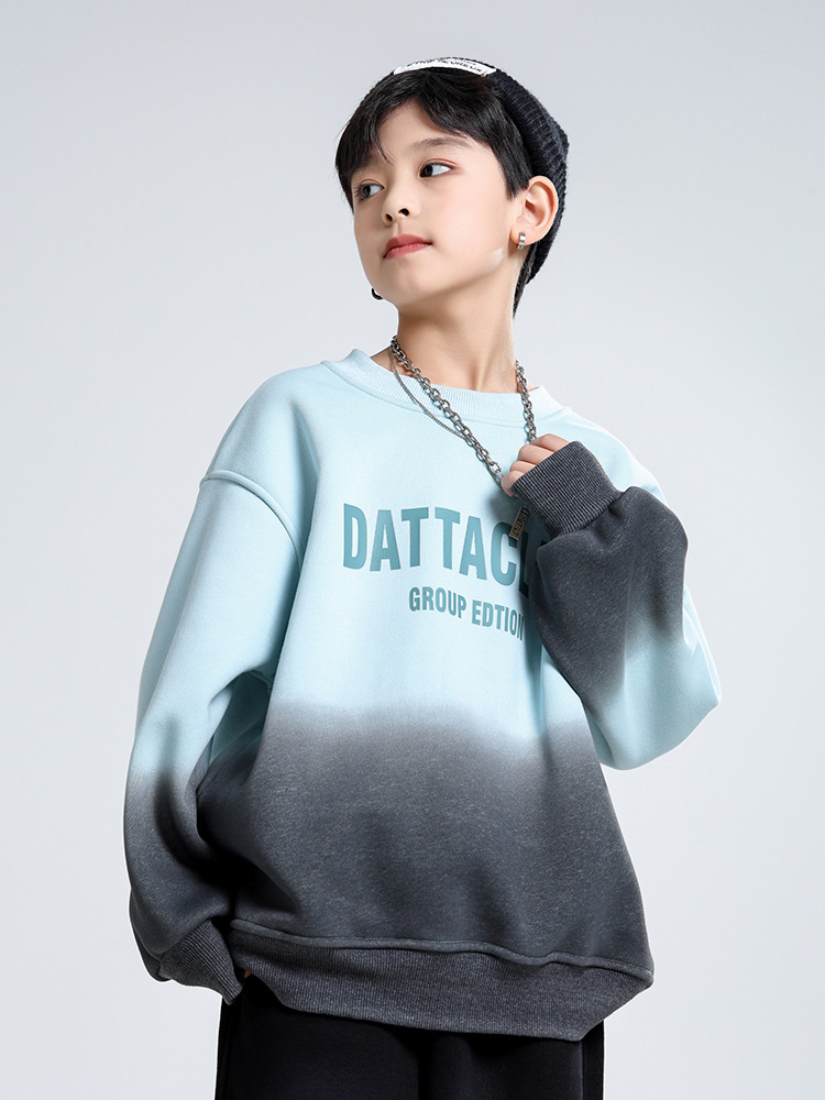 어린이 가을과 겨울 새로운 트렌디 브랜드 소년 '매달린 염료 그라디언트 기모 중대형 어린이 느슨한 둥근 목 땀 어린이 의류스토어 가기