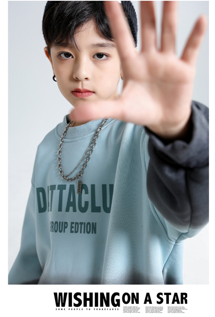 어린이 가을과 겨울 새로운 트렌디 브랜드 소년 '매달린 염료 그라디언트 기모 중대형 어린이 느슨한 둥근 목 땀 어린이 의류