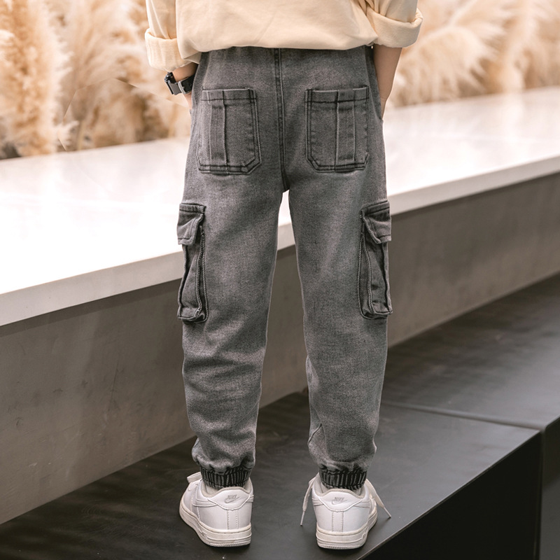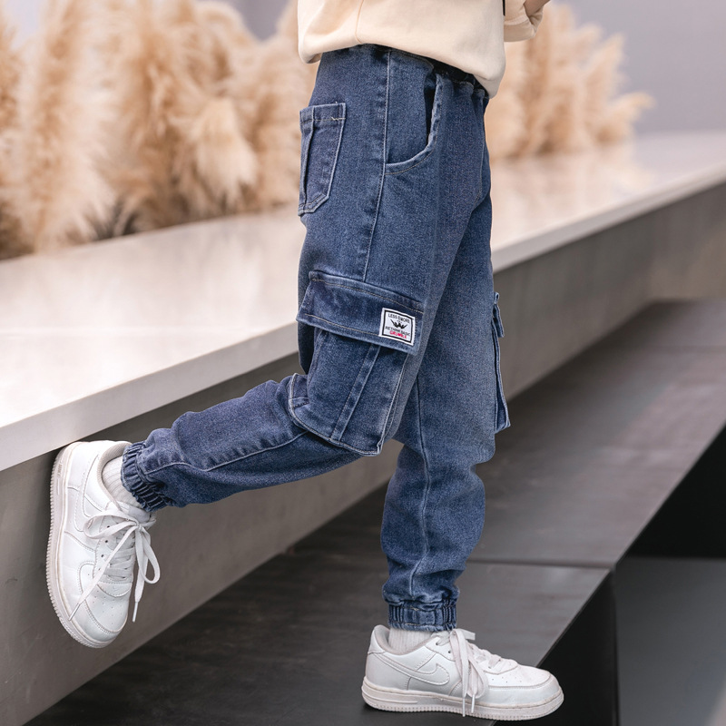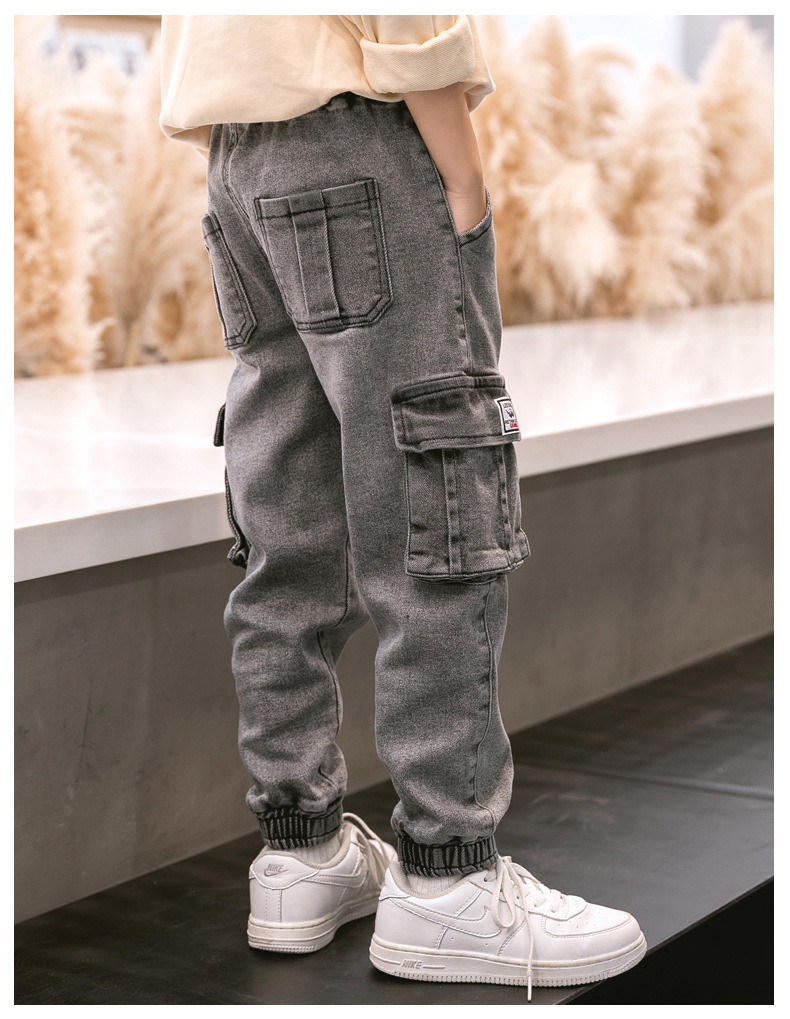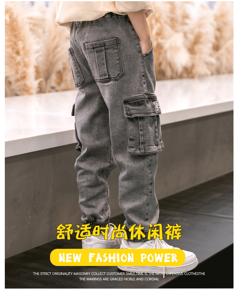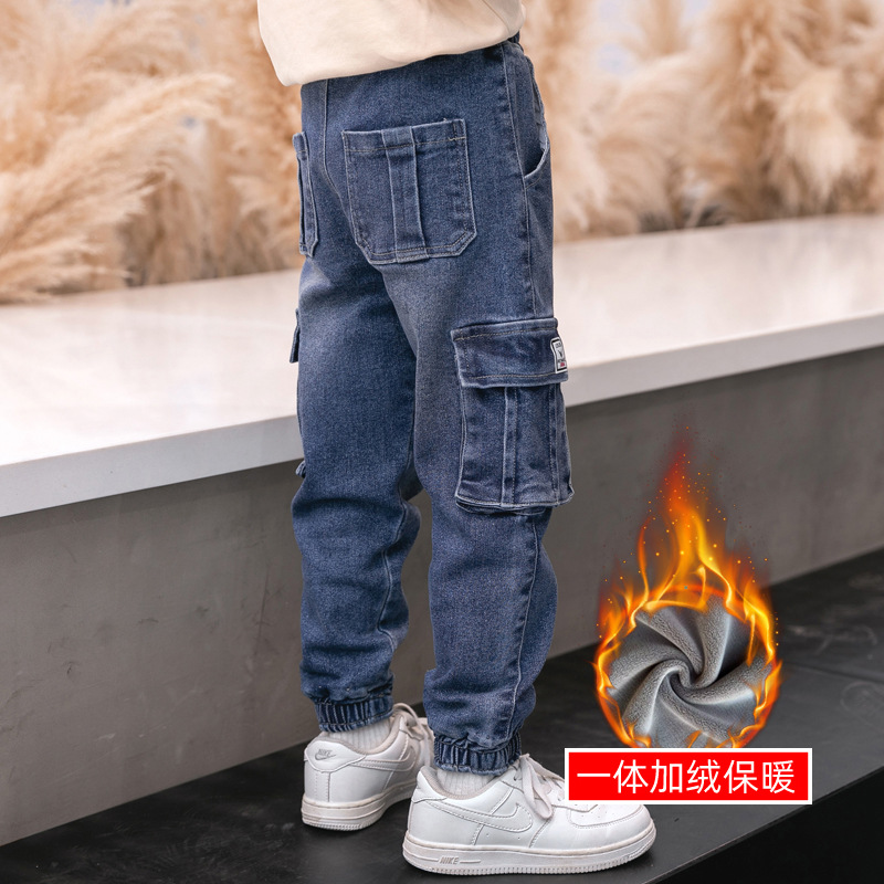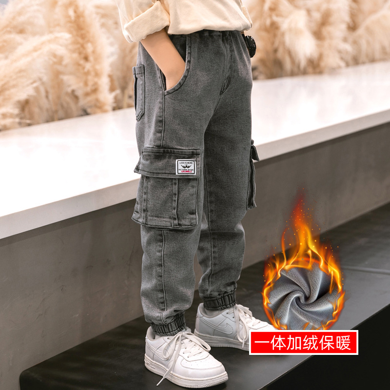 소년 쿠션 청바지 가을과 겨울 새로운 스타일 중대형 어린이 기모 캐주얼 바지 소년 길거리 튀김 잘 생긴 바지