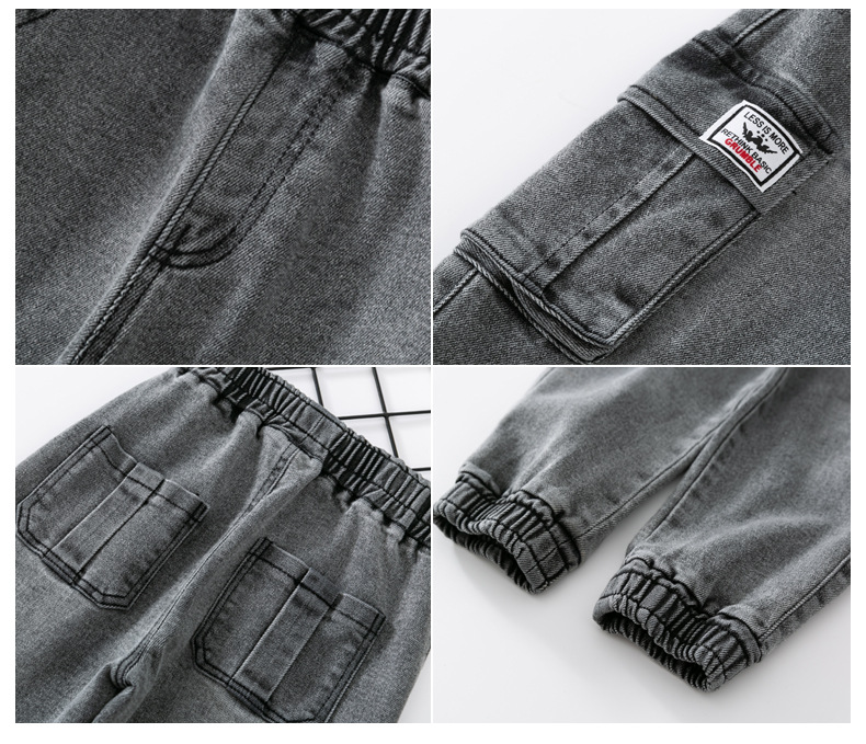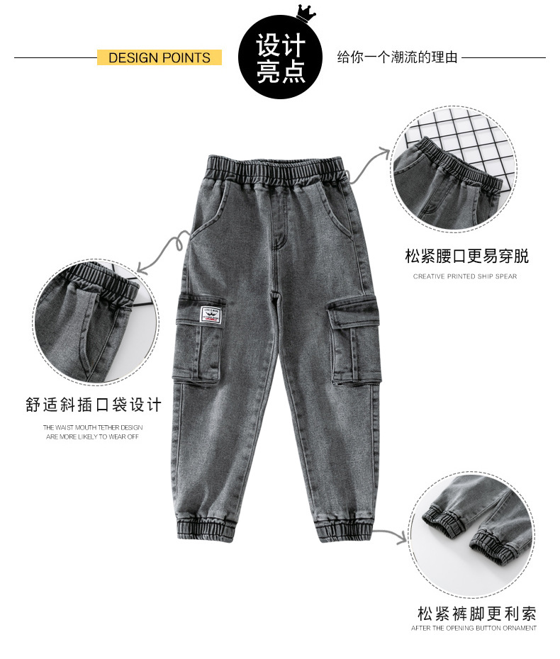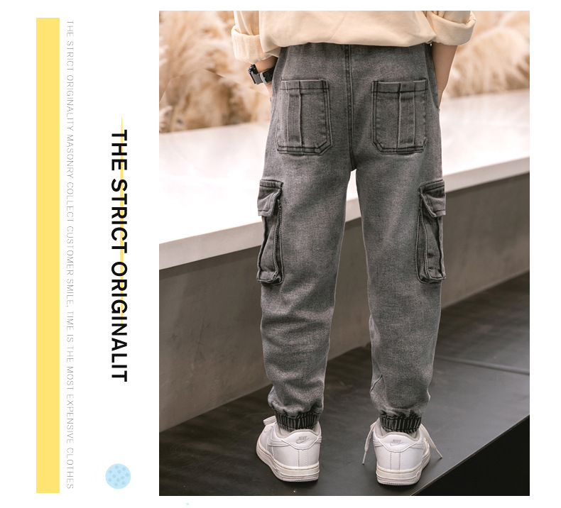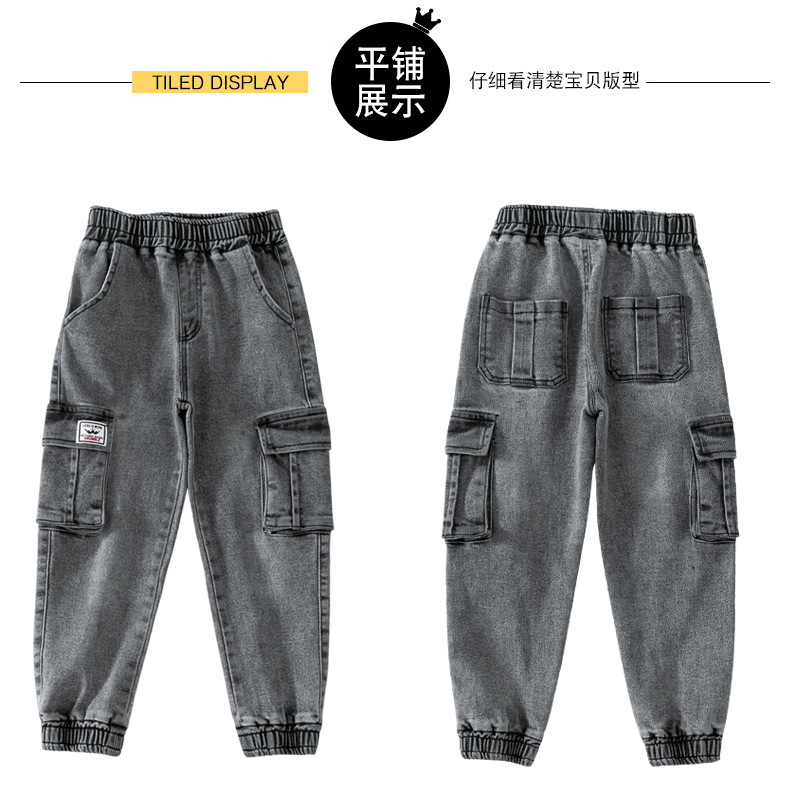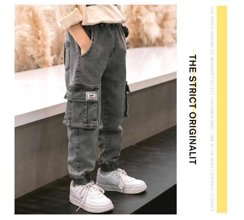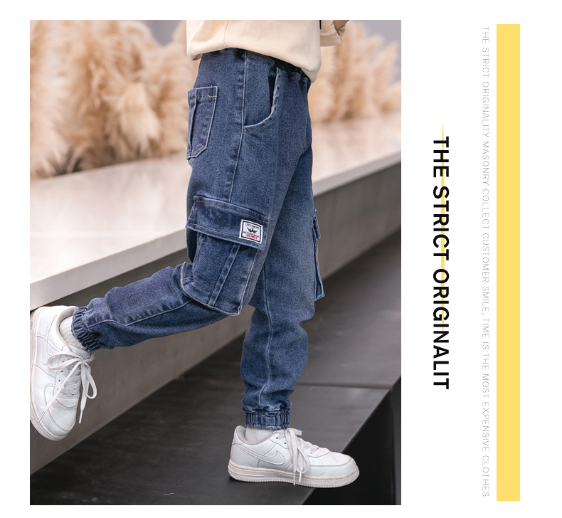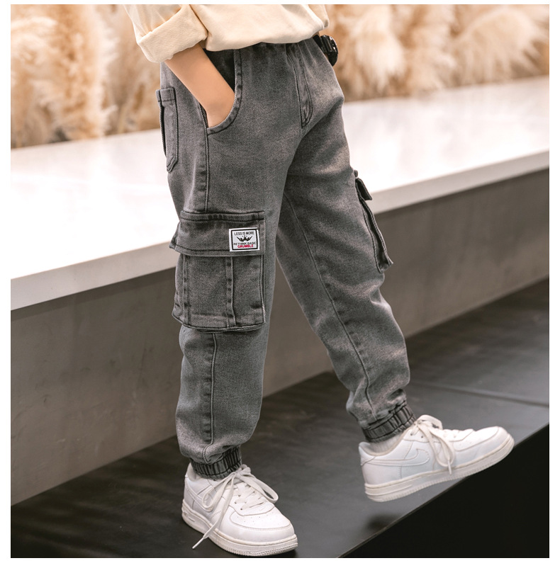 소년 쿠션 청바지 가을과 겨울 새로운 스타일 중대형 어린이 기모 캐주얼 바지 소년 길거리 튀김 잘 생긴 바지