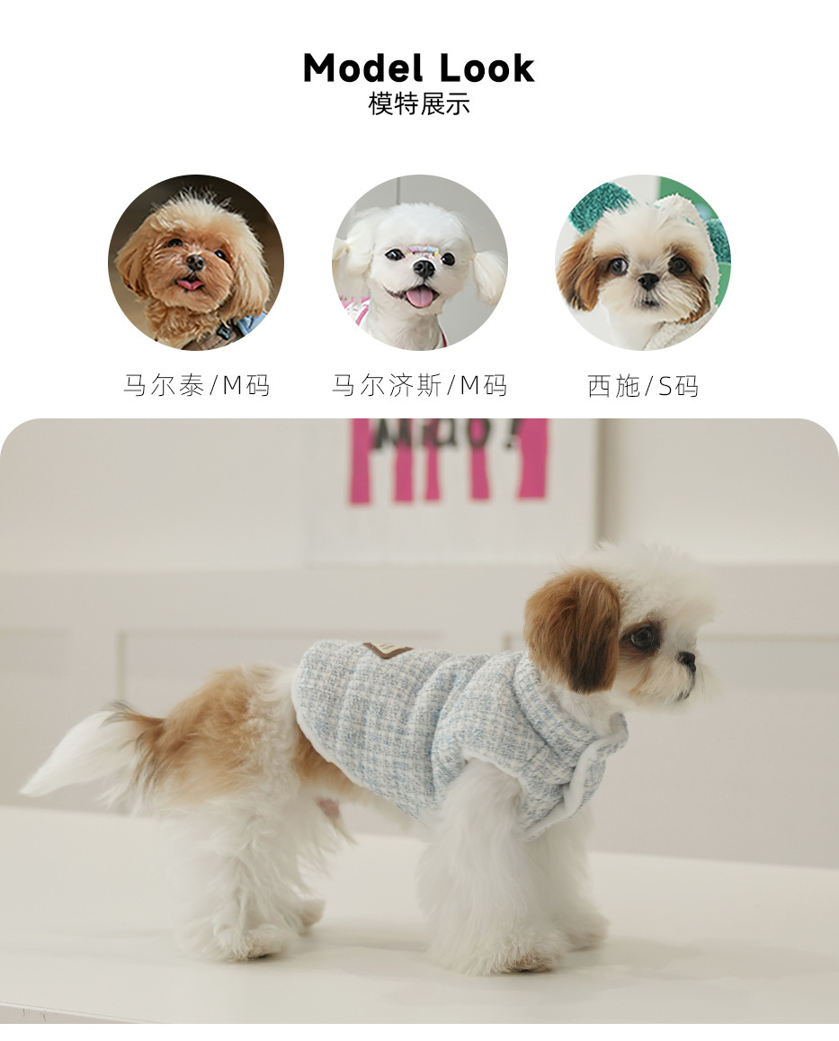 큐파이 강아지 가을 겨울 프렌치 스타일 카라 코튼 자수 의류 슈나우저 비숑 투레그 애완동물 옷스토어 가기