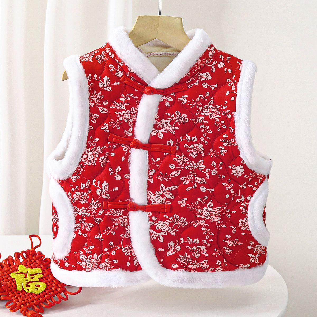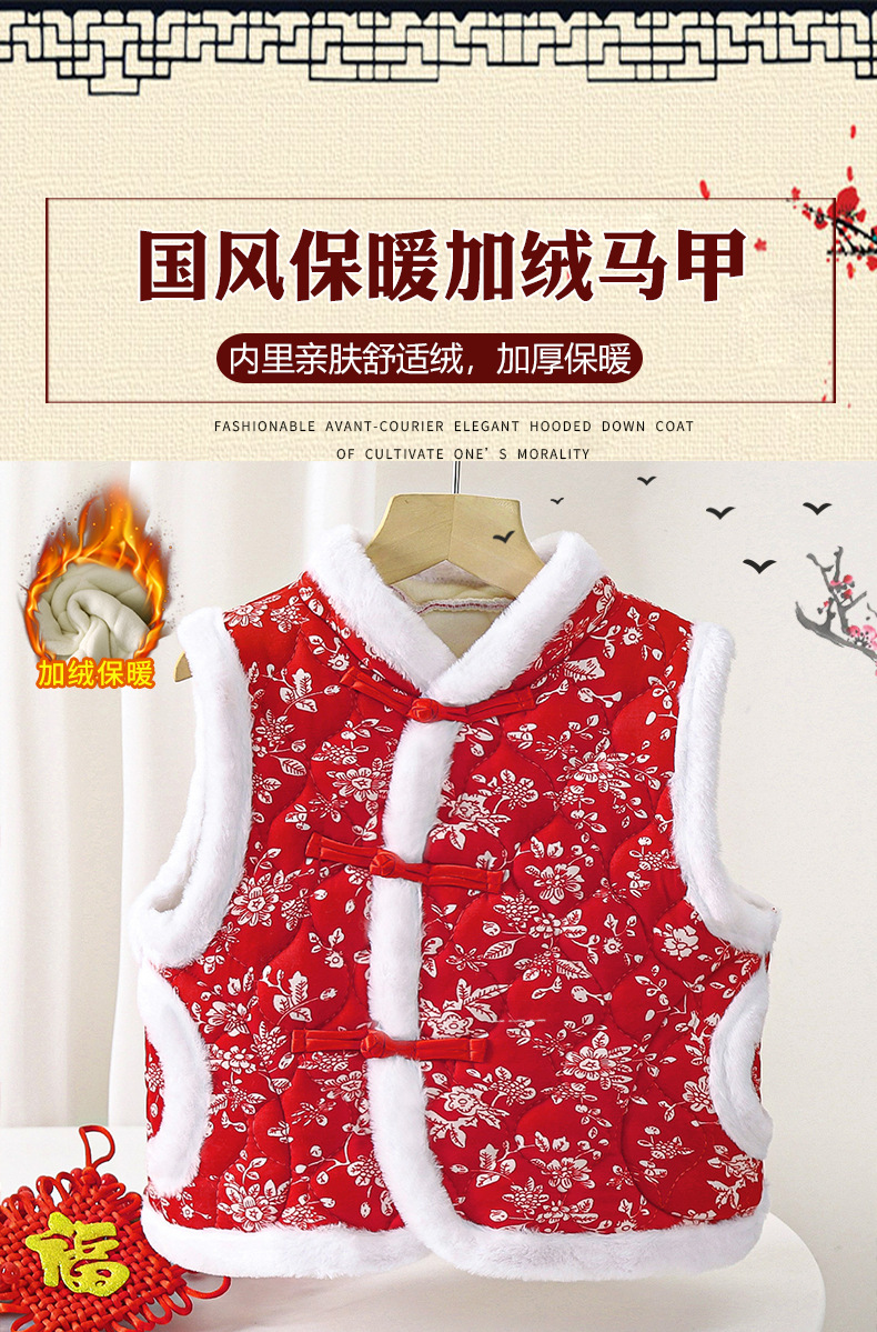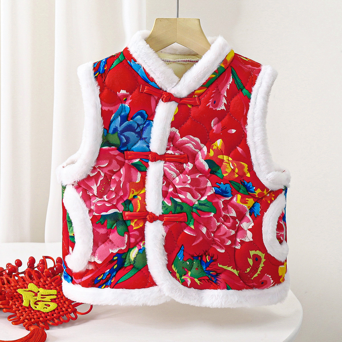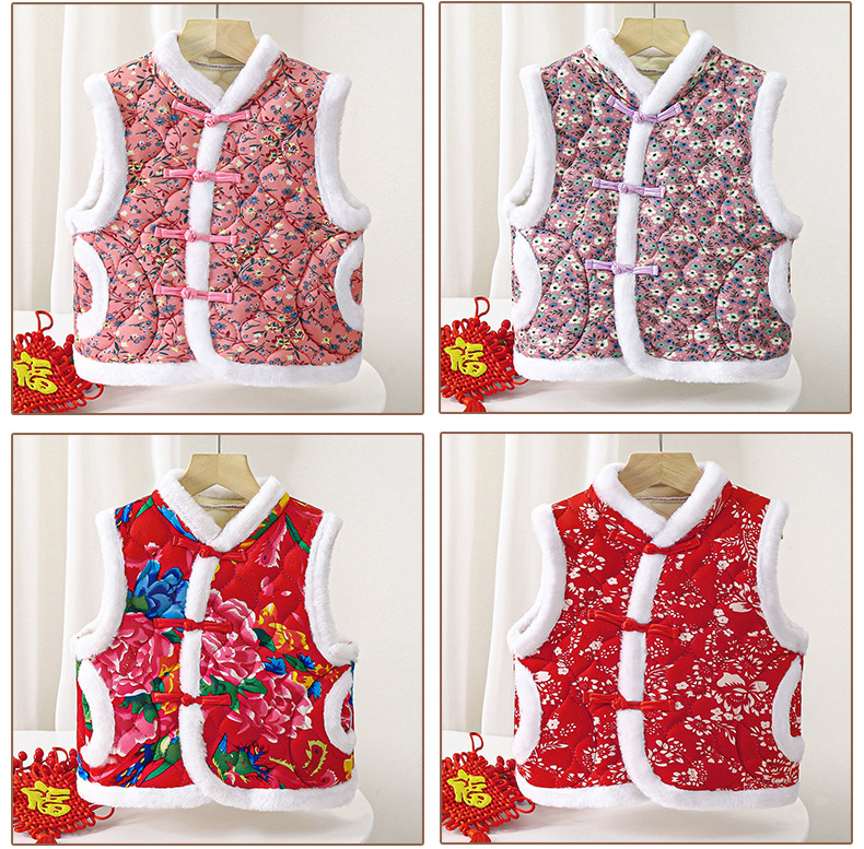 아기 민족 스타일 동북 꽃 조끼 어린이 따뜻한 실크면 두꺼운 조끼 어린이 따뜻한 중국 스타일 탕 원피스