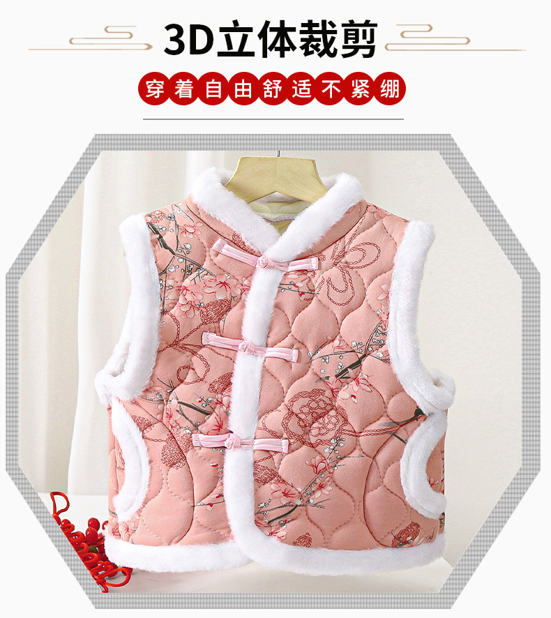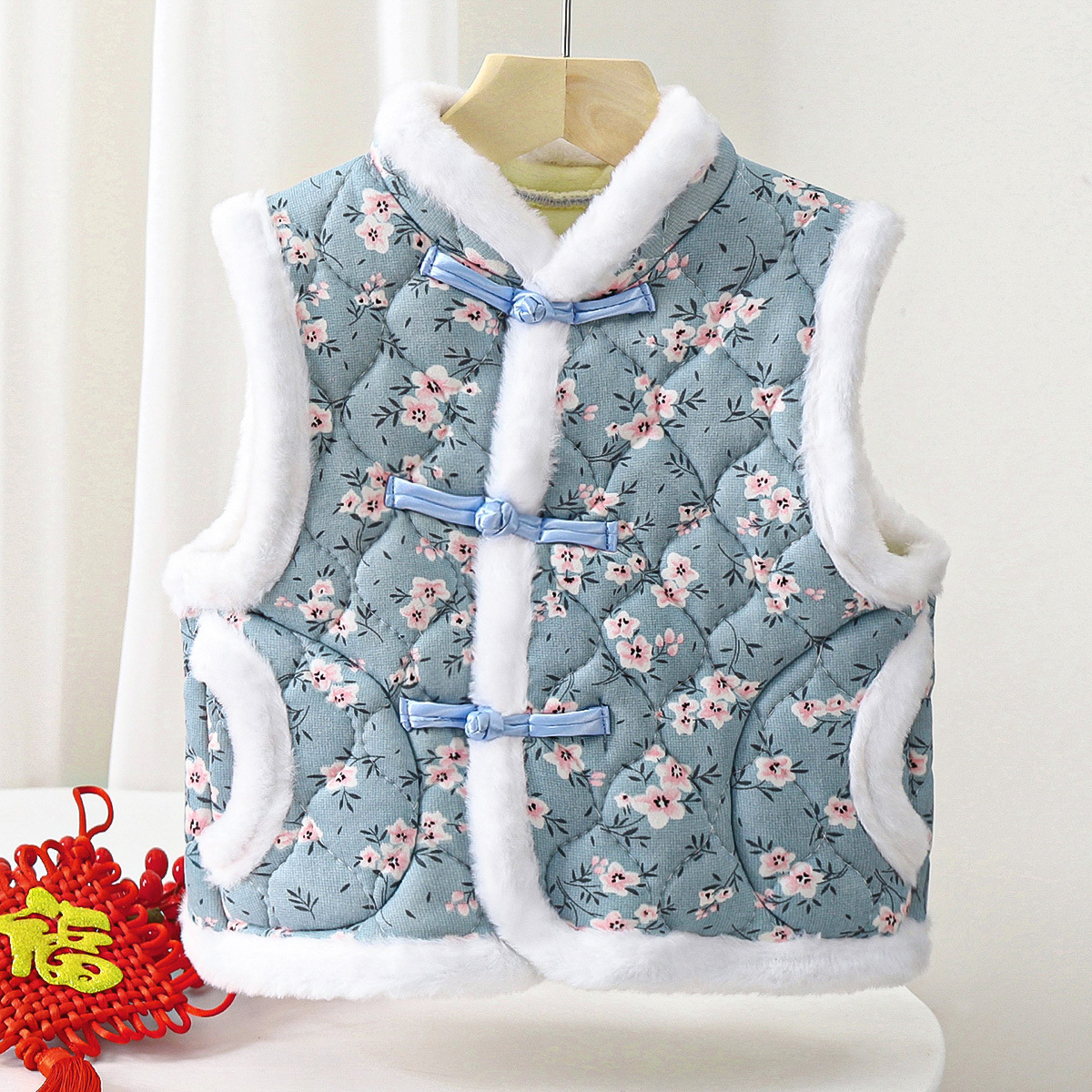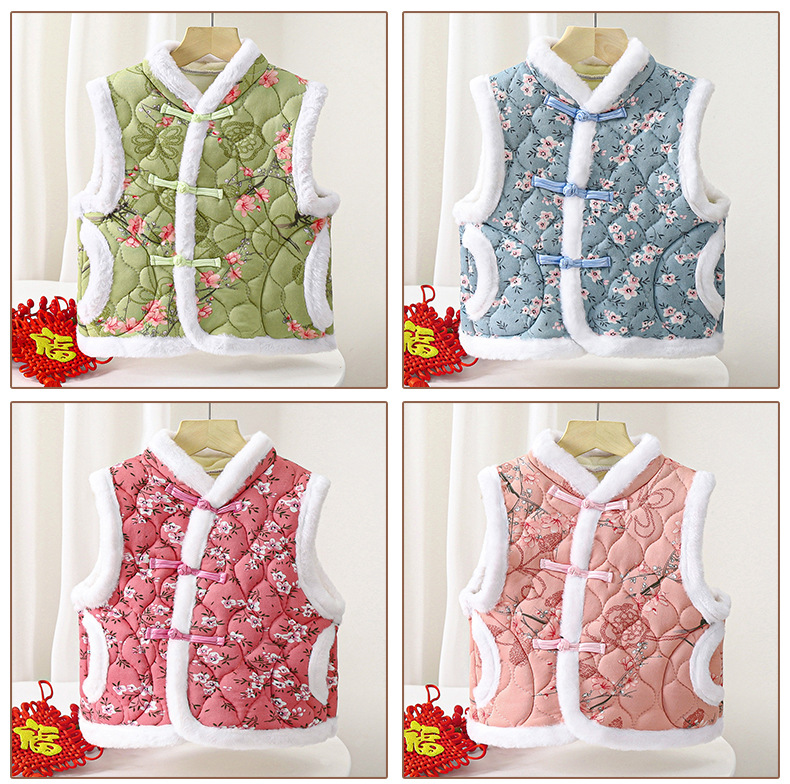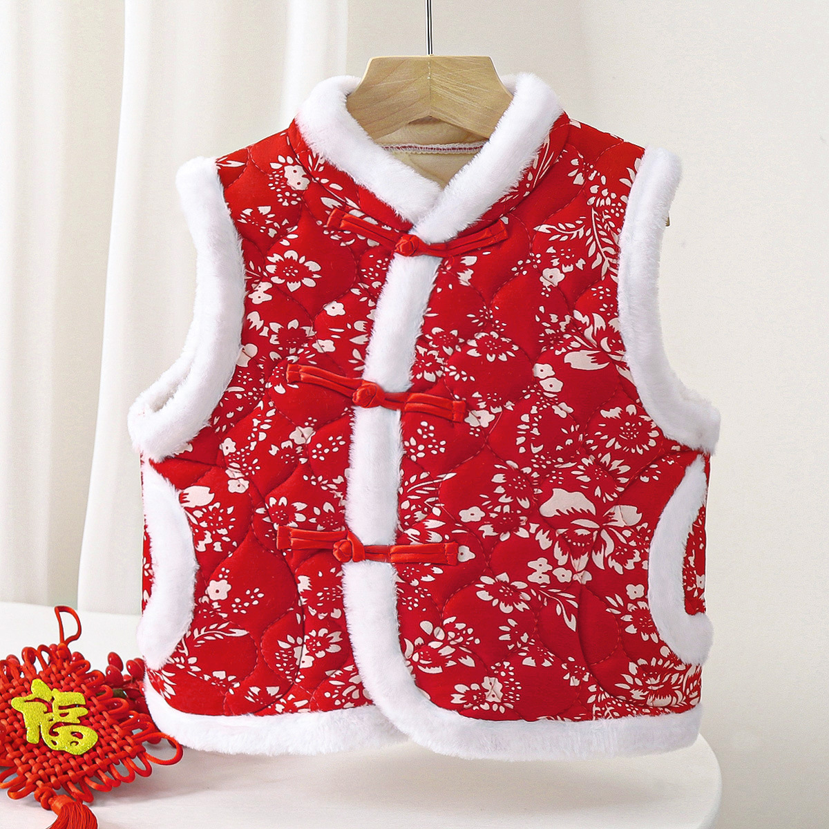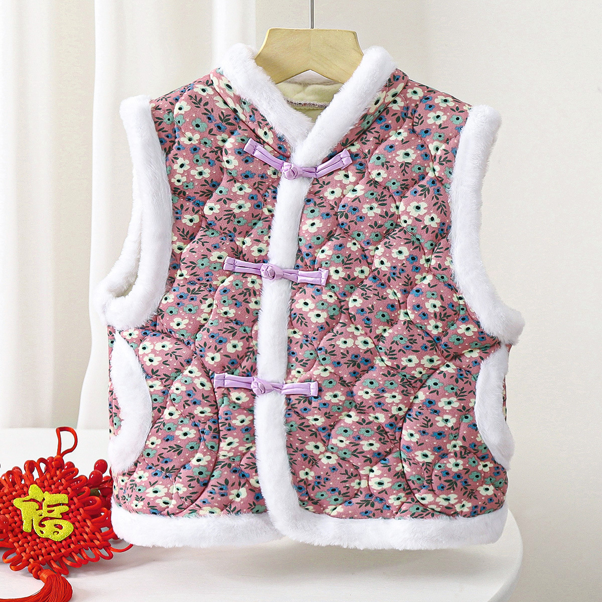 아기 민족 스타일 동북 꽃 조끼 어린이 따뜻한 실크면 두꺼운 조끼 어린이 따뜻한 중국 스타일 탕 원피스