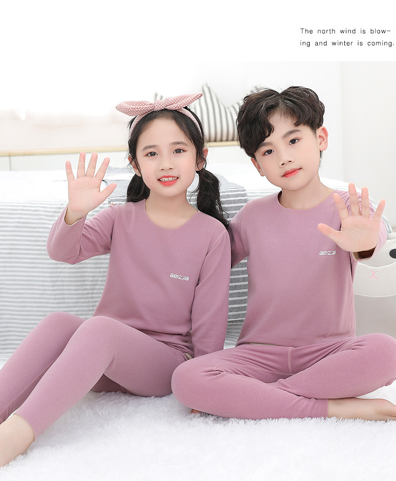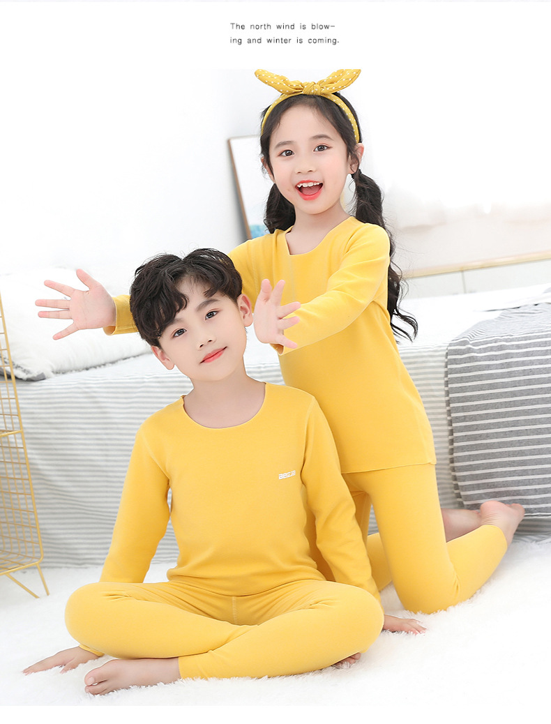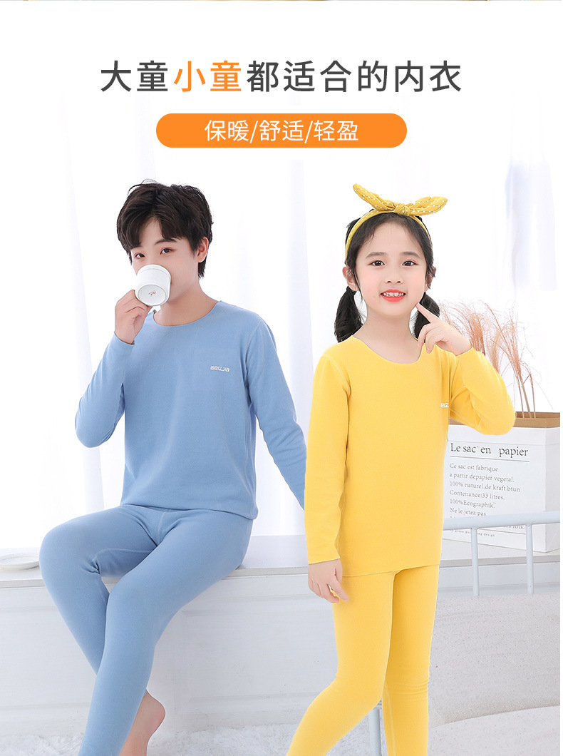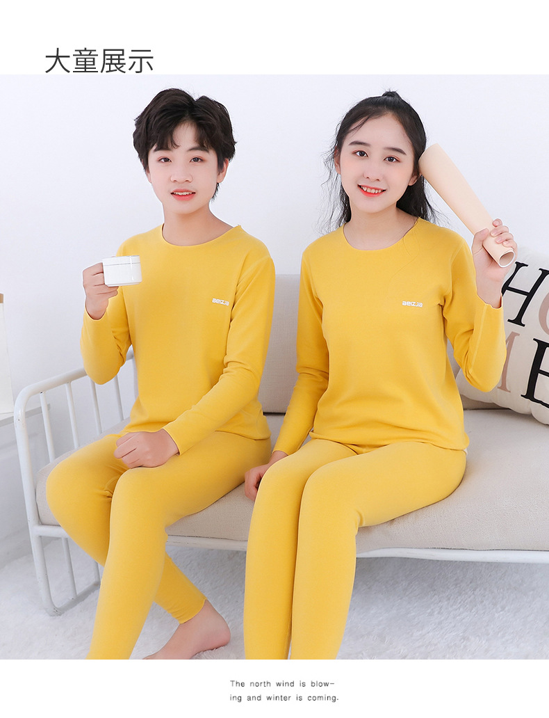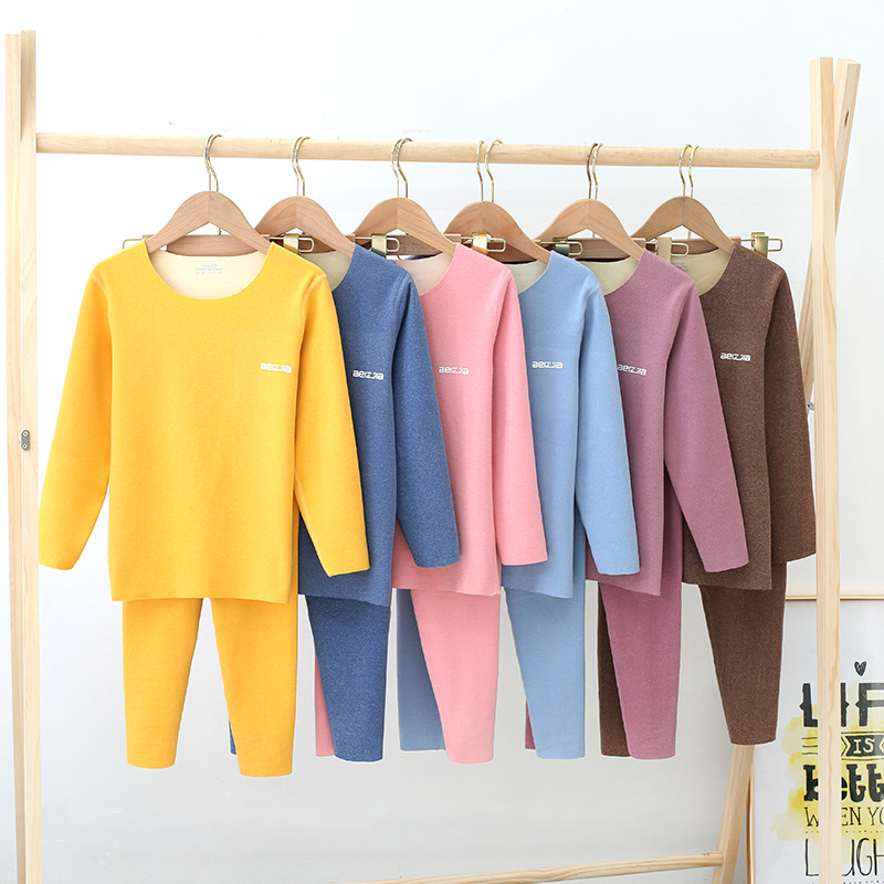 가을과 겨울 새로운 어린이 AB 얼굴 열 속옷 세트 사탕 색깔 둥근 목 두꺼운 홈 옷스토어 가기