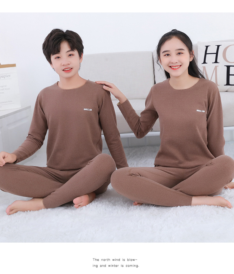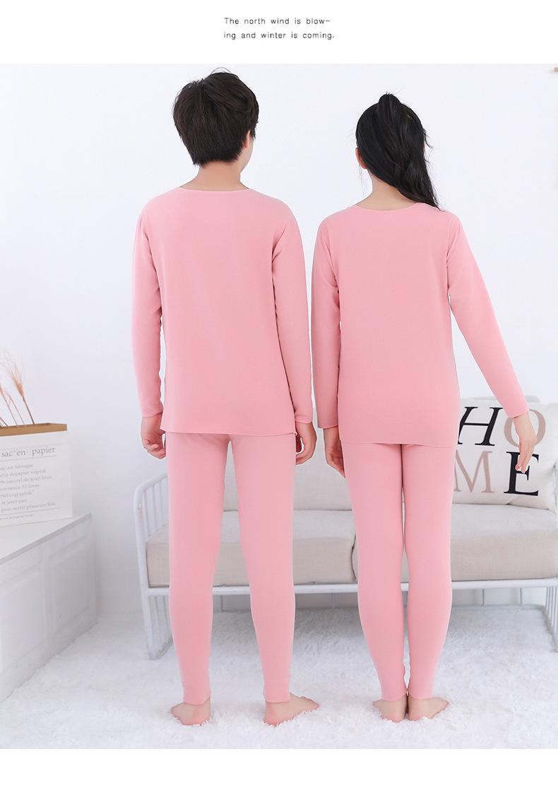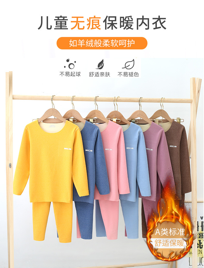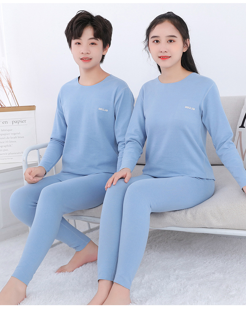 가을과 겨울 새로운 어린이 AB 얼굴 열 속옷 세트 사탕 색깔 둥근 목 두꺼운 홈 옷스토어 가기