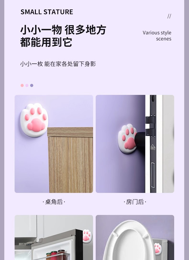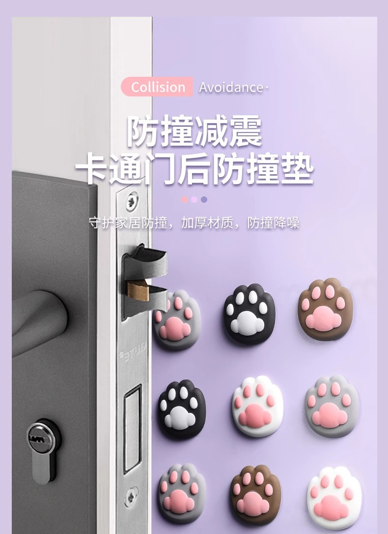 귀여운 고양이의 발톱 충돌 방지 매트 도어 핸들 충돌 방지 스티커 3 차원 실리콘 도어 스톱 장식 벽 스티커 침실 도어 스톱 장치 도어 터치