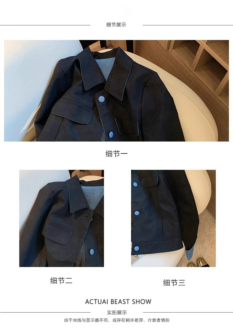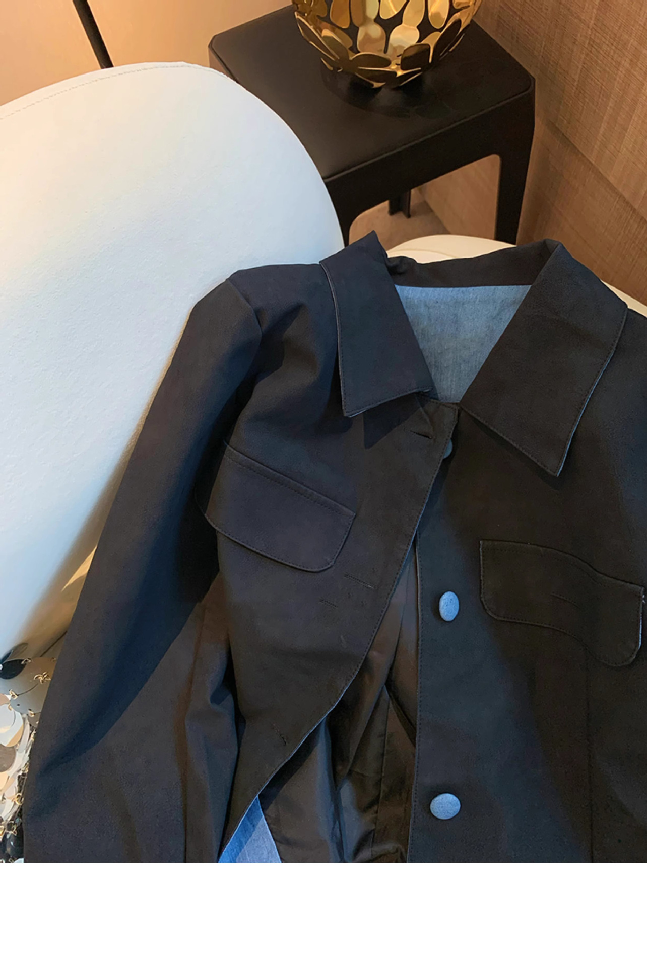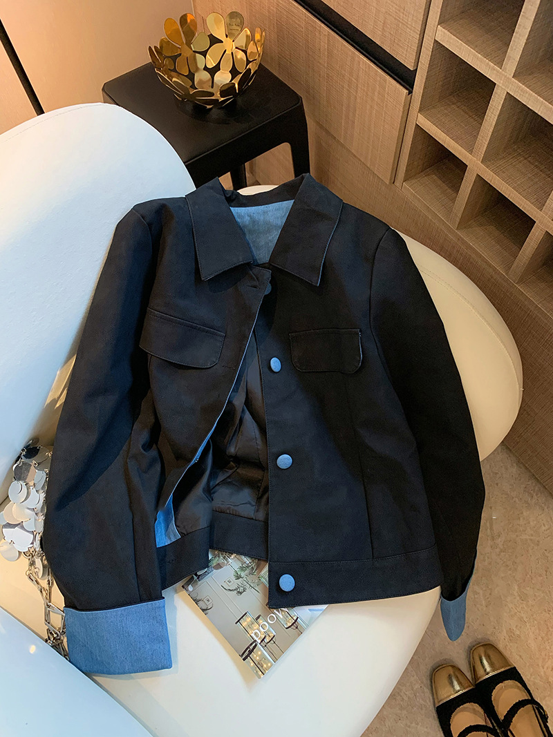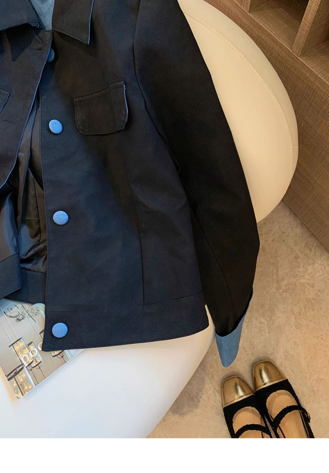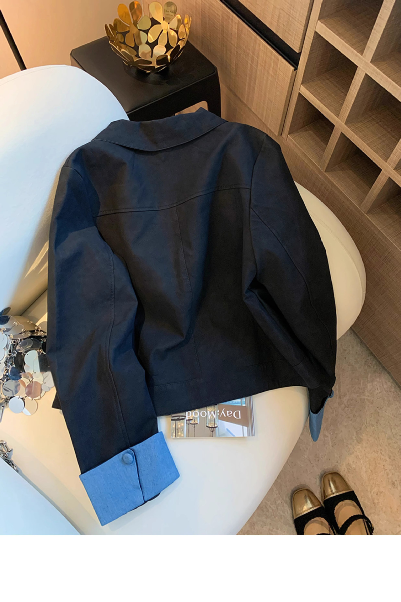 가을 겨울 여성을 위한 블루와 블랙의 대비 스플라이스 라펠 재킷 새로운 디자인 복고풍 캐주얼 스웨이드 재킷