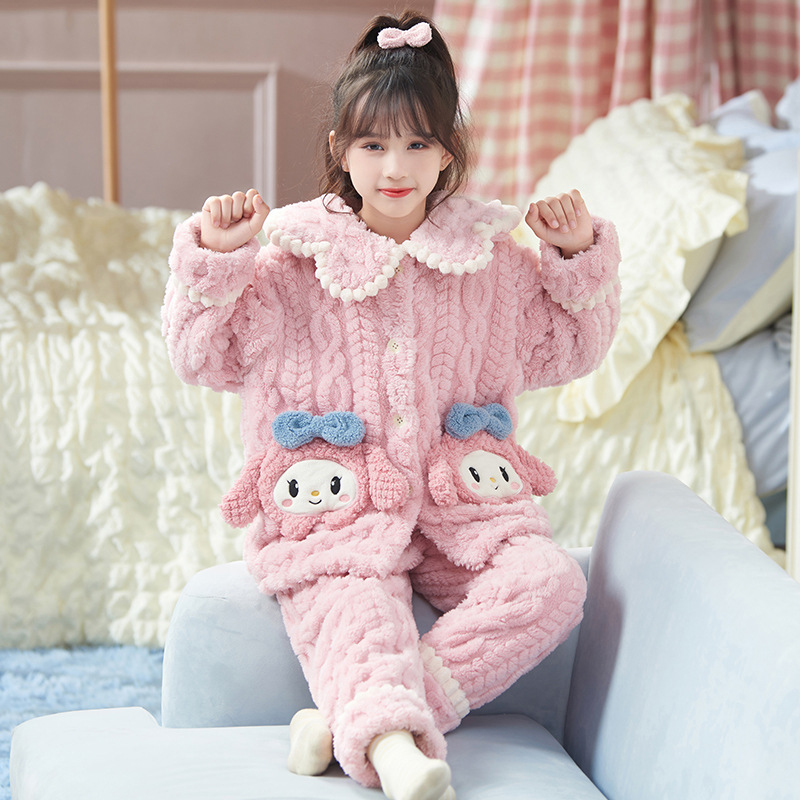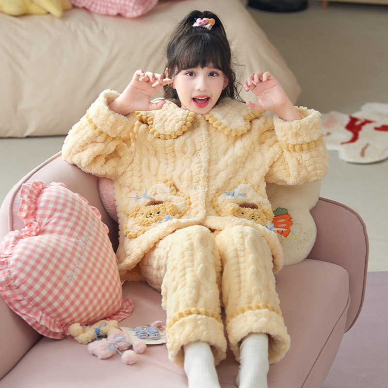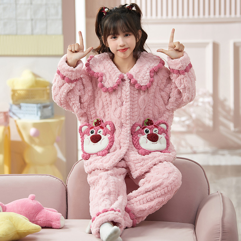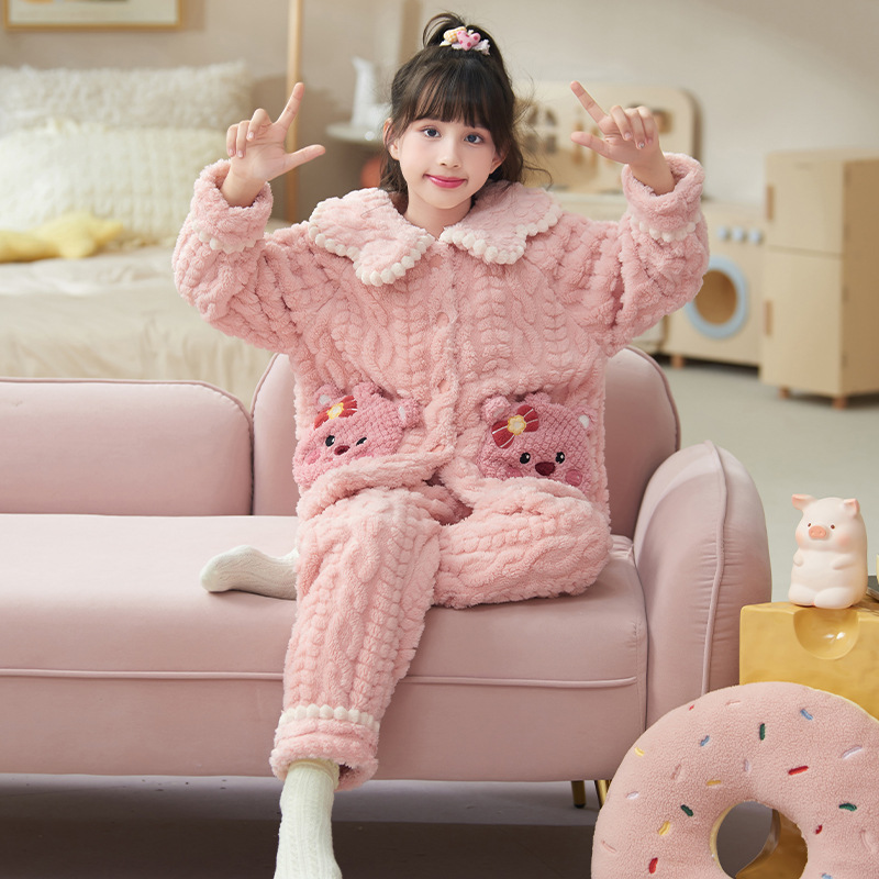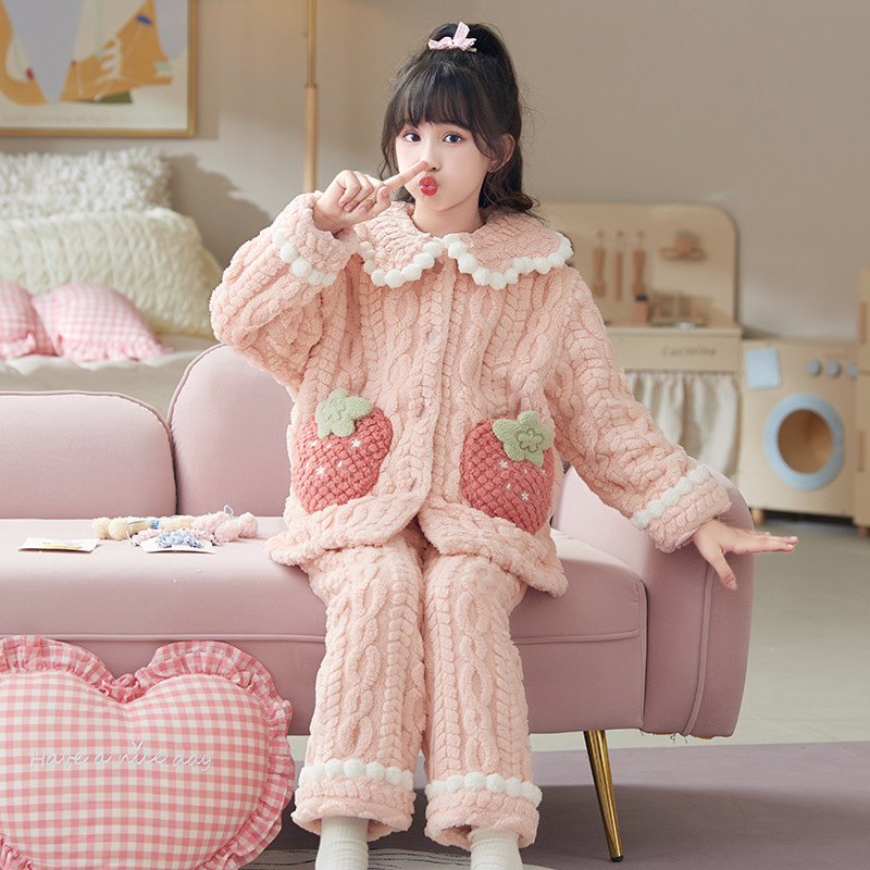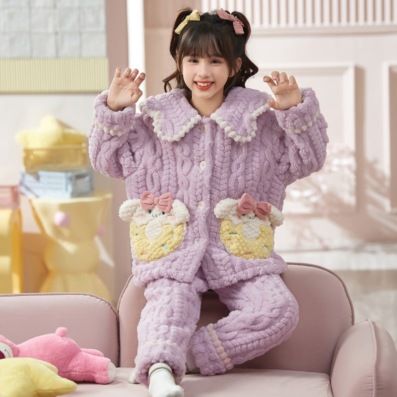 가을과 겨울 어린이 플란넬 파자마 소녀 Lingna Bei 홈 옷 세트 소녀 어린이 산호 양털스토어 가기