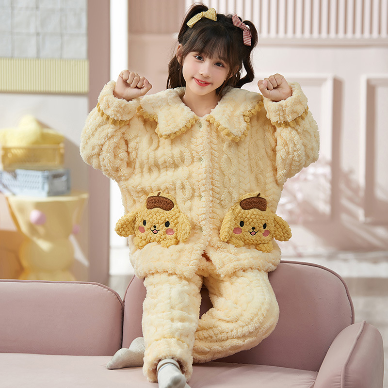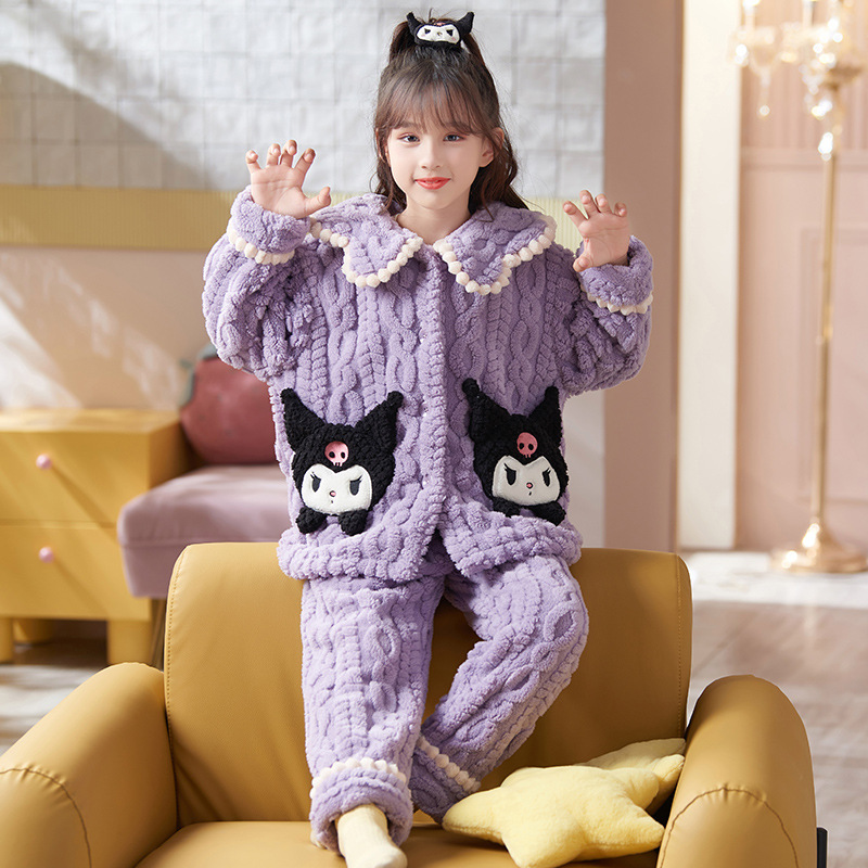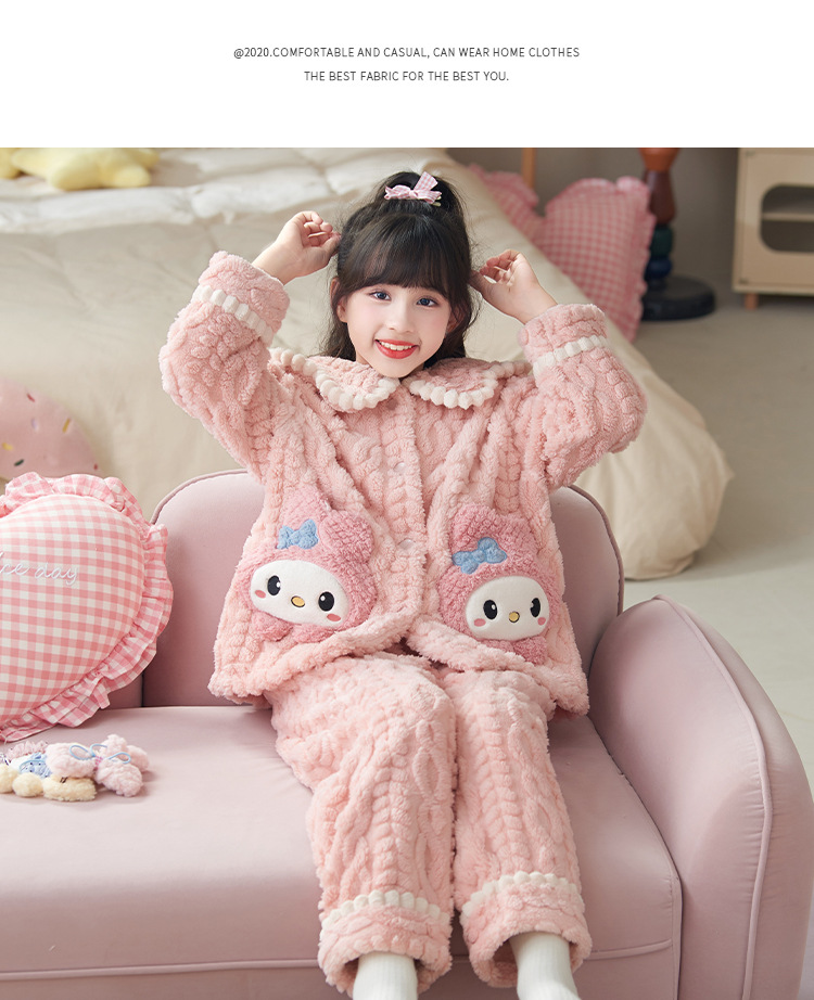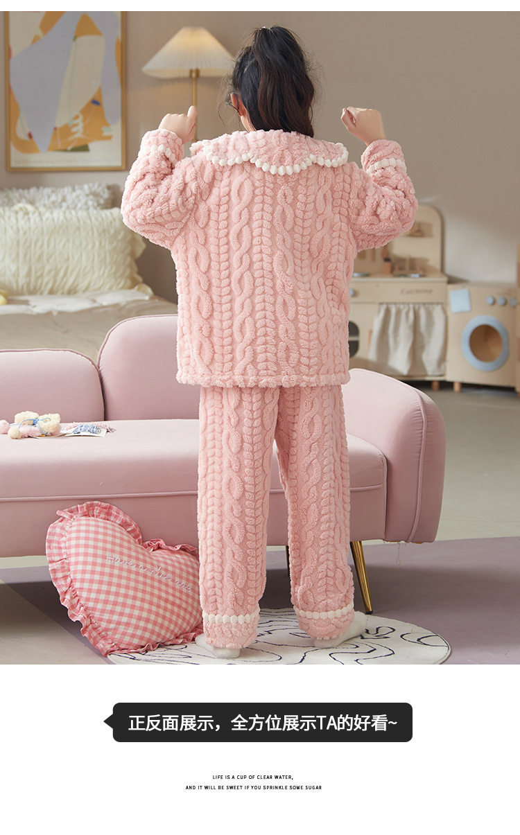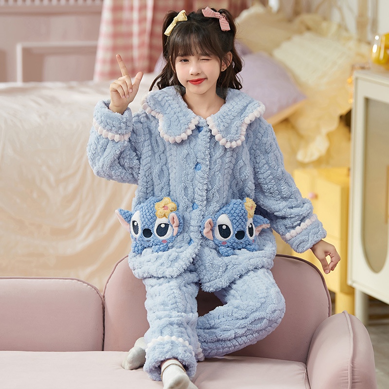 가을과 겨울 어린이 플란넬 파자마 소녀 Lingna Bei 홈 옷 세트 소녀 어린이 산호 양털스토어 가기