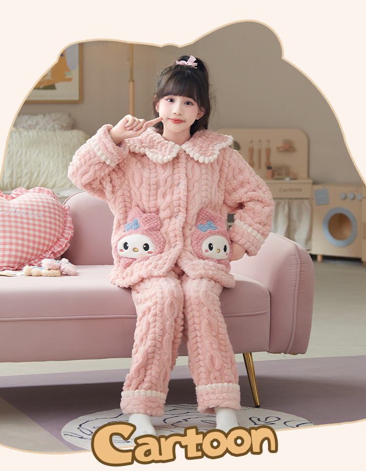가을과 겨울 어린이 플란넬 파자마 소녀 Lingna Bei 홈 옷 세트 소녀 어린이 산호 양털
