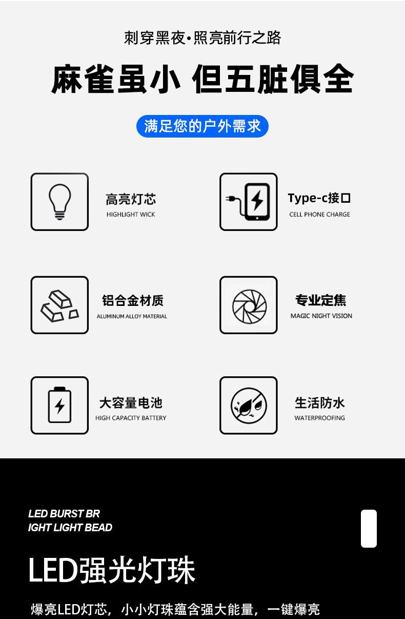 미니 휴대용 손전등 유형 c 빠른 충전 야외 비상 조명 고용량 긴 내구성 작은 손전등