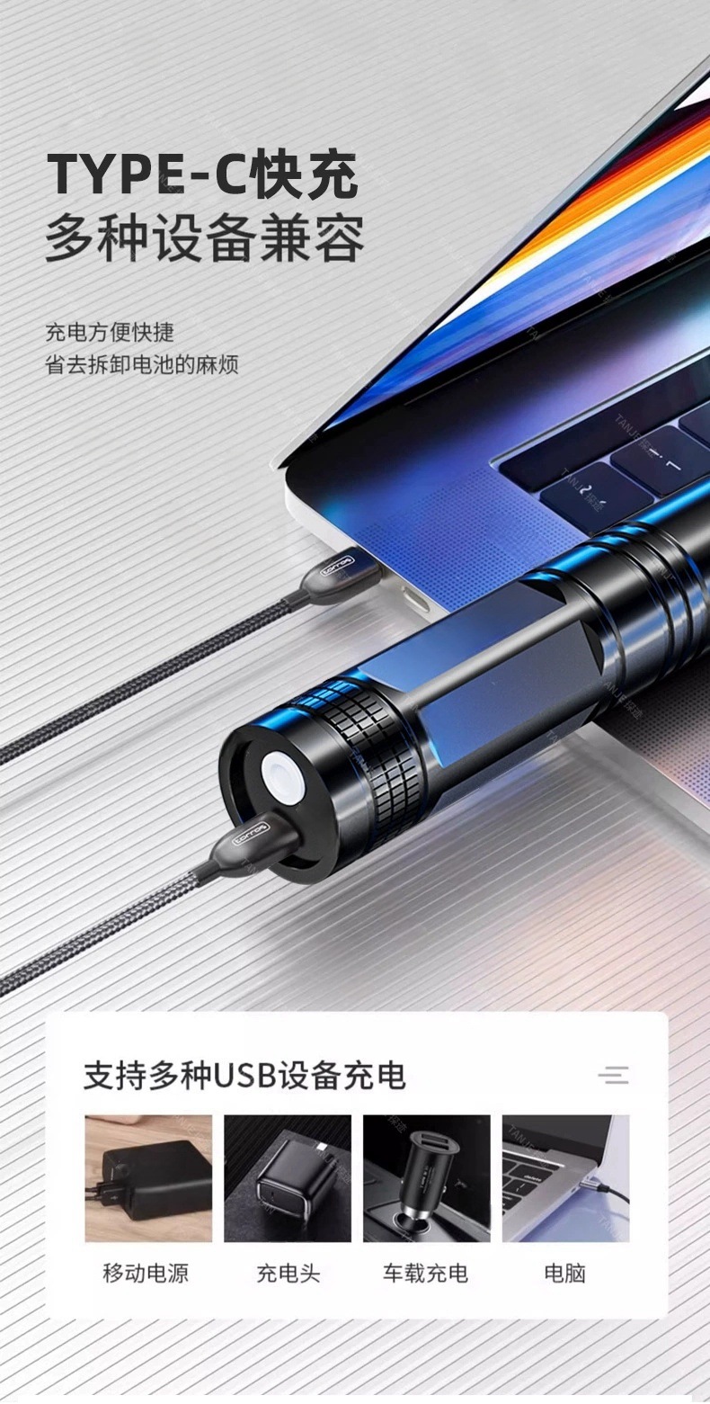 새로운 창조적 인 빠른 충전 강한 빛 작은 손전등 업그레이드 미니 휴대용 야외 홈 비상 조명 높은 용량
