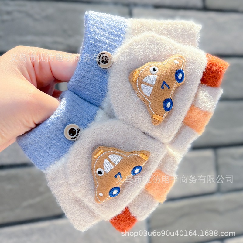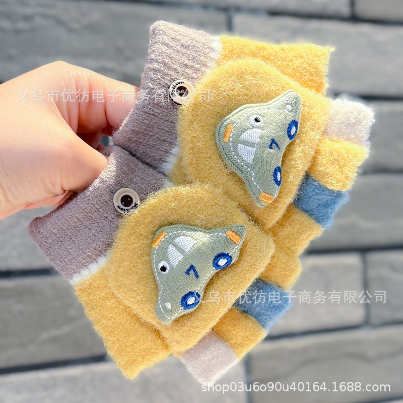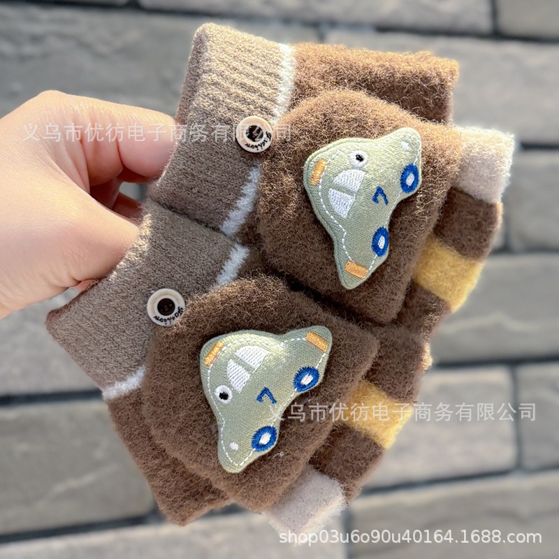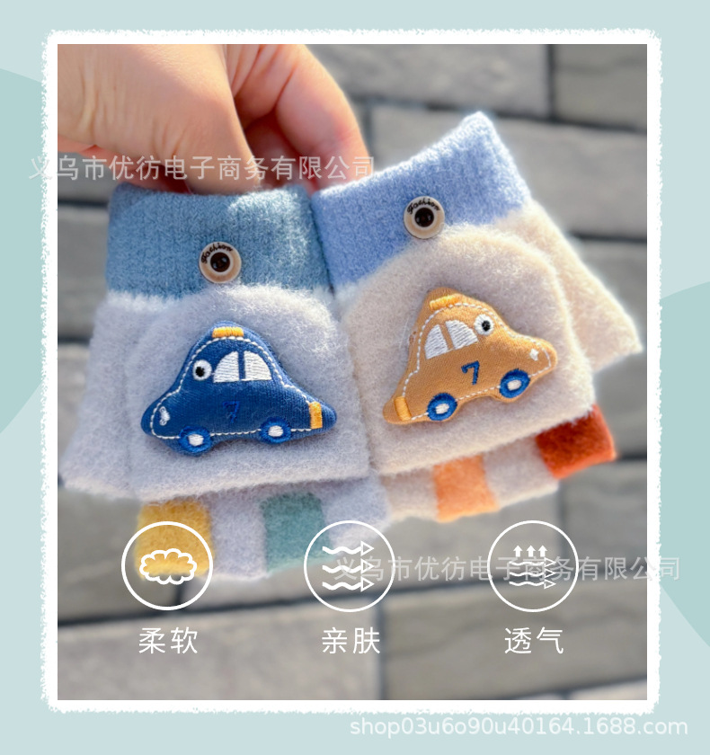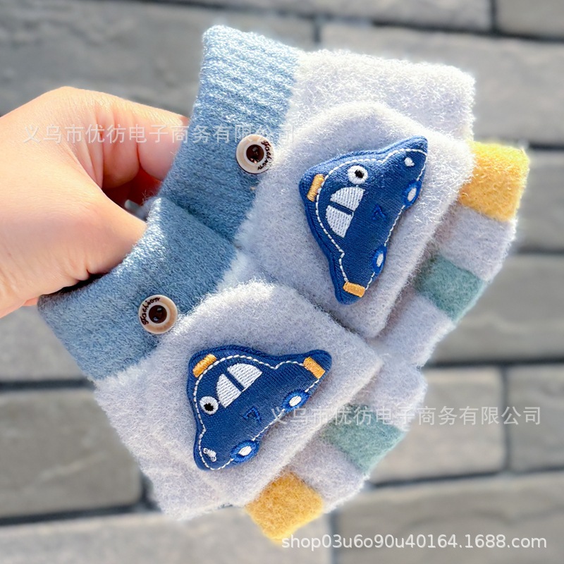 남자 아기 장갑 소년 가을과 겨울 귀여운 자동차 방풍 따뜻한 두꺼운 Exhibitto Finger Boys의 방한 하프 핑거 플립 커버