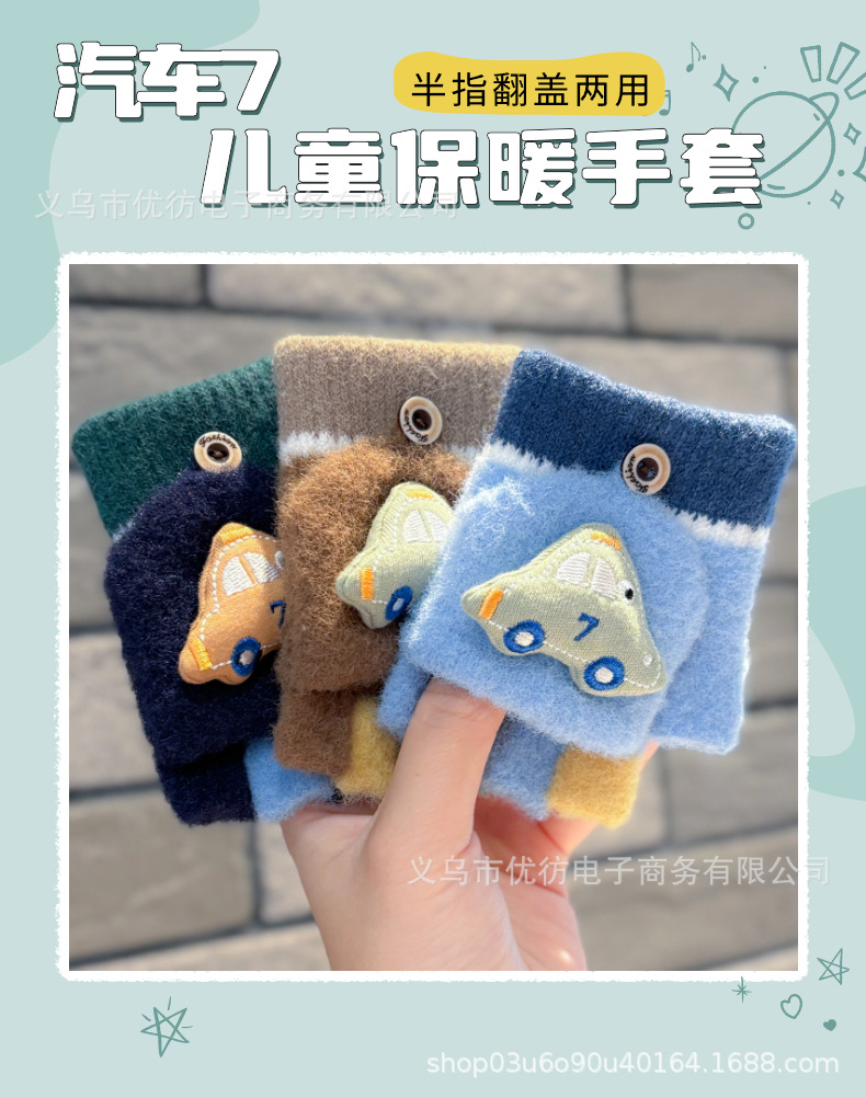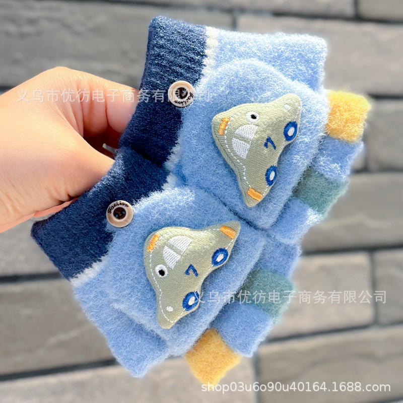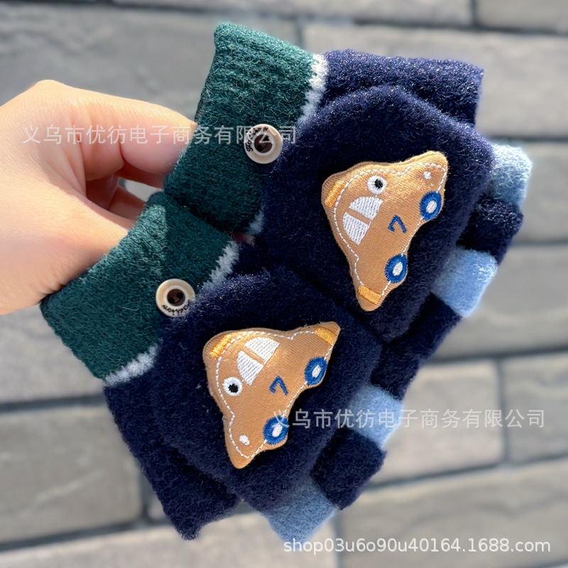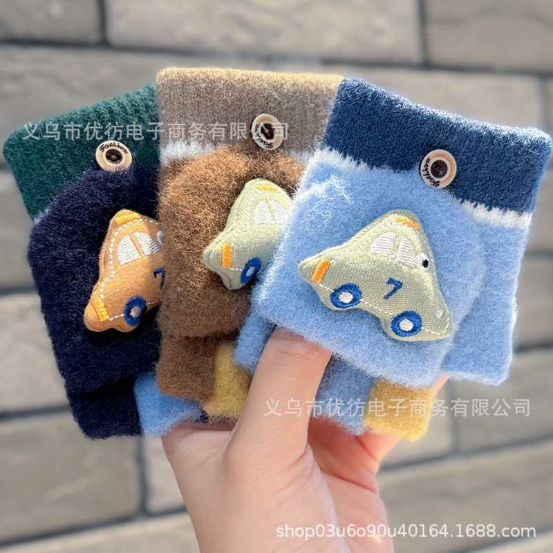 남자 아기 장갑 소년 가을과 겨울 귀여운 자동차 방풍 따뜻한 두꺼운 Exhibitto Finger Boys의 방한 하프 핑거 플립 커버스토어 가기