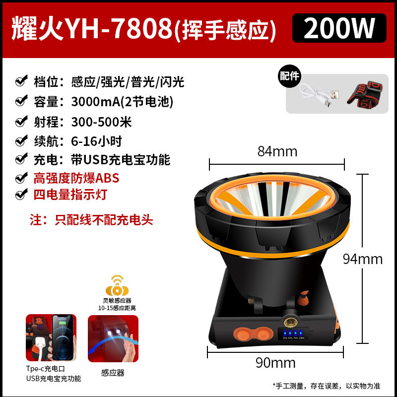 공장 도매 초강력 헤드램프 센서 백색광 황색광 낚시등 레이저 포탄 장시간 지속 LED 손전등스토어 가기