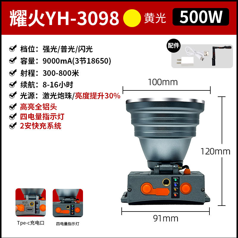 • YH-3098/500W/레이저 포/매우 밝은 전체 알루미늄 헤드/2A 고속 충전