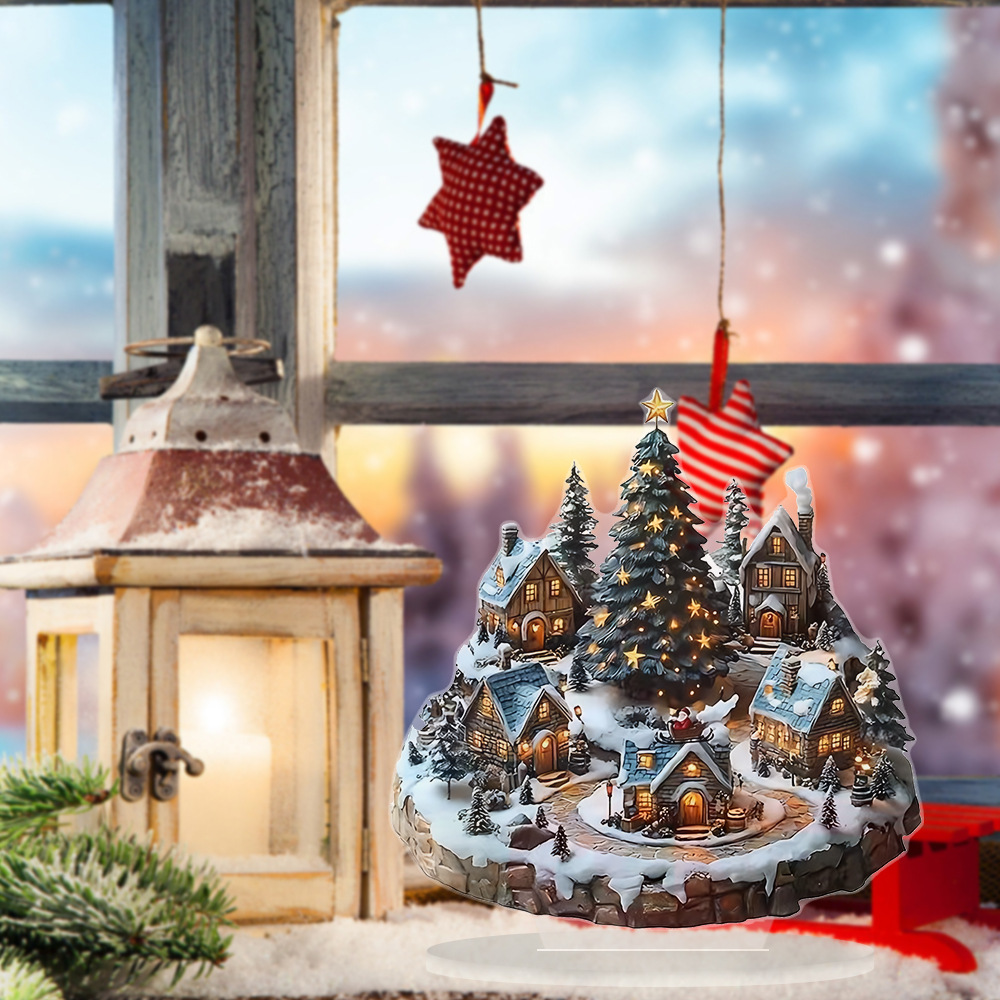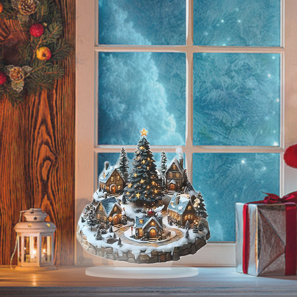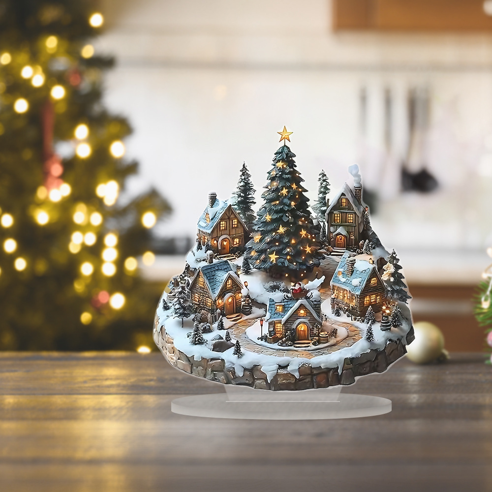국경 새 스노우 하우스 크리스마스 트리 아크릴 기본 데스크탑 장식품 방수 내마모성 휴일 분위기 장식스토어 가기