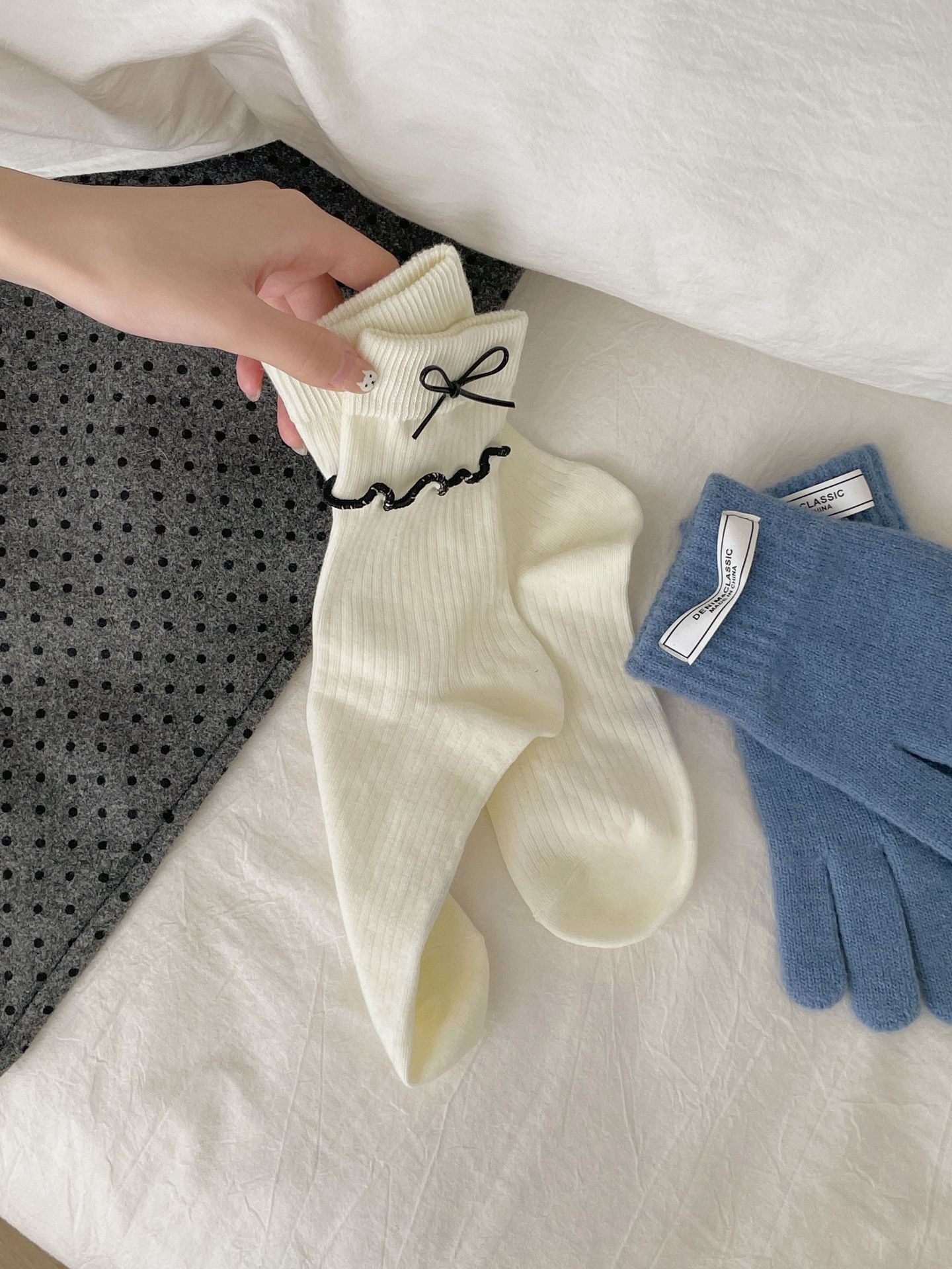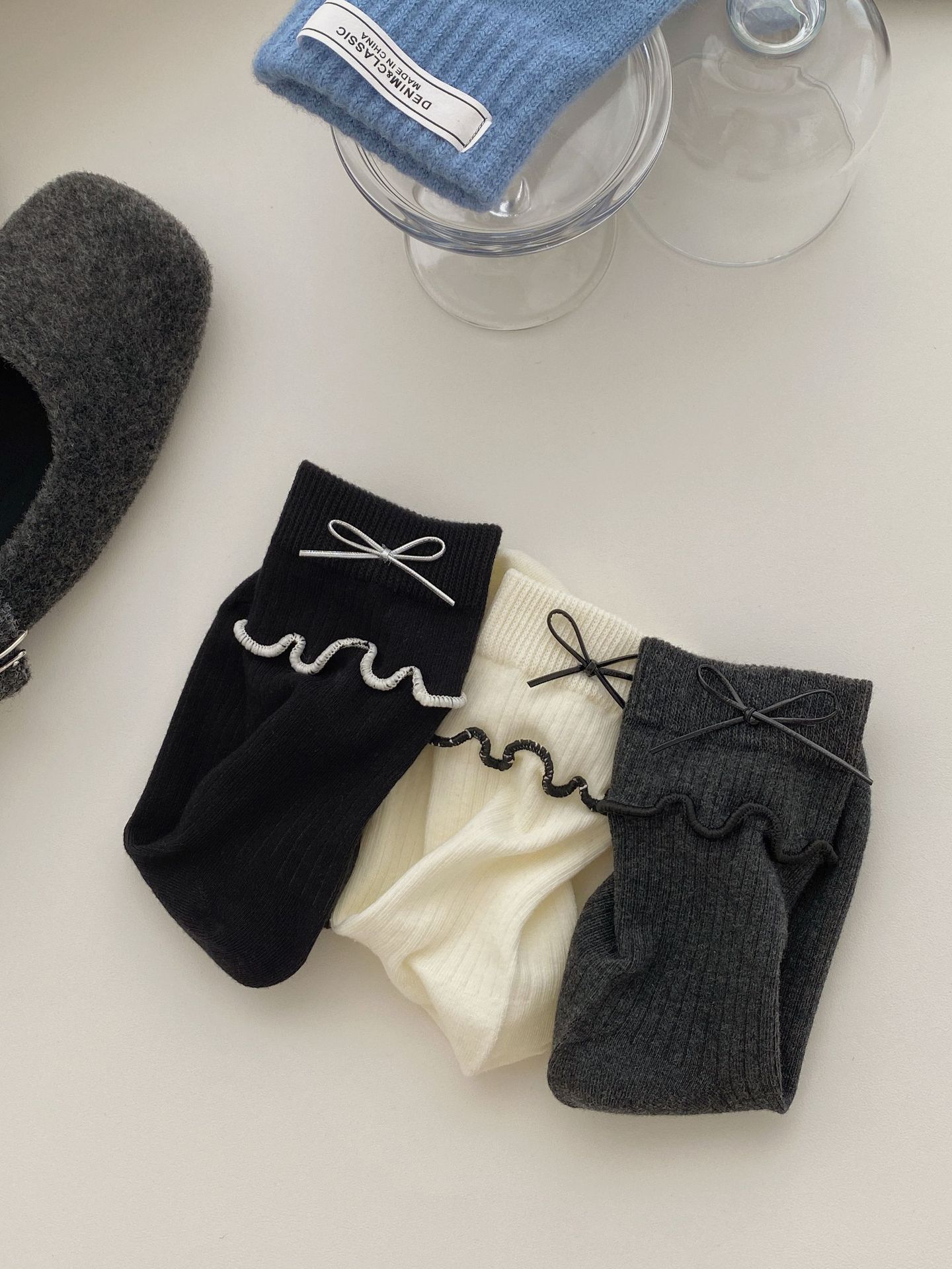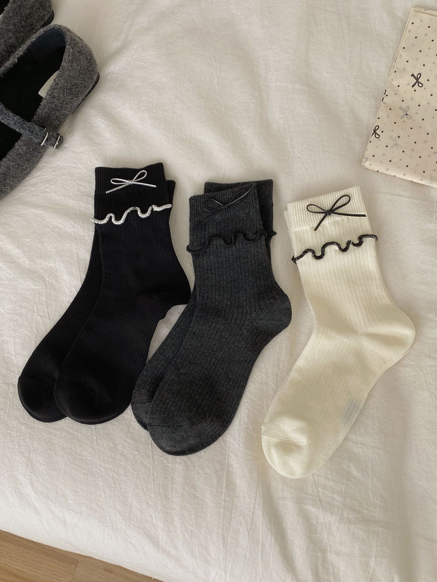 가을과 겨울 새로운 더블 바늘 단색 튜브 양말 어린이 일본 학술 스타일 파일 양말 JK 활 나무 귀 양말