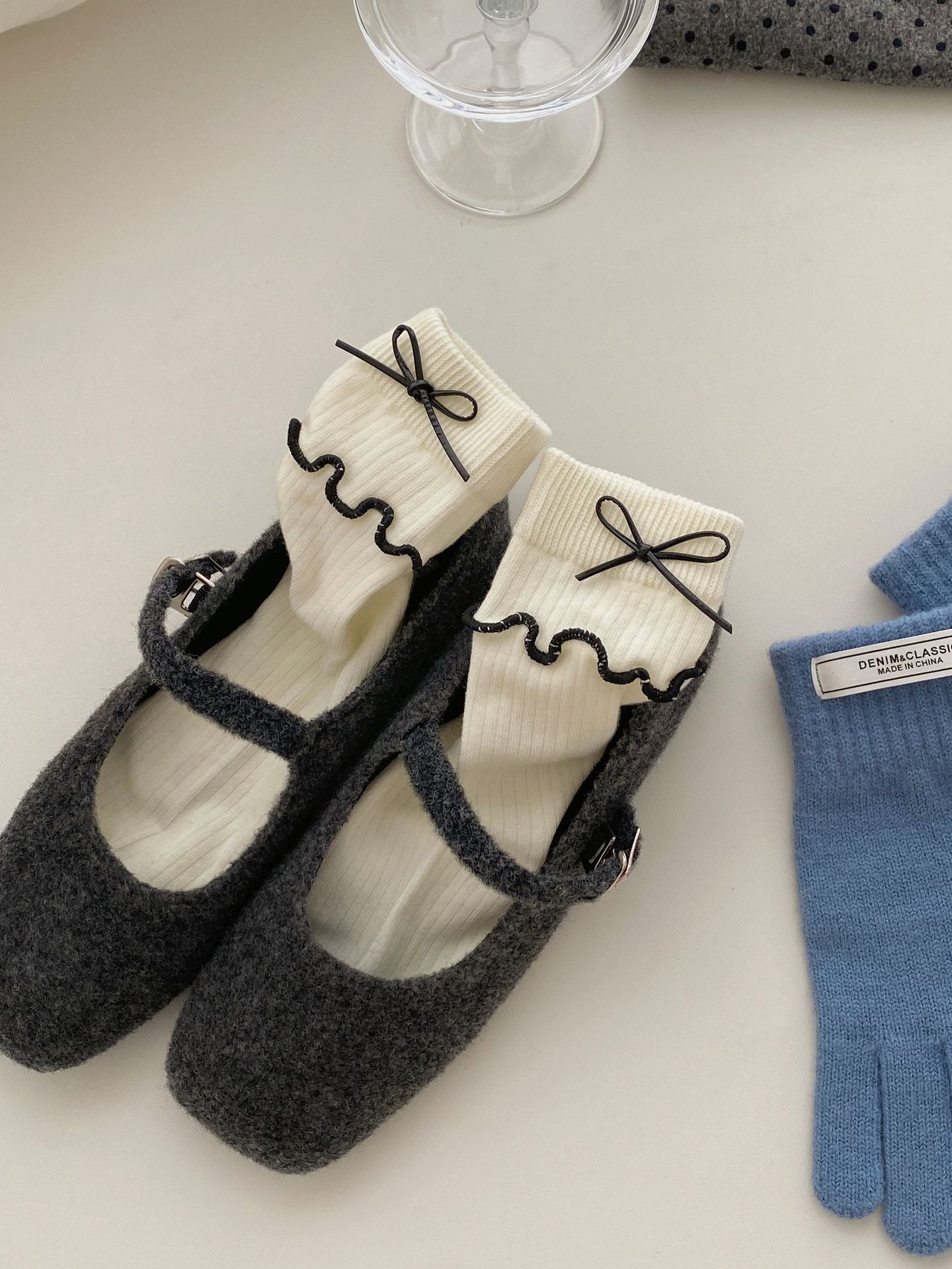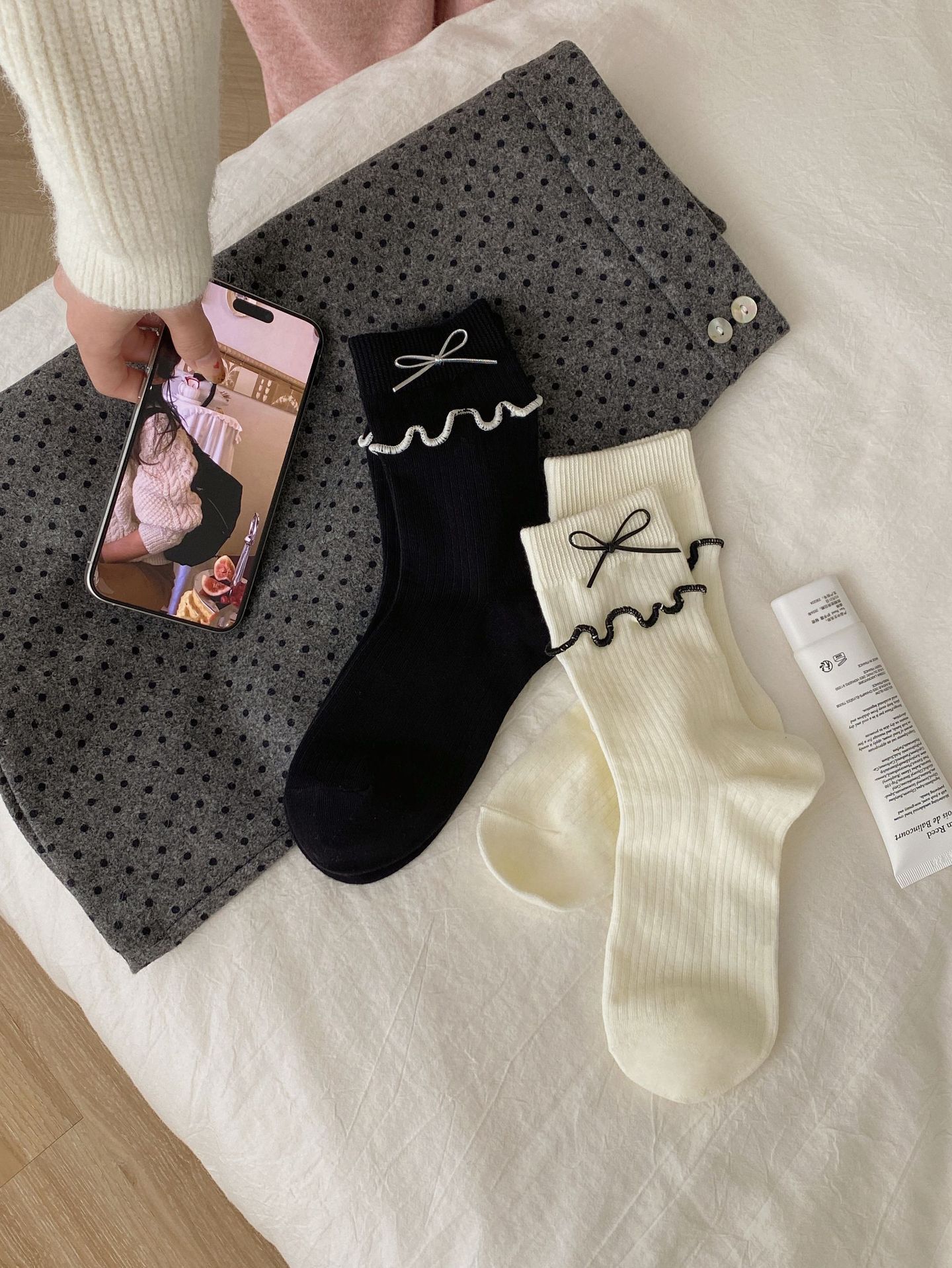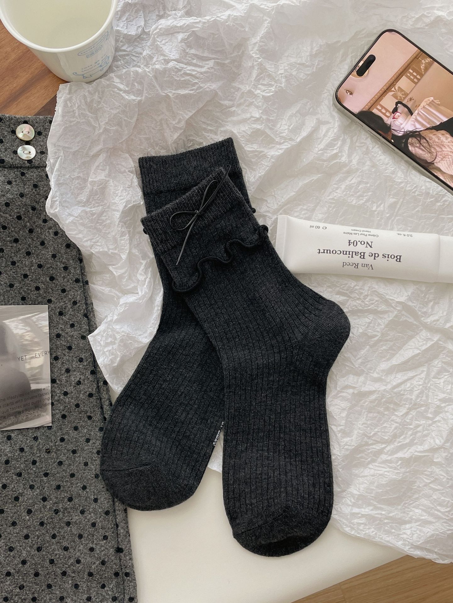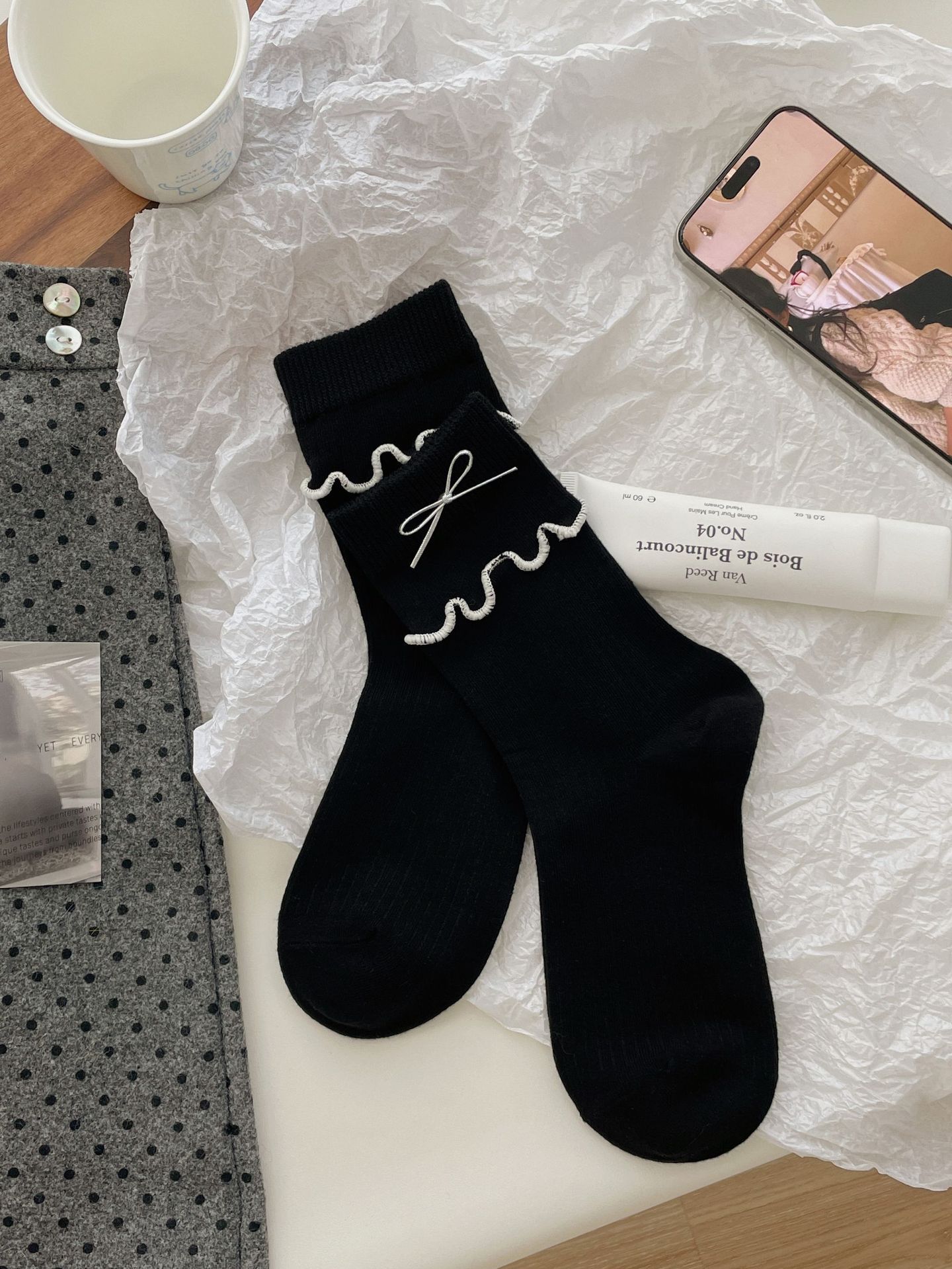 가을과 겨울 새로운 더블 바늘 단색 튜브 양말 어린이 일본 학술 스타일 파일 양말 JK 활 나무 귀 양말