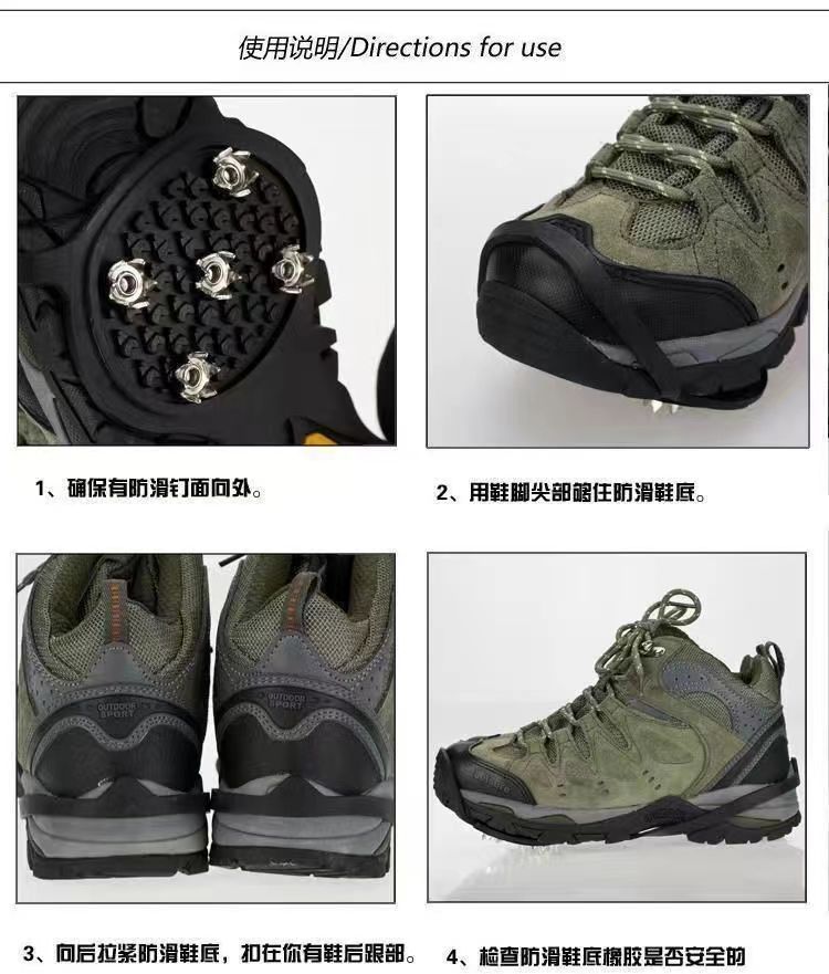 아이스 클로 미끄럼 방지 신발 커버 야외 8-치아 실리콘 신발 미끄럼 방지 커버 등산 신발 미끄럼 방지 커버 아이스 클로 공장 직접 판매스토어 가기