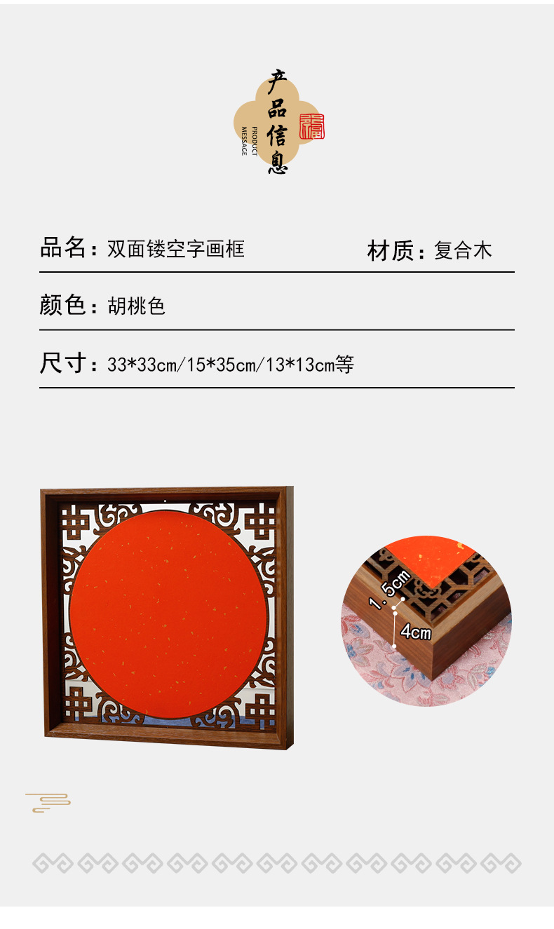 서예 프레임 서예 프레임 프레임 장착 프레임 나무 중공 조각 프레임 골드 빈 빨간색 종이 제조 업체 도매