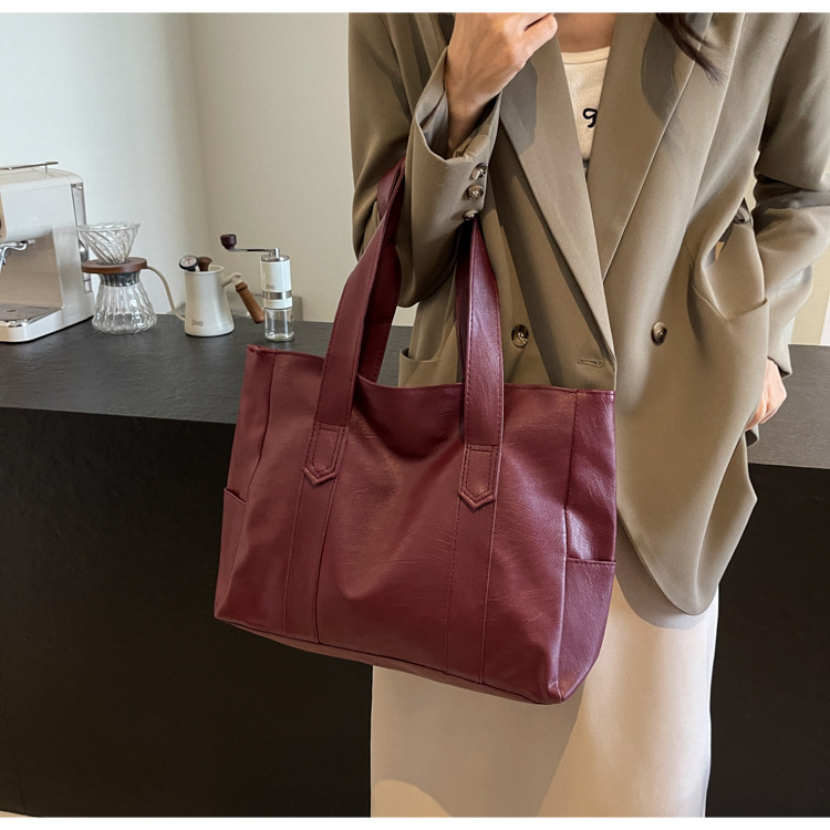 레트로 소프트 가죽 토트 백 간단한 올 매치 패션 숄더 백 크로스 보더 라이트 럭셔리 고급 대용량 통근 핸드백