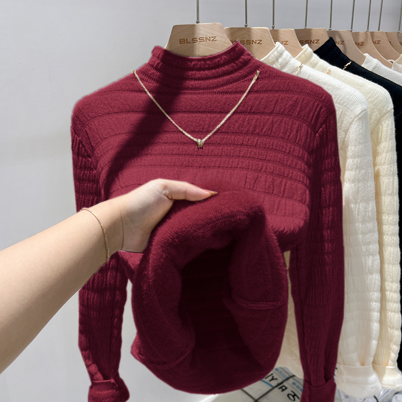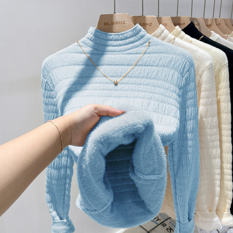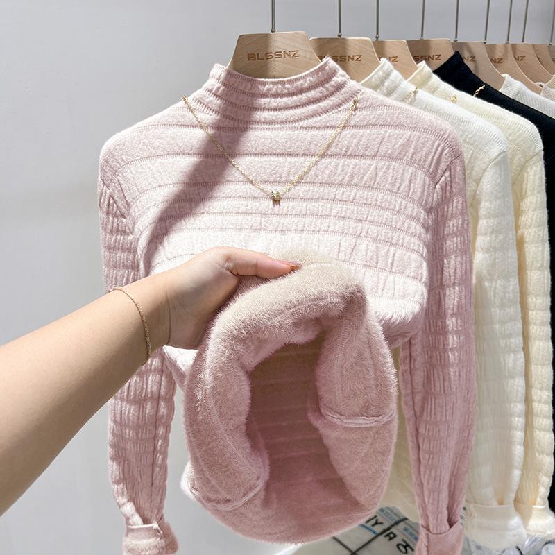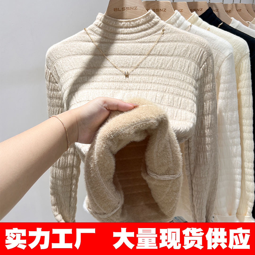 2025년 가을 겨울 여성을 위한 올인원 벨벳 원단 밍크 벨벳 스웨터 새로운 하프 터틀넥 플러스 벨벳 니트 바닥 셔츠스토어 가기