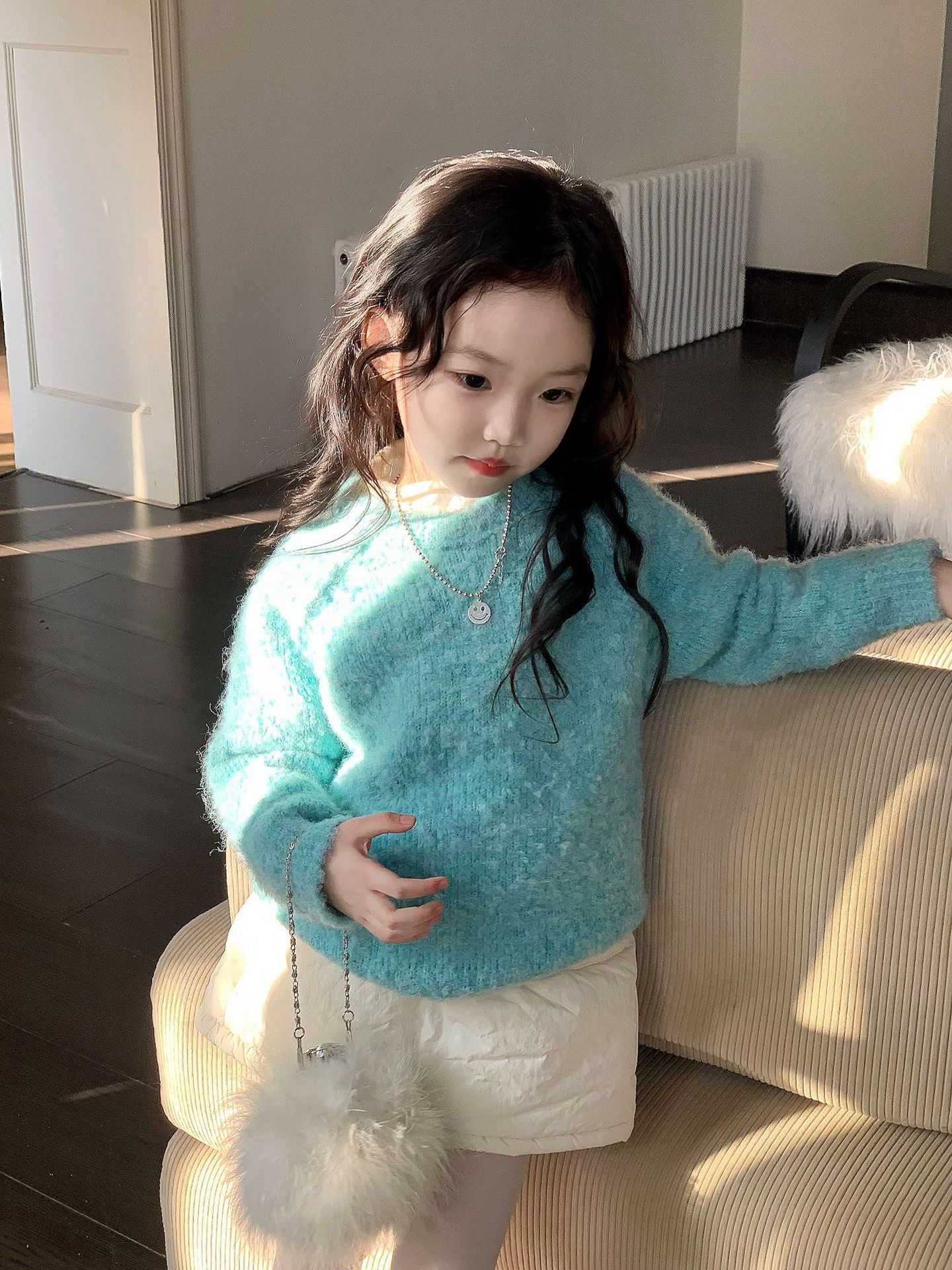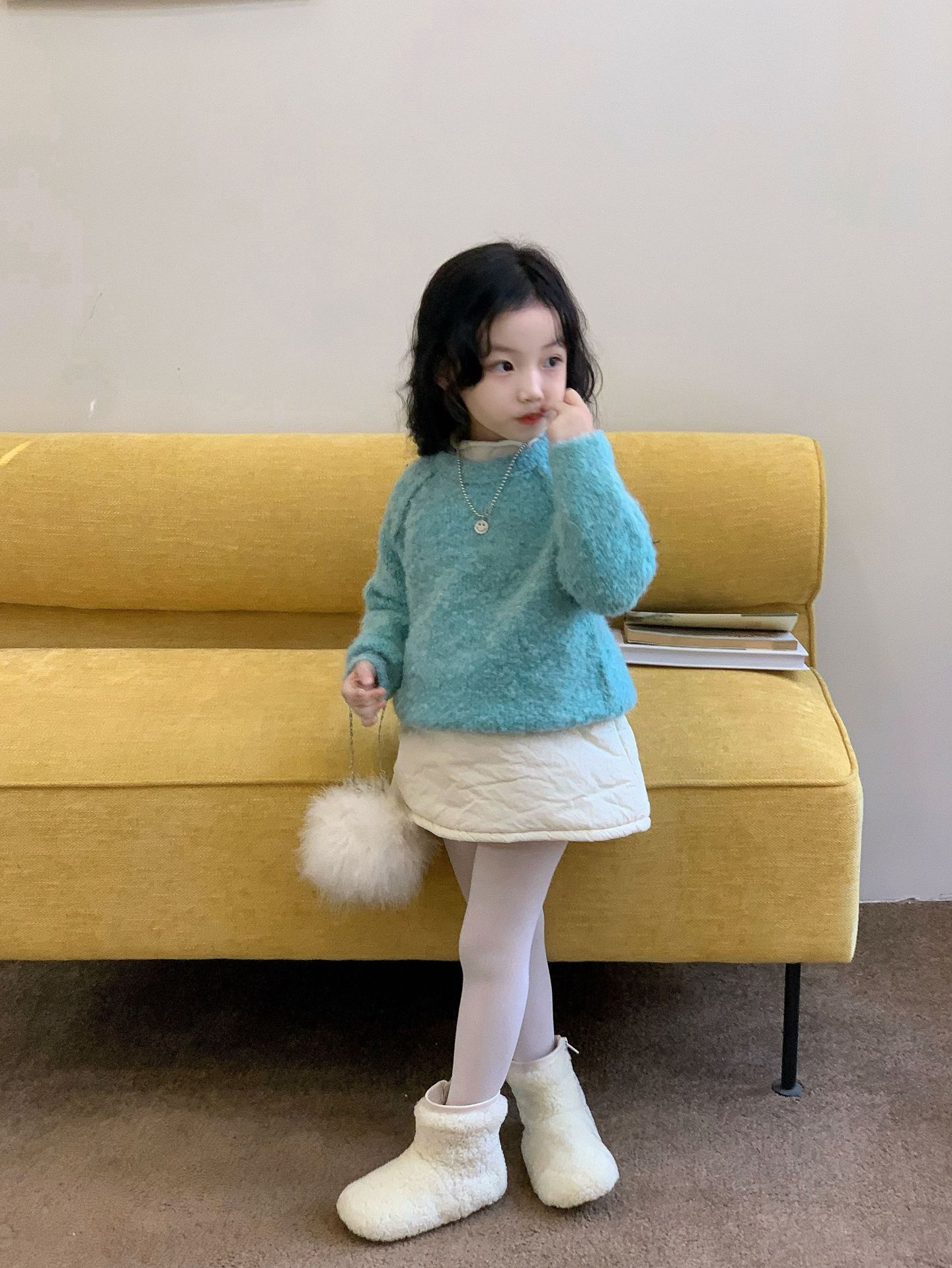 여자 짧은 치마 가을과 겨울 새로운 퀼트 스커트 한국 단색 A 라인 코튼 스커트 어린이 흰색 퀼트 쇼트 스커트스토어 가기