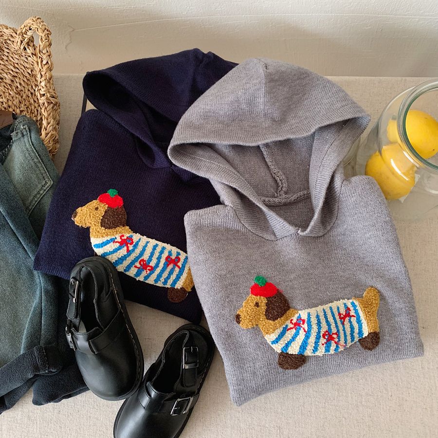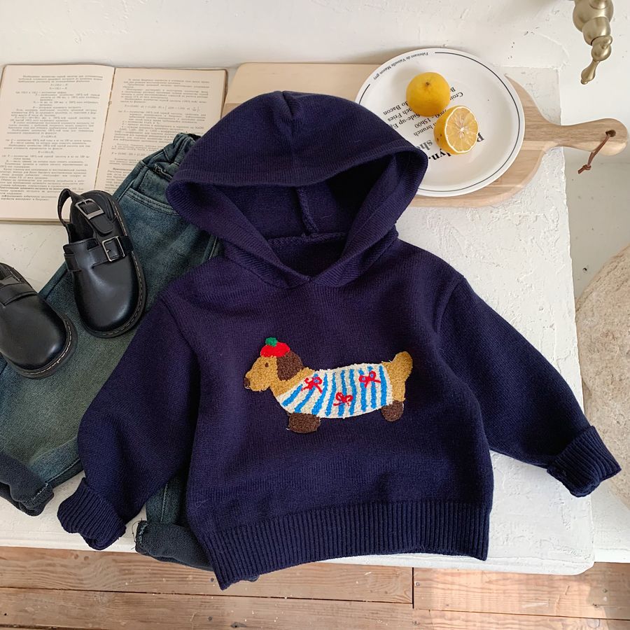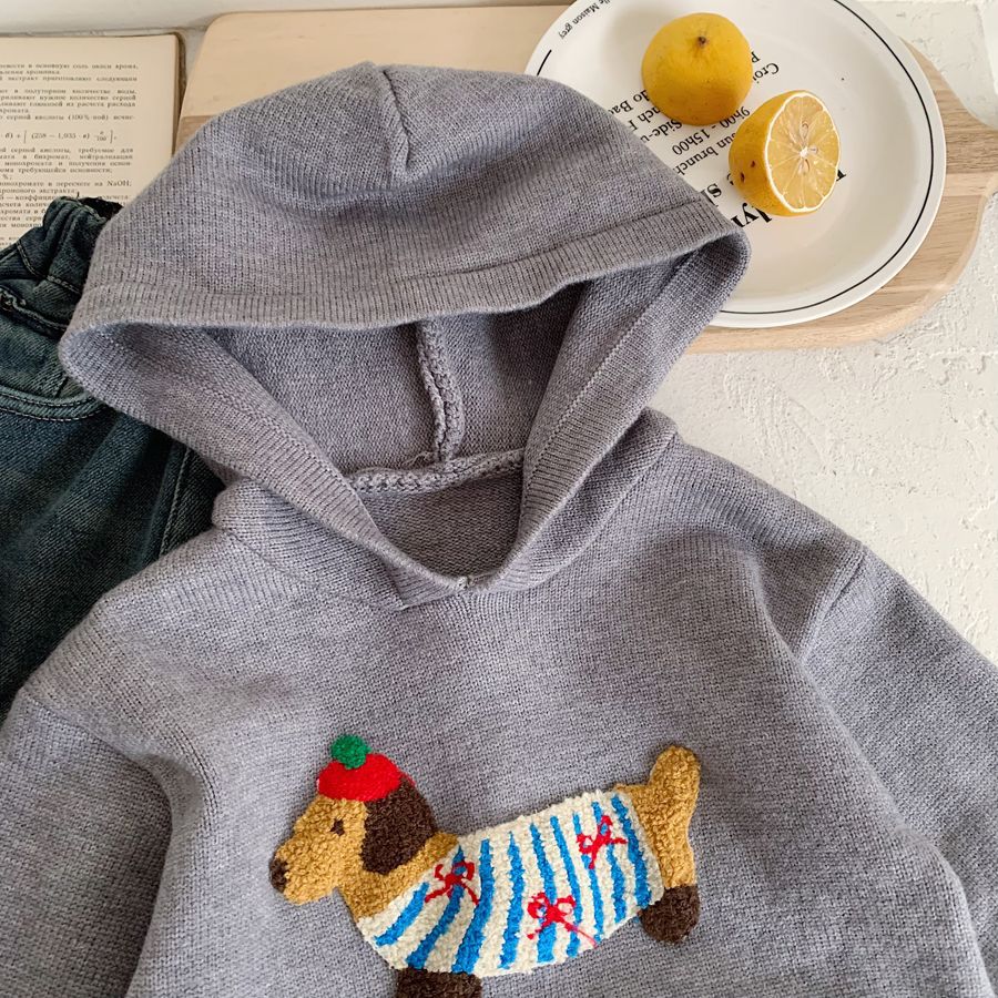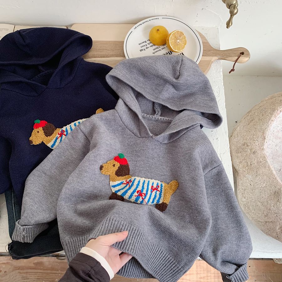 소년 한국 스웨터 2024 겨울 새 어린이 귀여운 만화 탑 아기 강아지 후드 스웨터 트렌디스토어 가기