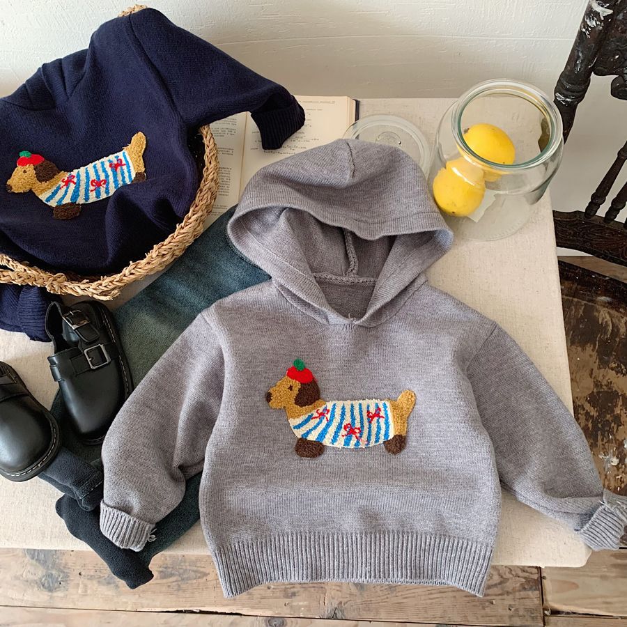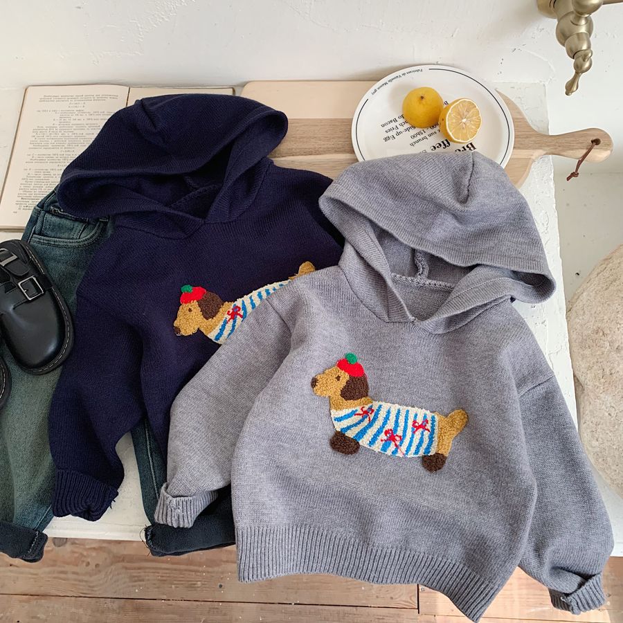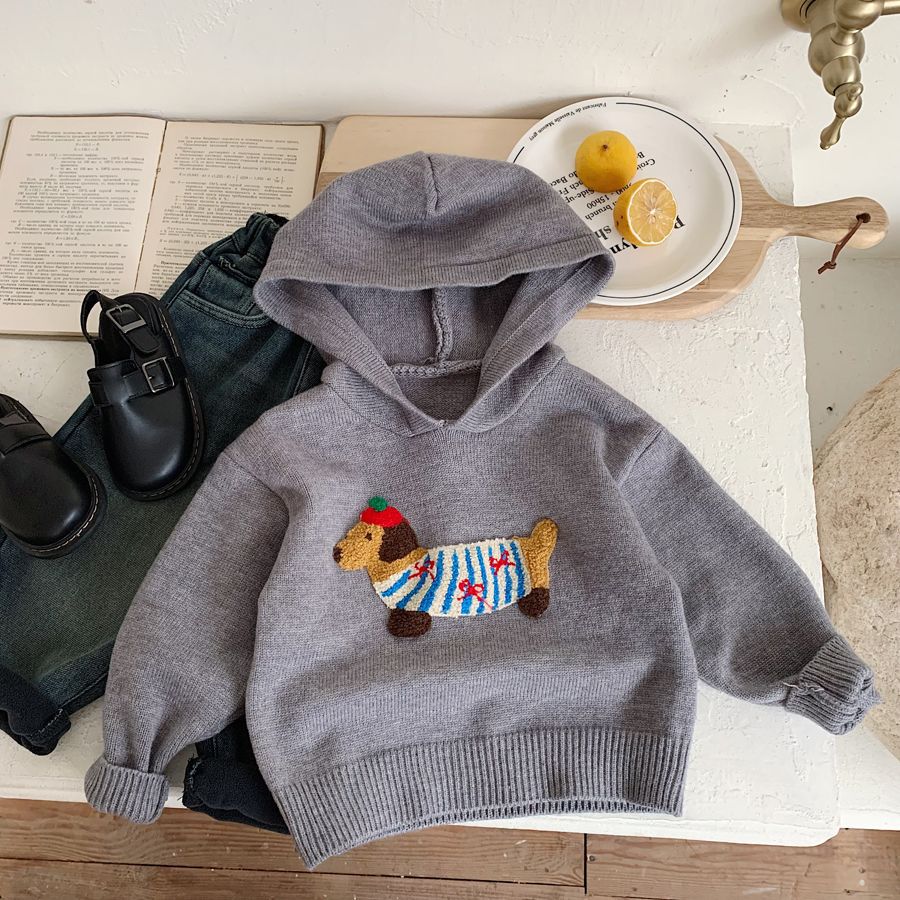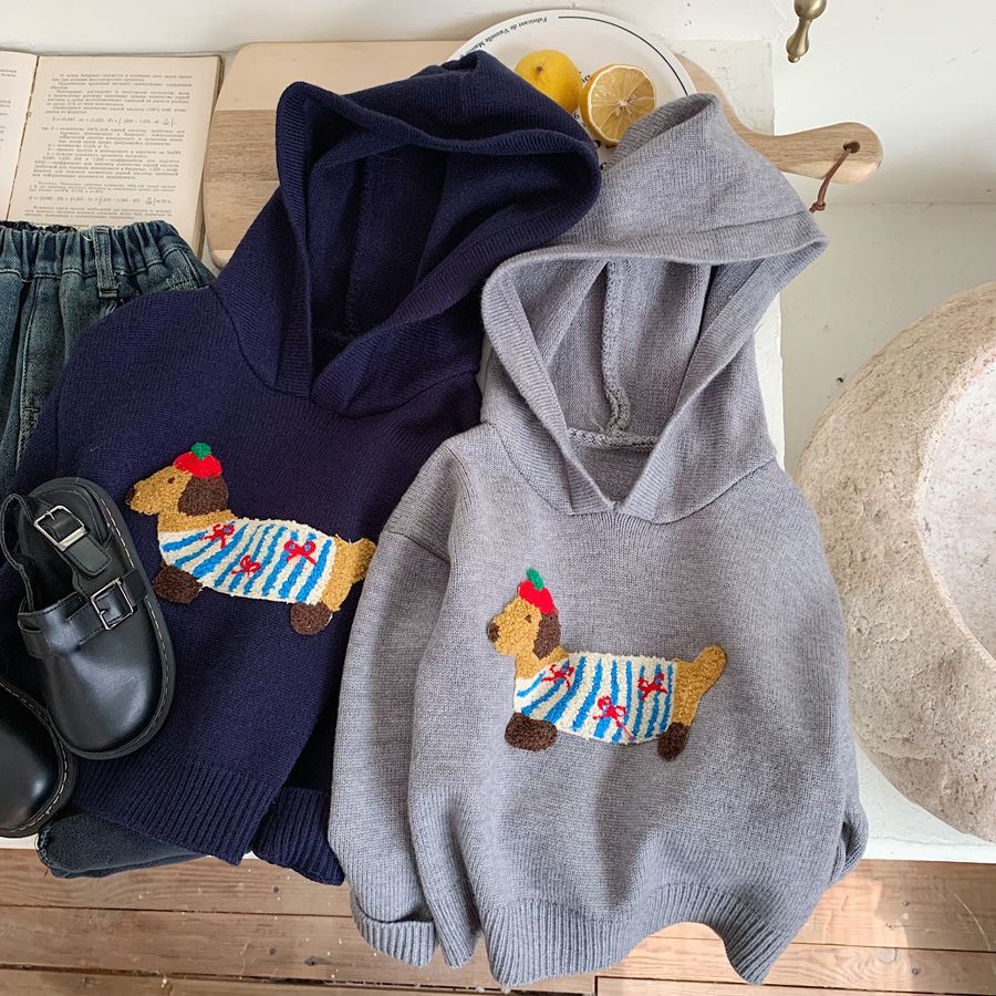 소년 한국 스웨터 2024 겨울 새 어린이 귀여운 만화 탑 아기 강아지 후드 스웨터 트렌디스토어 가기