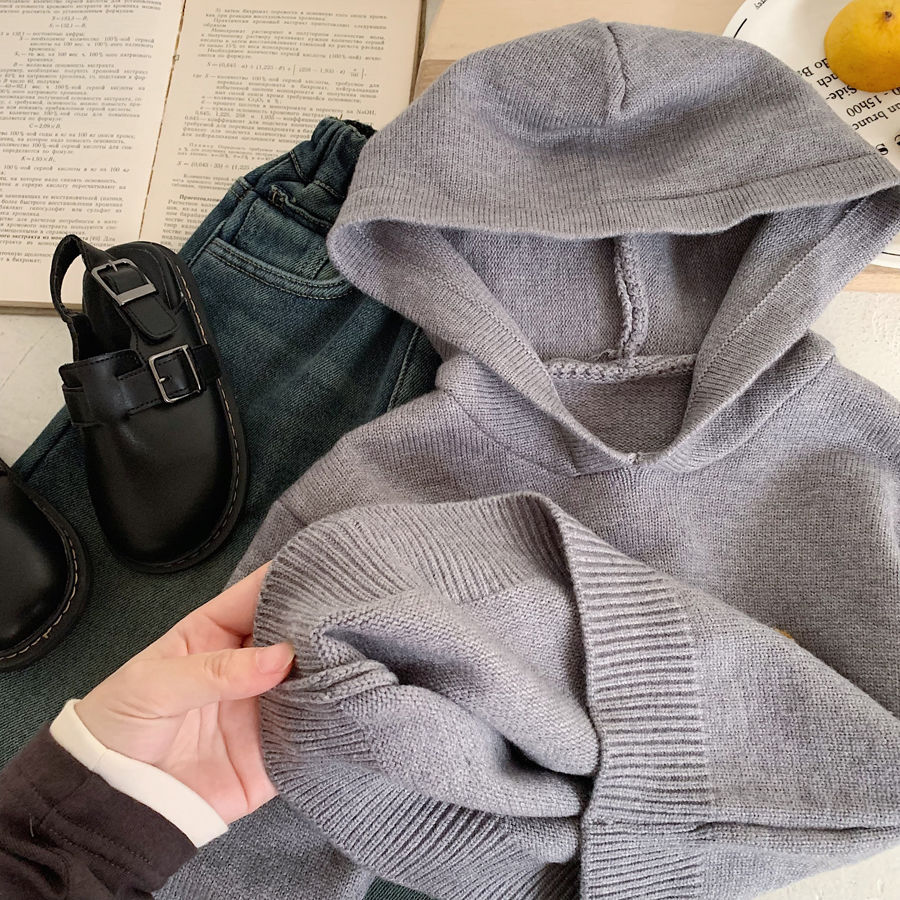 소년 한국 스웨터 2024 겨울 새 어린이 귀여운 만화 탑 아기 강아지 후드 스웨터 트렌디