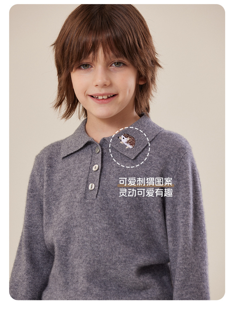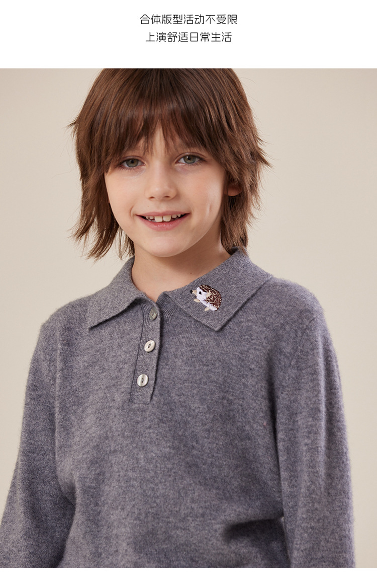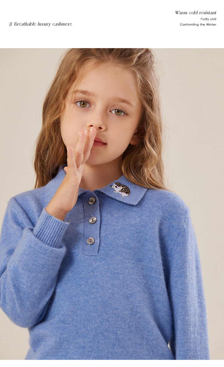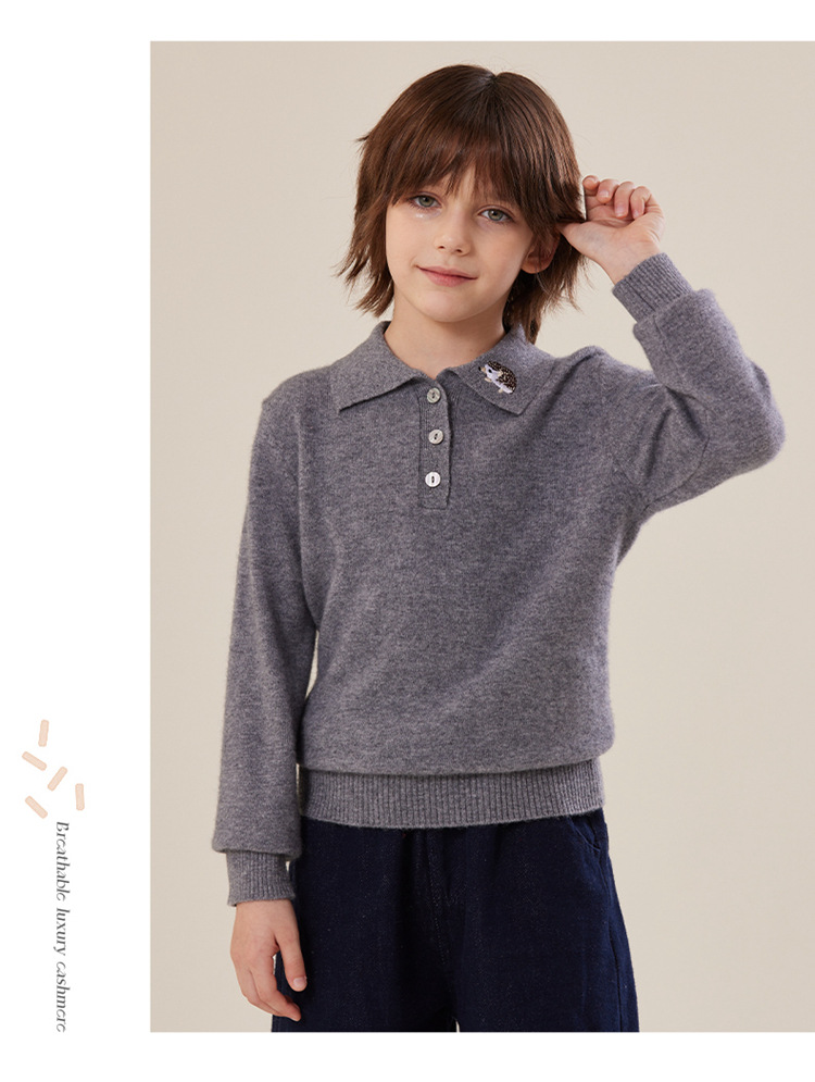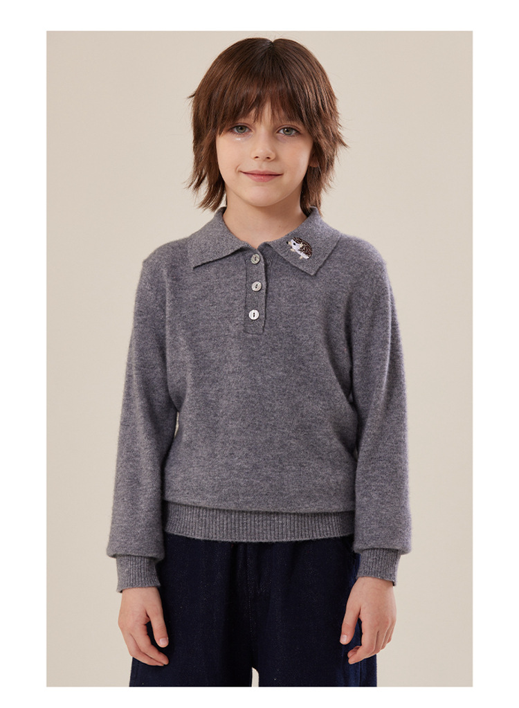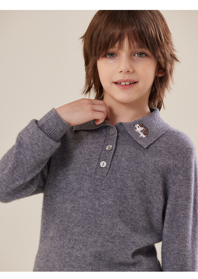 소년 소녀를위한 폴로 칼라 캐시미어 라셀 스웨터 중 큰 아이 풀오버 캐시미어 니트베이스 셔츠 귀여운 헤지호그 자수