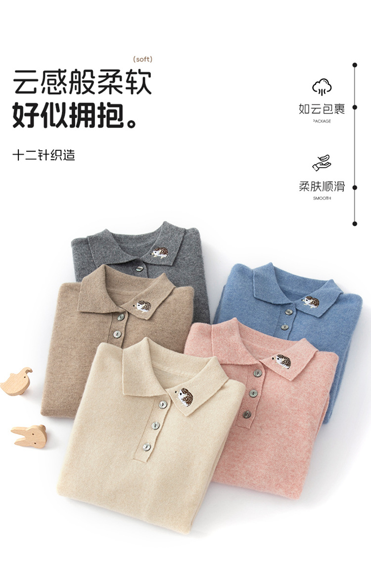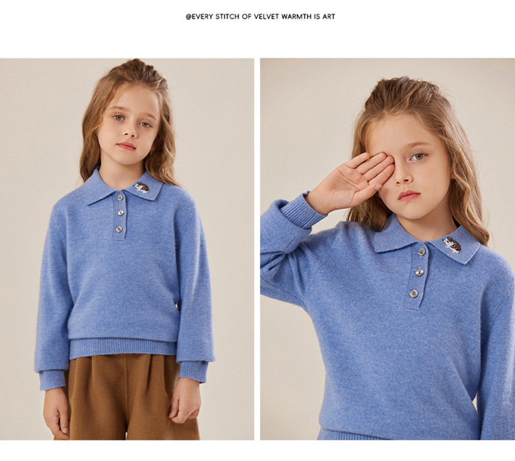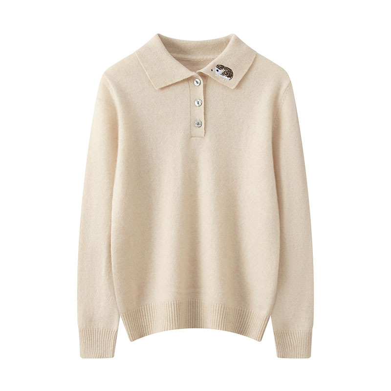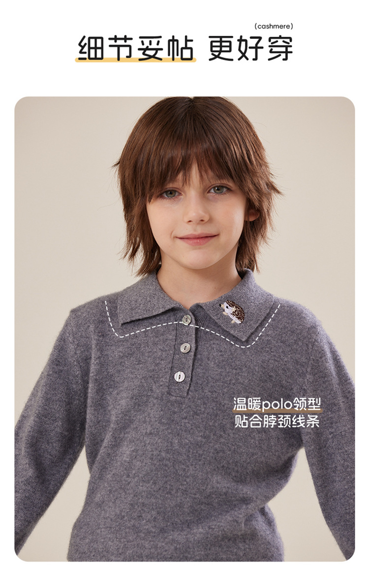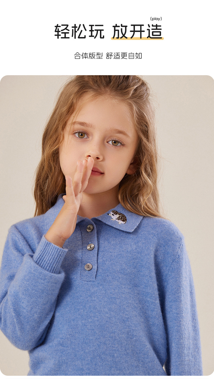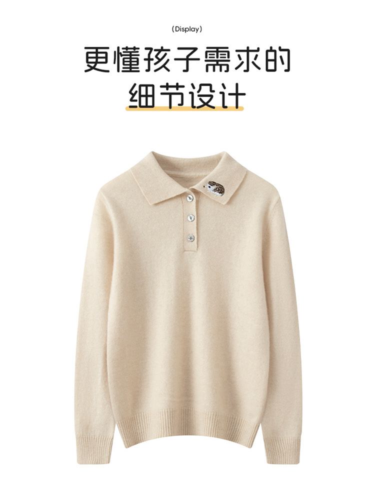 소년 소녀를위한 폴로 칼라 캐시미어 라셀 스웨터 중 큰 아이 풀오버 캐시미어 니트베이스 셔츠 귀여운 헤지호그 자수