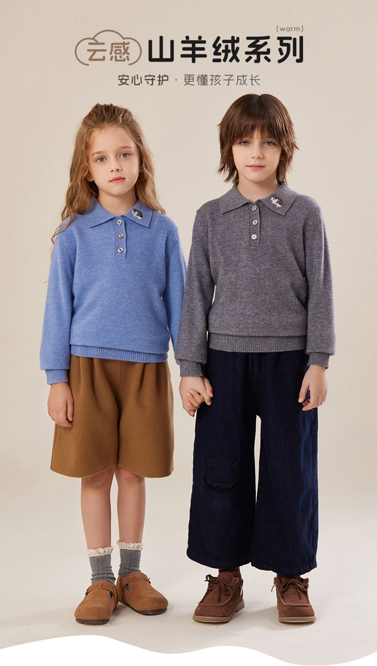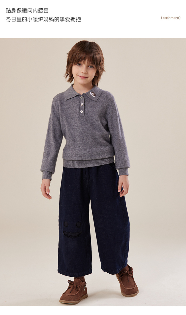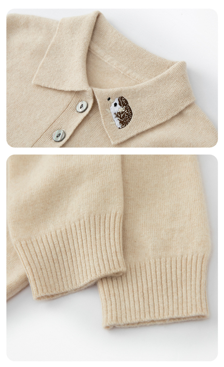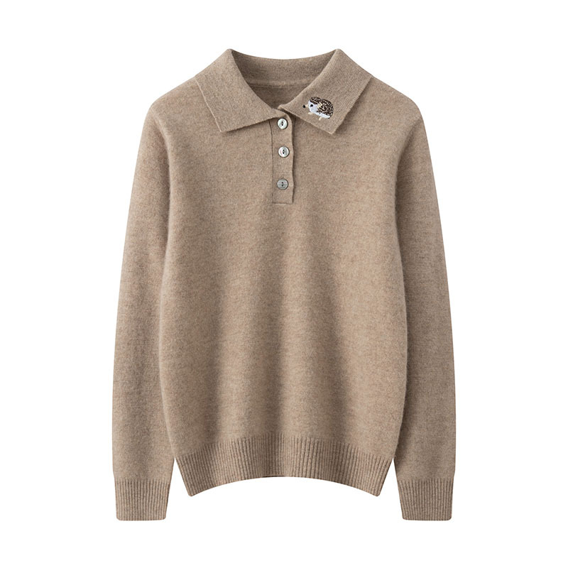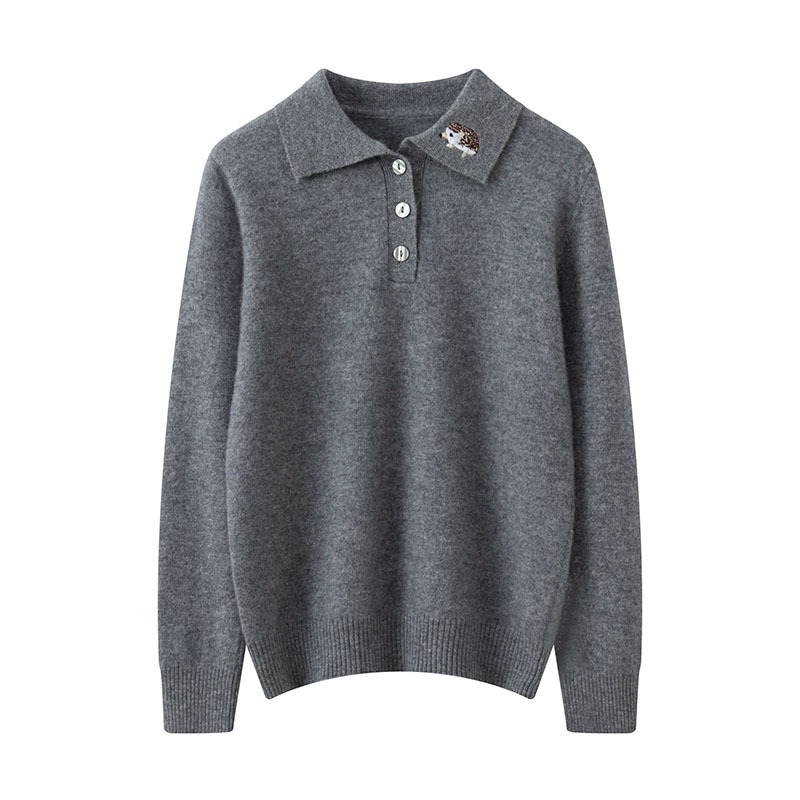소년 소녀를위한 폴로 칼라 캐시미어 라셀 스웨터 중 큰 아이 풀오버 캐시미어 니트베이스 셔츠 귀여운 헤지호그 자수