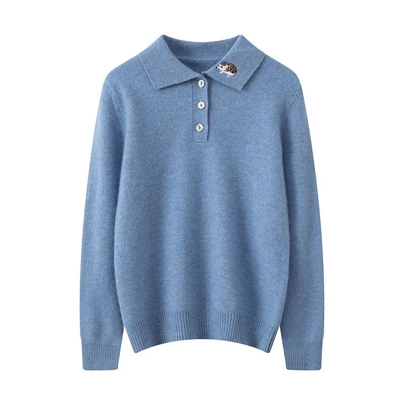 소년 소녀를위한 폴로 칼라 캐시미어 라셀 스웨터 중 큰 아이 풀오버 캐시미어 니트베이스 셔츠 귀여운 헤지호그 자수스토어 가기