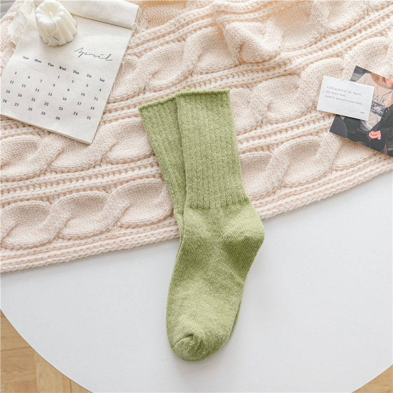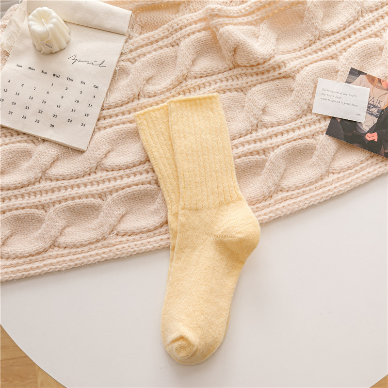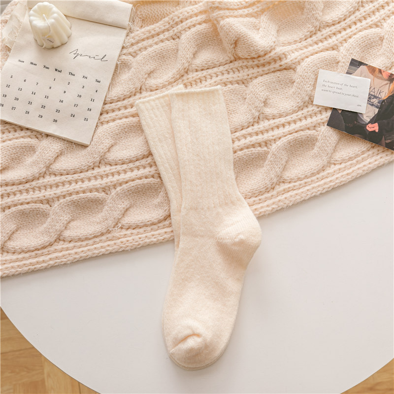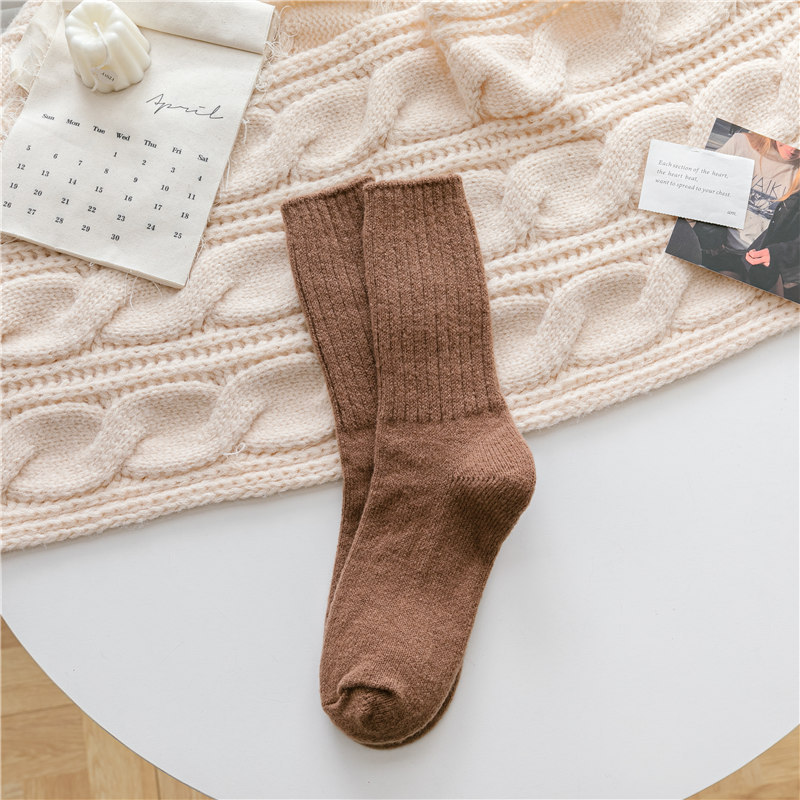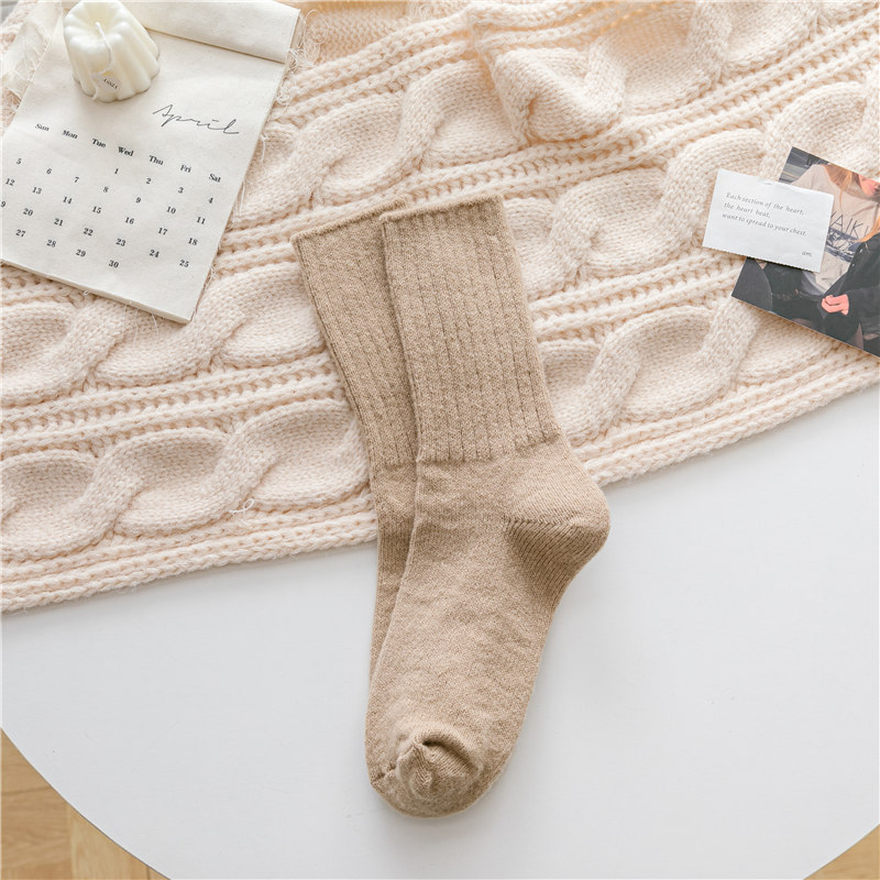[두꺼운 따뜻한 울] 봄과 가을과 겨울 양말 여성의 단색 바닥 양말 더미 양말 캐시미어 문 양말