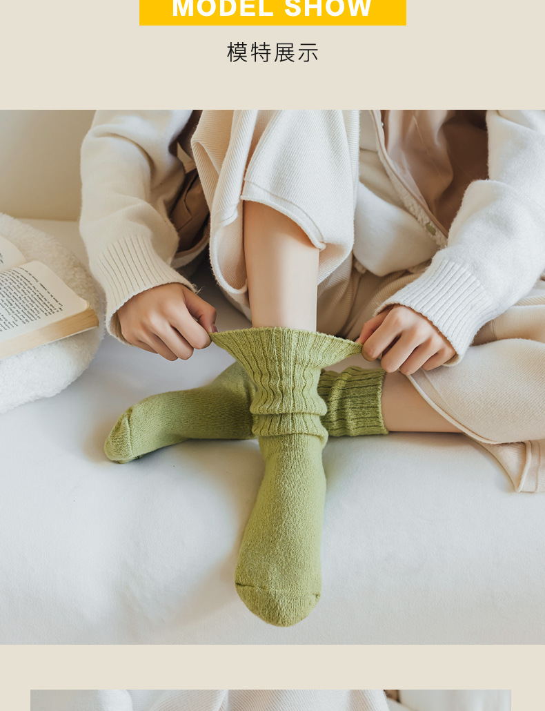 [두꺼운 따뜻한 울] 봄과 가을과 겨울 양말 여성의 단색 바닥 양말 더미 양말 캐시미어 문 양말스토어 가기
