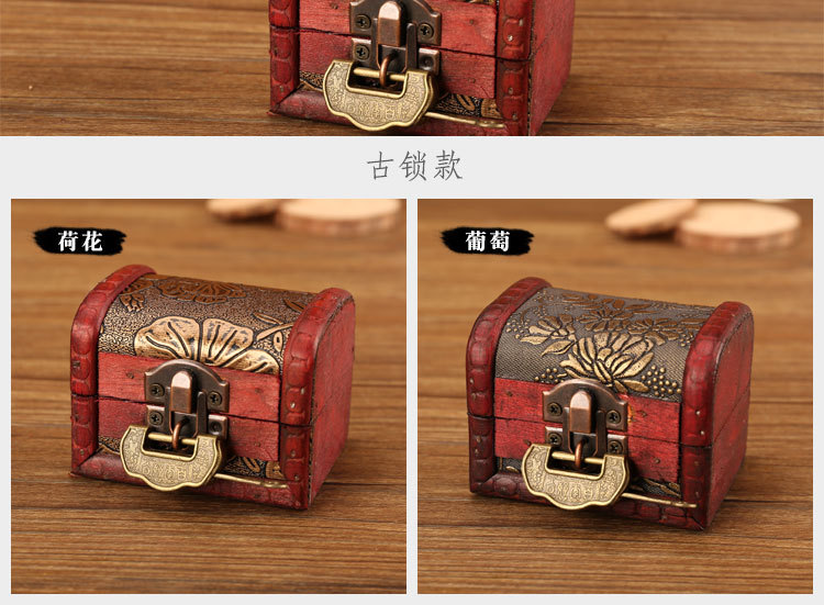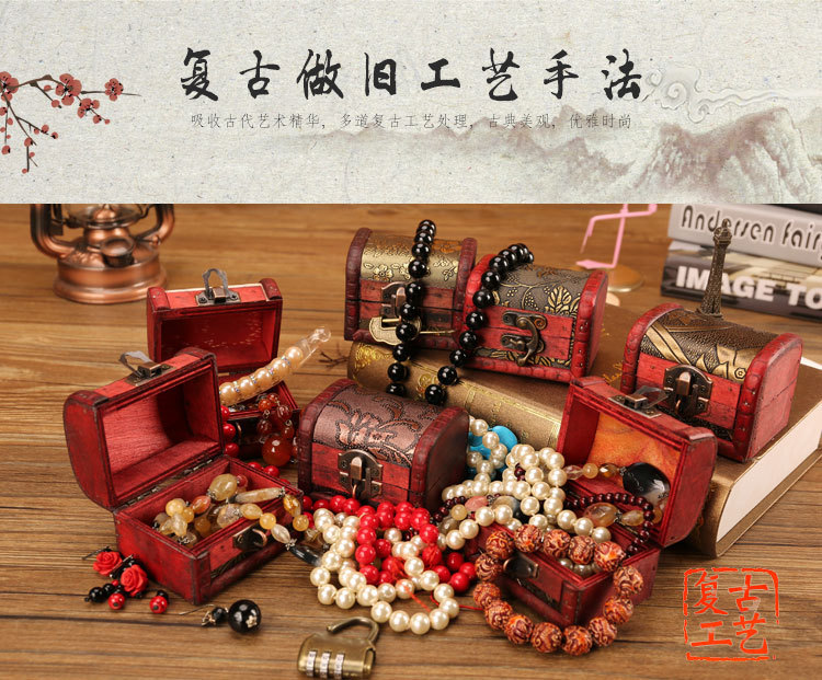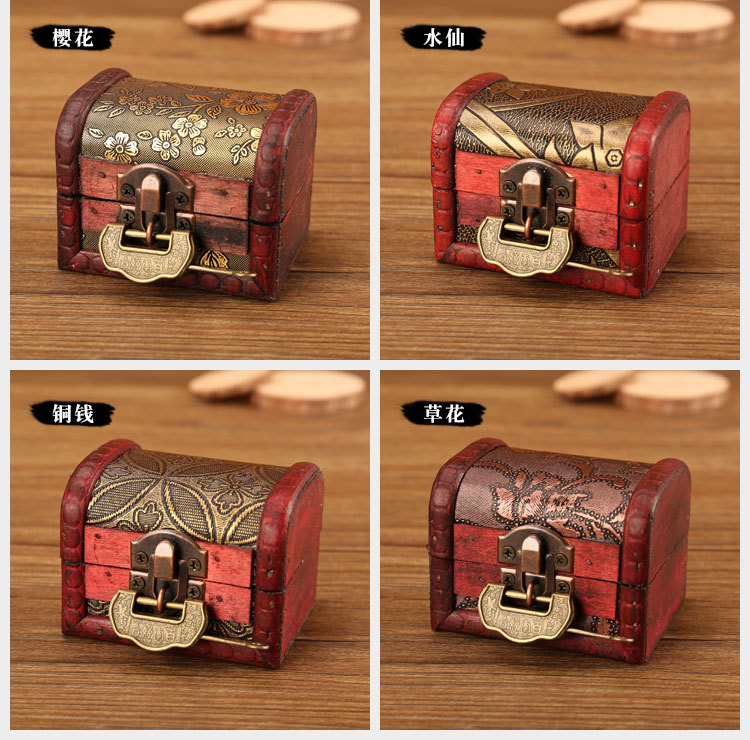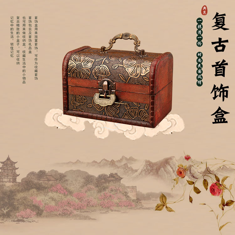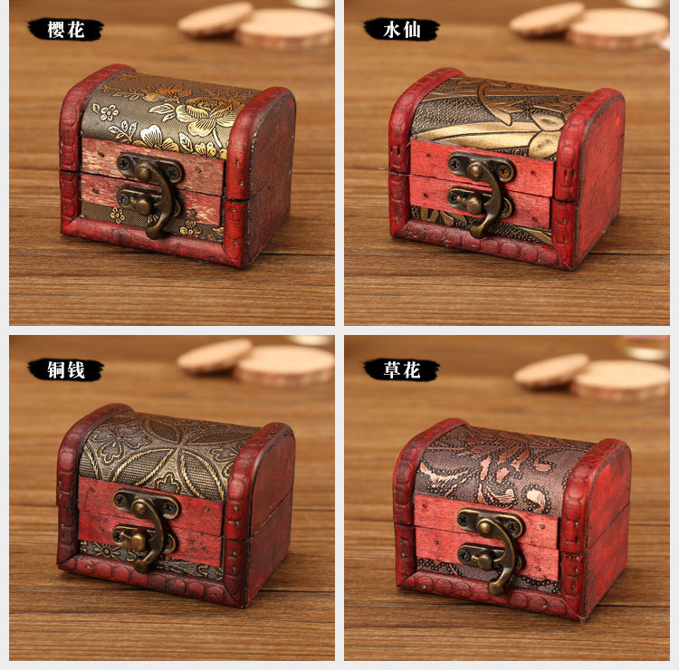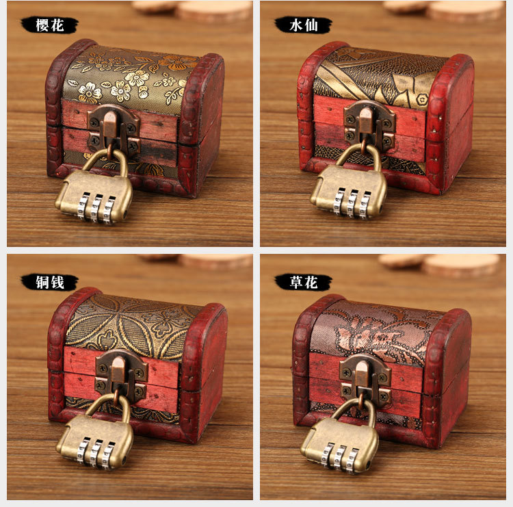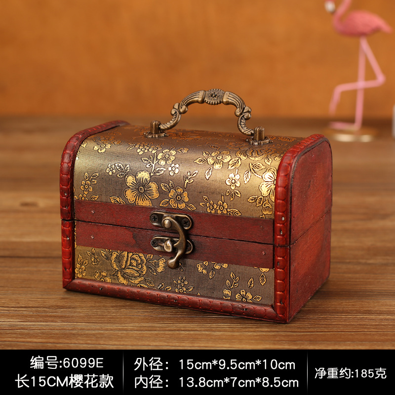 골동품 나무 보석 상자 자물쇠와 휴대용 저장 상자 복고풍 골동품 영화 소품 홈 저장 작은 나무 상자스토어 가기