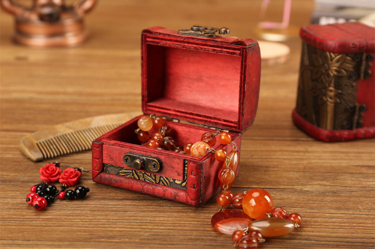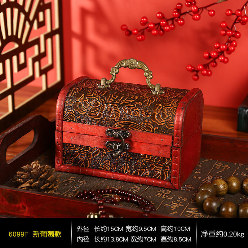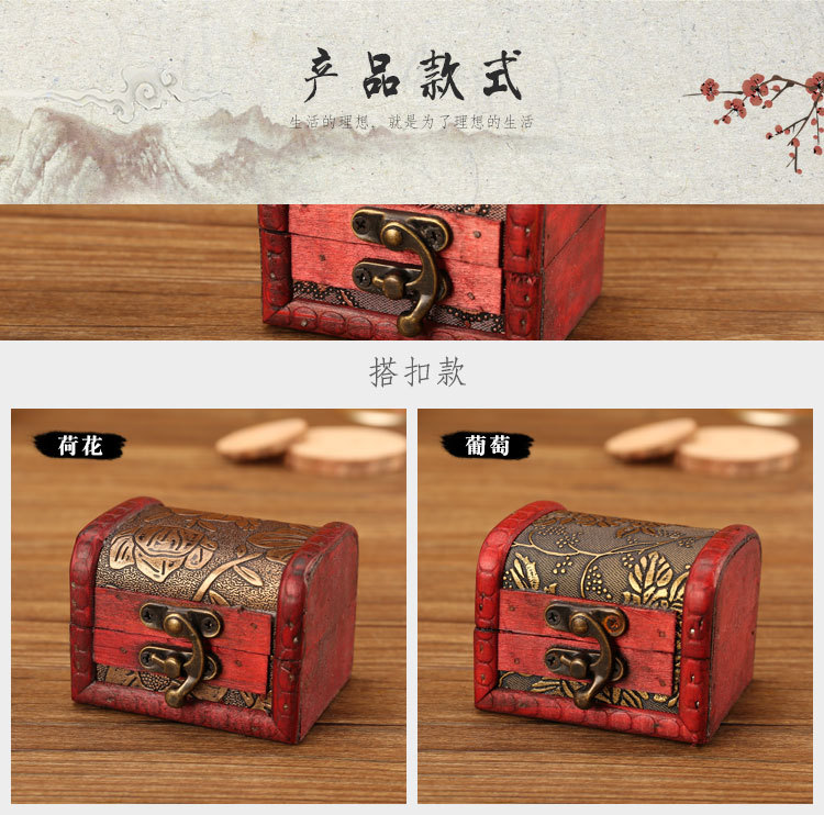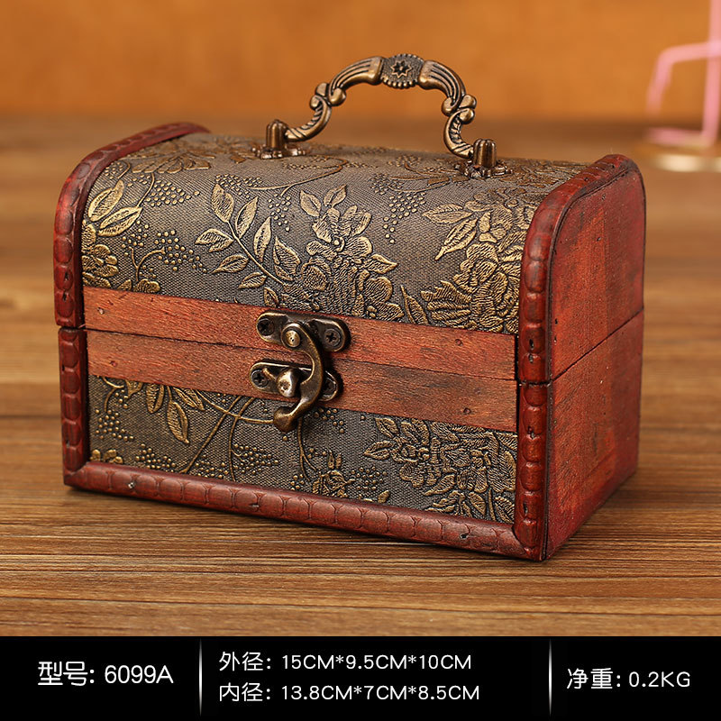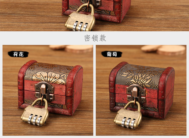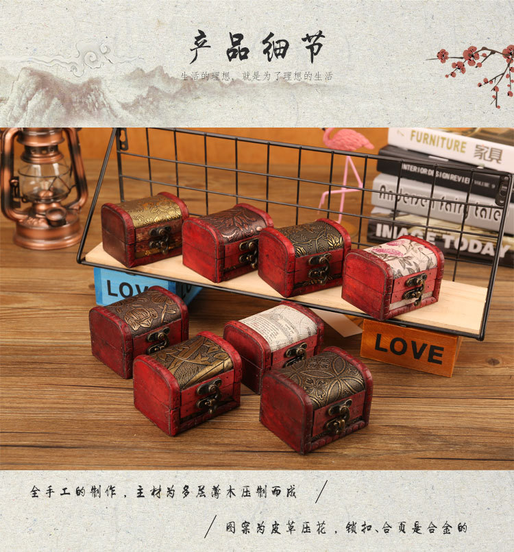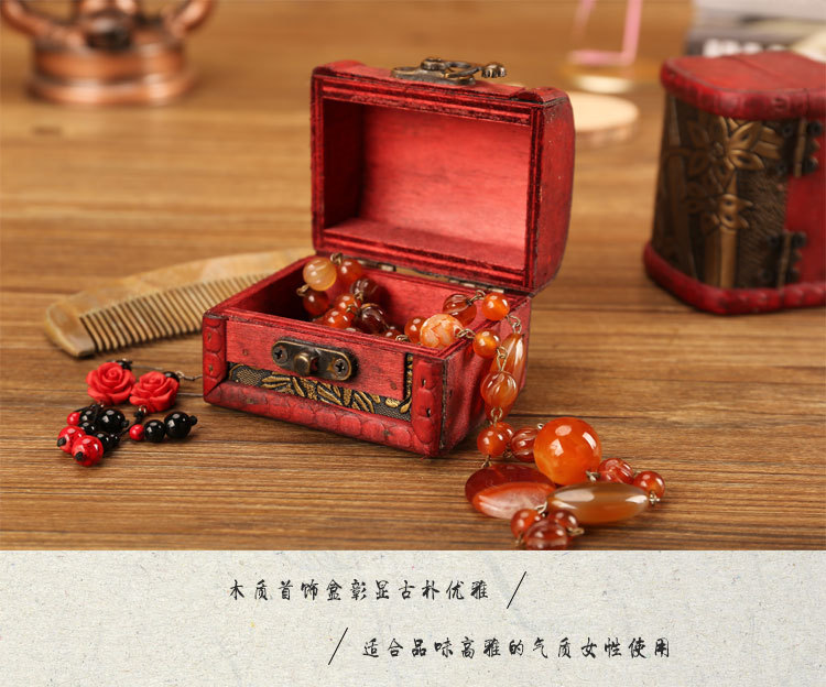 골동품 나무 보석 상자 자물쇠와 휴대용 저장 상자 복고풍 골동품 영화 소품 홈 저장 작은 나무 상자스토어 가기