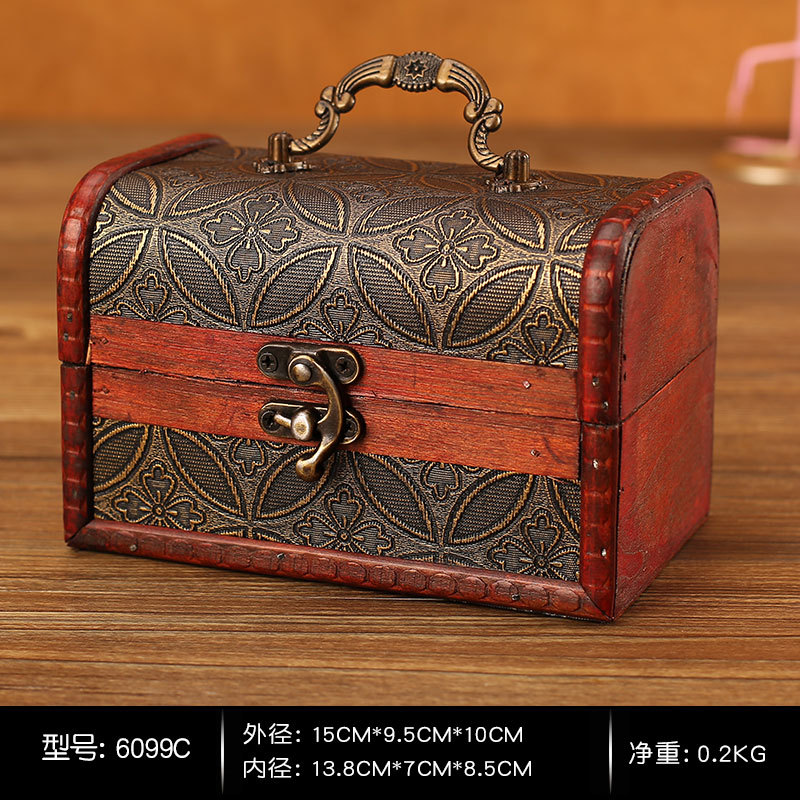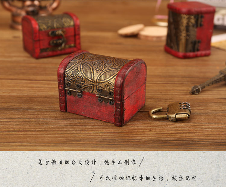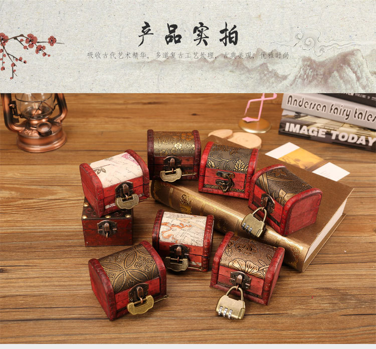 골동품 나무 보석 상자 자물쇠와 휴대용 저장 상자 복고풍 골동품 영화 소품 홈 저장 작은 나무 상자