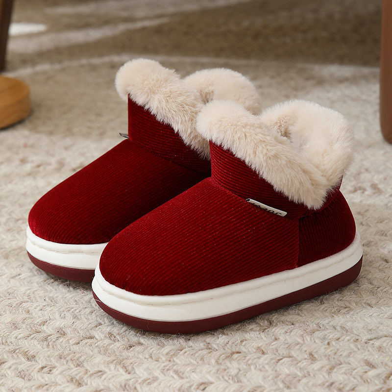 소년 소녀를위한 발 뒤꿈치가 달린 어린이 면화 슬리퍼 부모-어린이 비 슬립 겨울 실내 아기 홈 마오마오 아기 수제 면화 신발