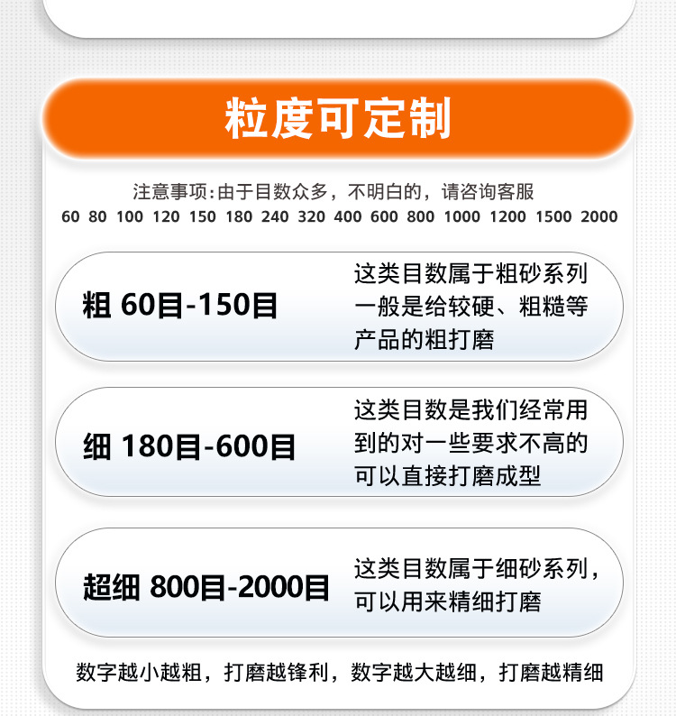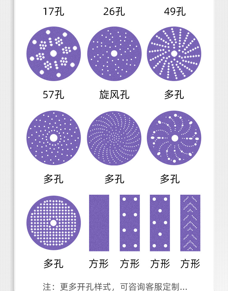 我们可以按照客户图纸或样品定制各类材质尺寸的打磨抛光产品,打样周期2-3天。还为有需要的客户提供OEM服务,包括设计独特品牌logo和包装。并持续关注客户的售后体验,让客户享受安心的产品和服务。