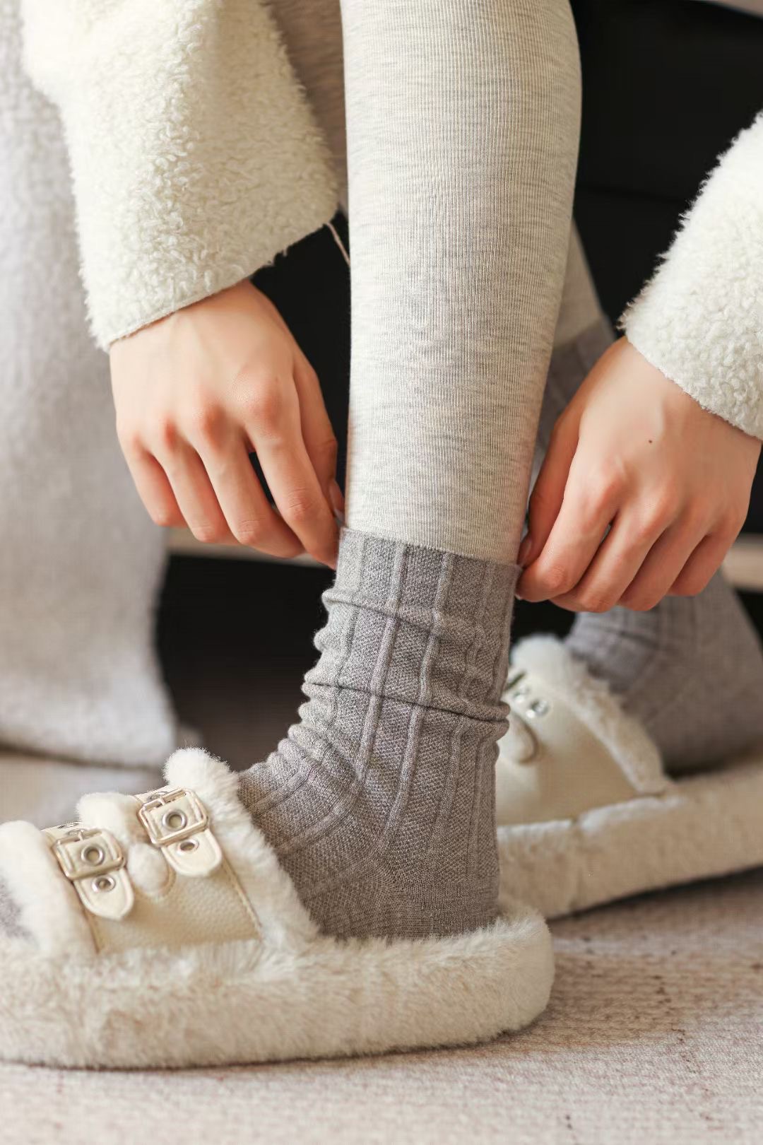 가을과 겨울 새로운 3 차원 세로 줄무늬 캐시미어 따뜻한 양말 간단한 다목적 단색 더미 양말스토어 가기
