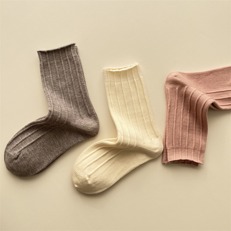 가을과 겨울 새로운 3 차원 세로 줄무늬 캐시미어 따뜻한 양말 간단한 다목적 단색 더미 양말