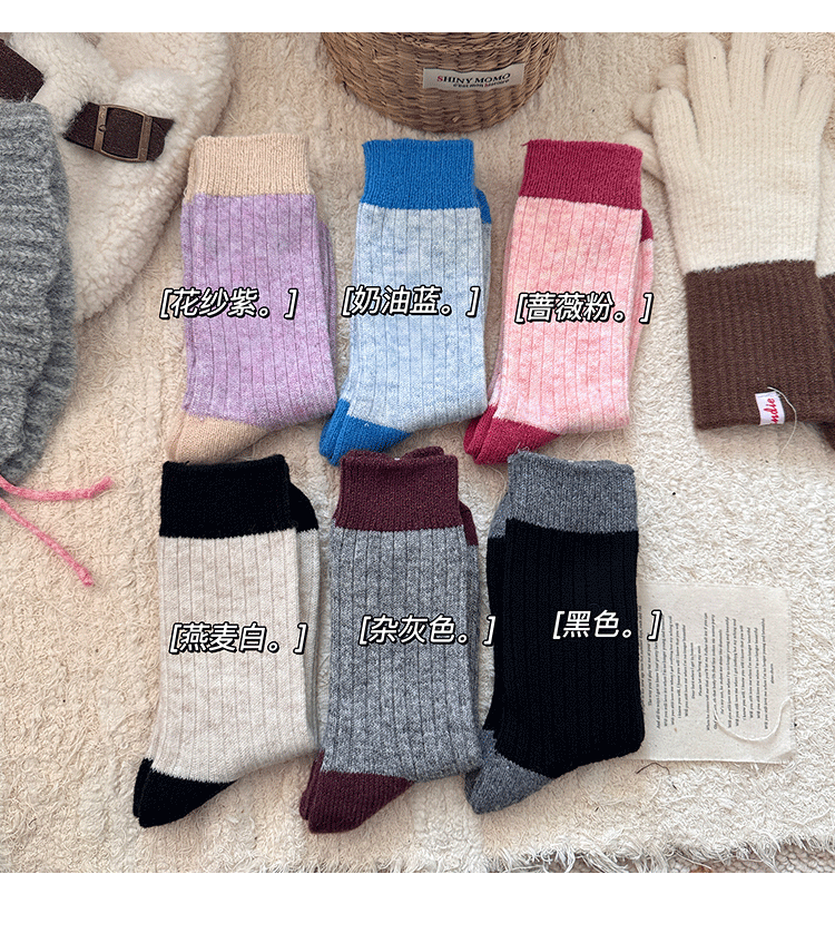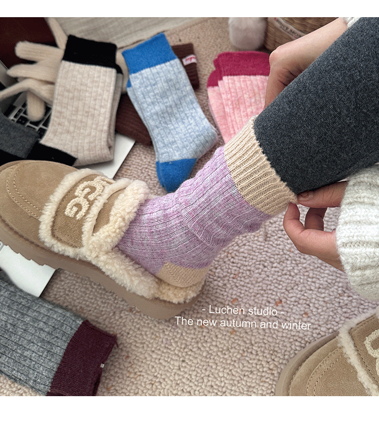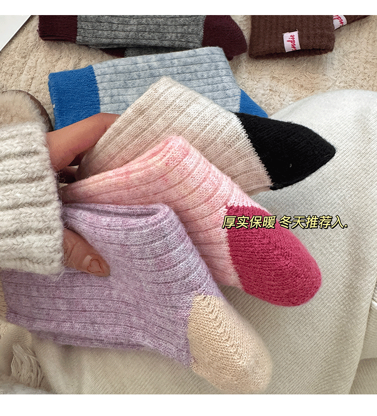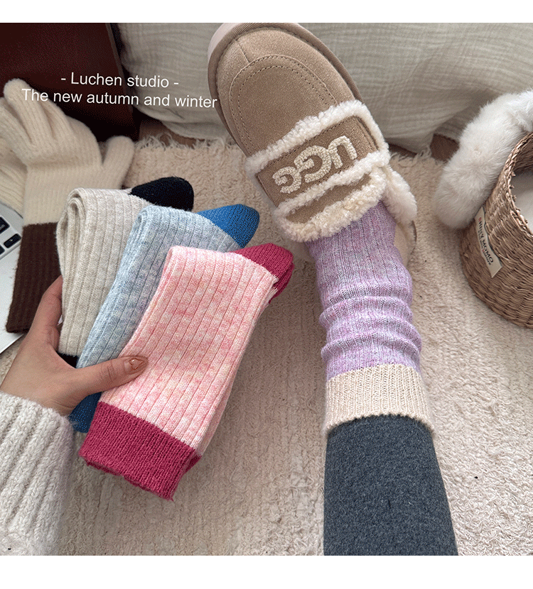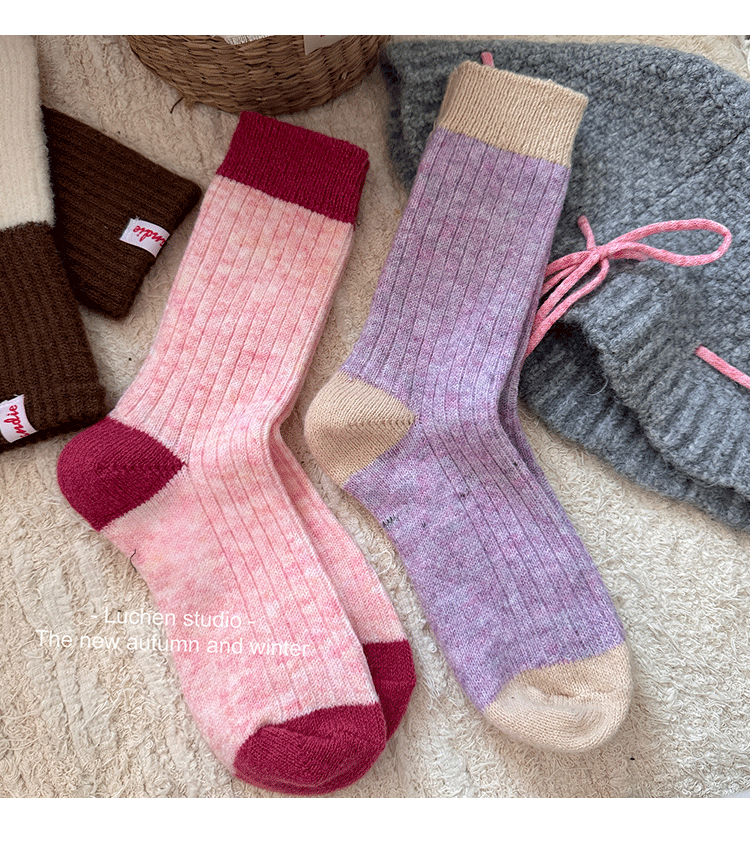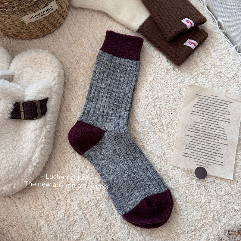겨울 도파민 "대비 색상 두꺼운 양모 양말 여성 가을과 겨울 두꺼운 따뜻한 보라색 더미 양말 여성 한국어스토어 가기