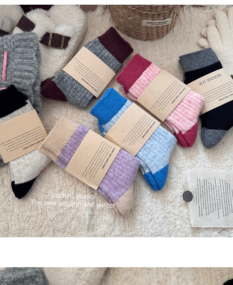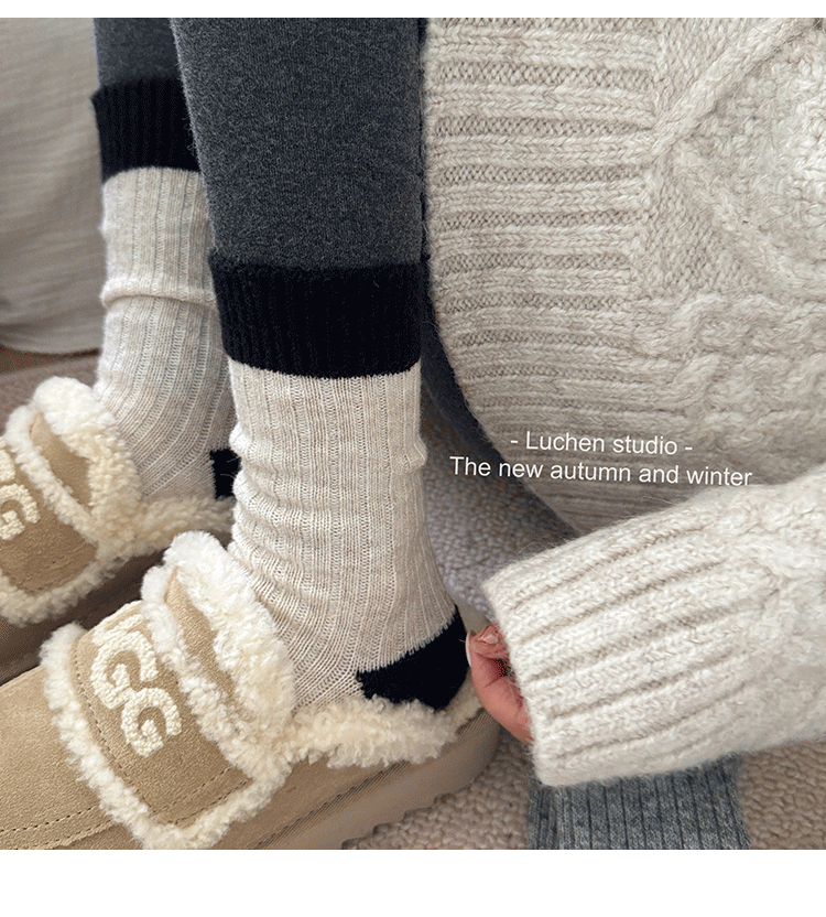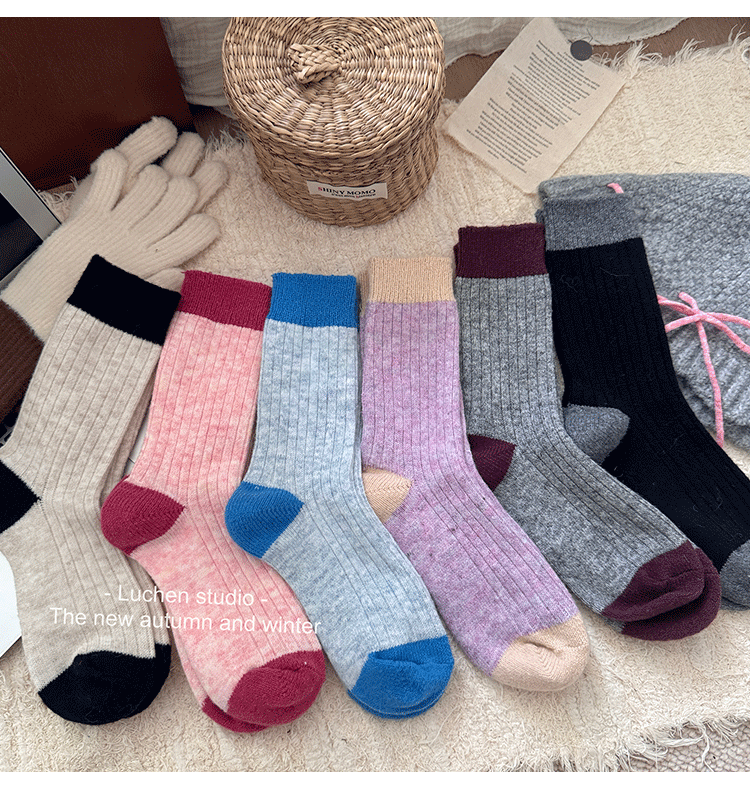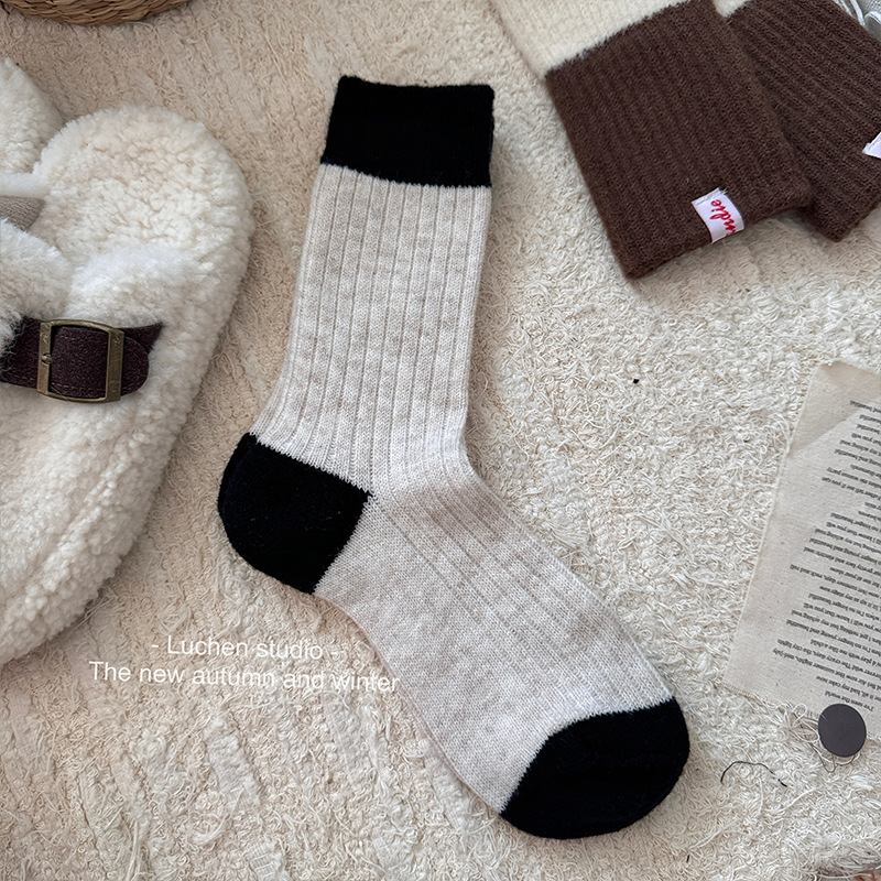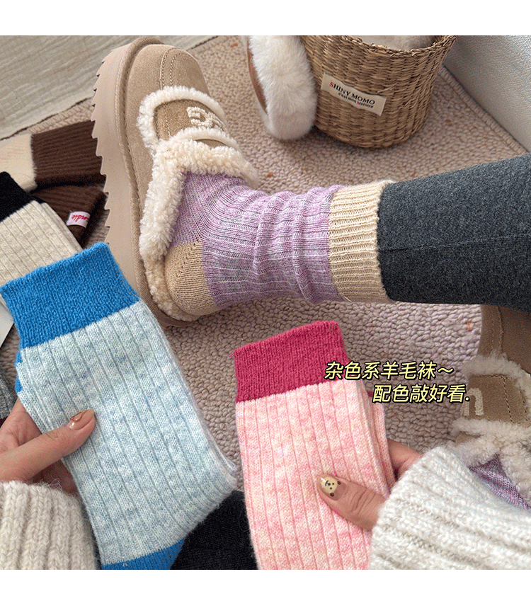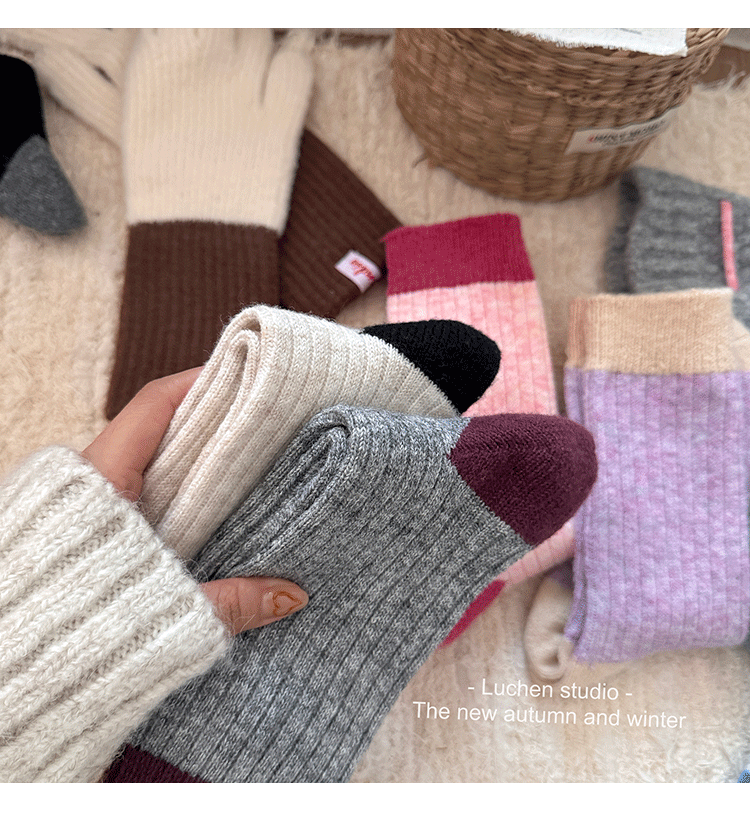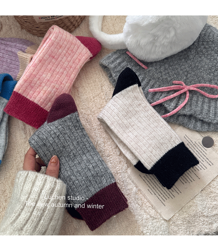 겨울 도파민 "대비 색상 두꺼운 양모 양말 여성 가을과 겨울 두꺼운 따뜻한 보라색 더미 양말 여성 한국어스토어 가기