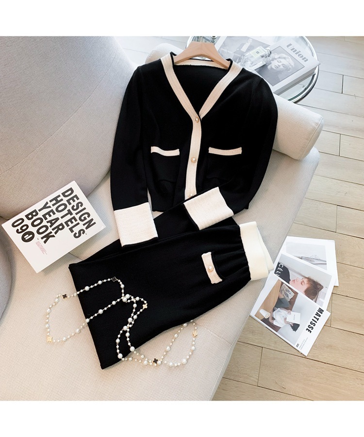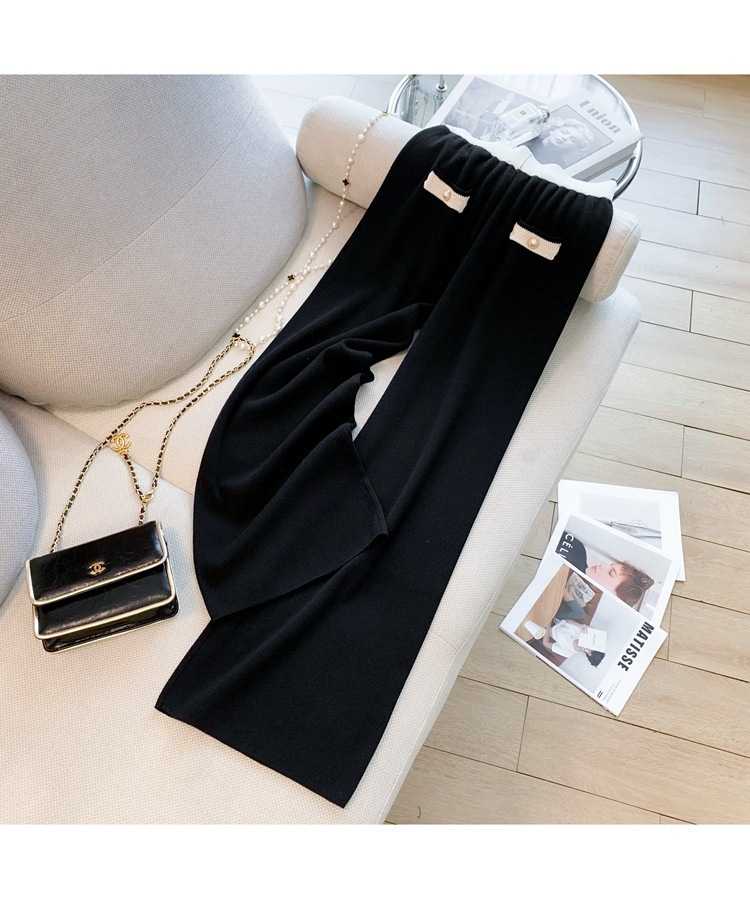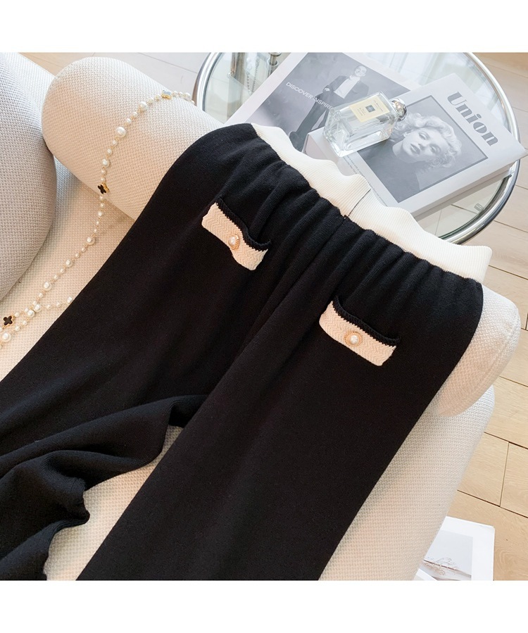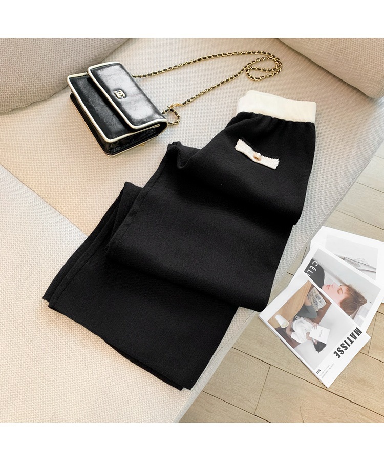 이른 가을 새로운 대비 니트 카디건 여성용 루즈 V 넥 재킷 투피스 하이 허리 와이드 레그 크롭 팬츠