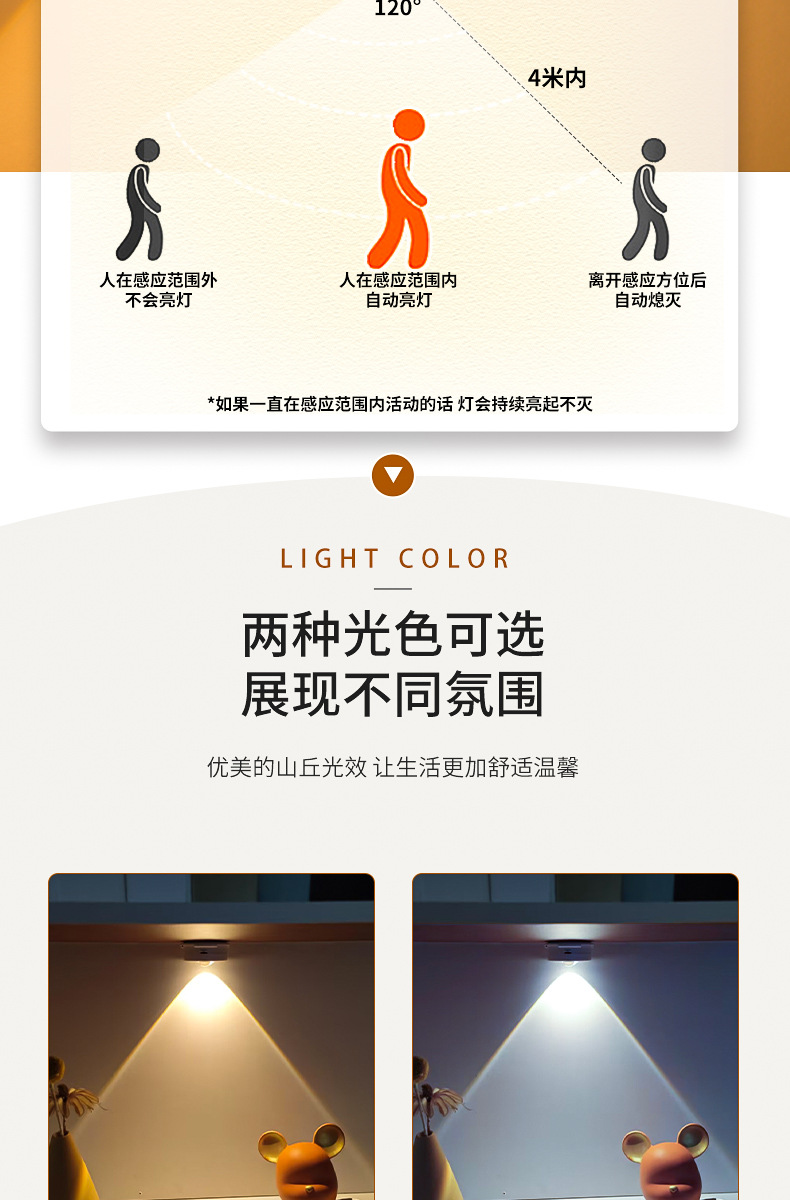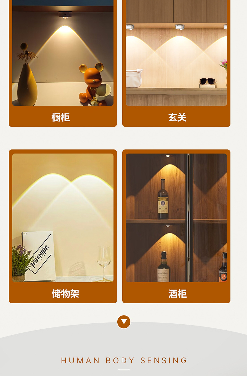 지능형 충전식 LED 캐비닛 조명, 자석 와인 캐비닛 분위기 조명, 인체 감지 야간 조명, 배선이 필요 없는 대형 고양이 눈 조명스토어 가기
